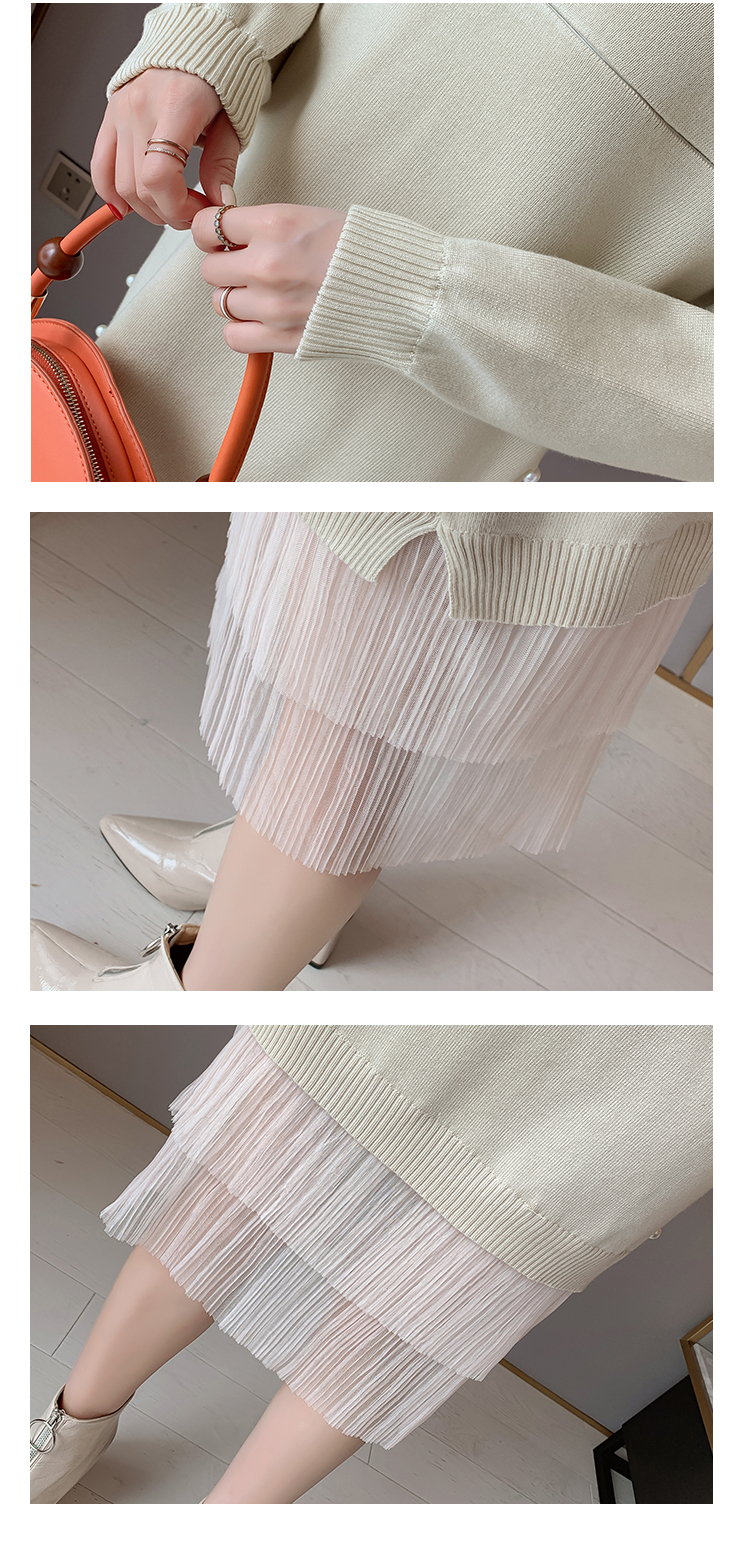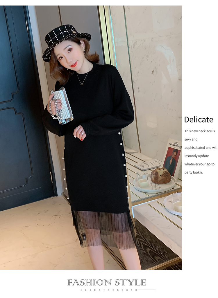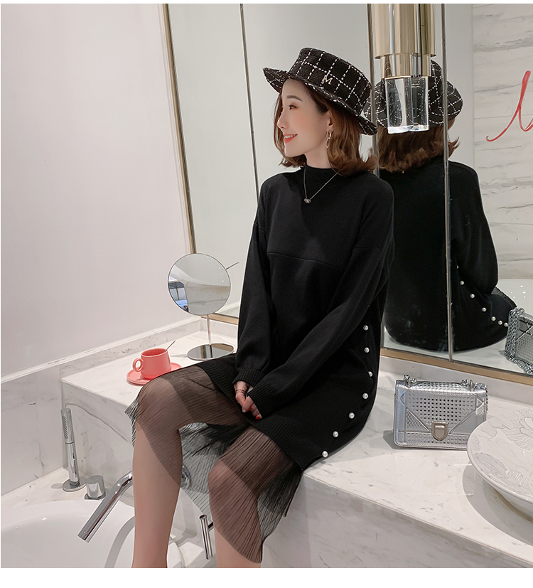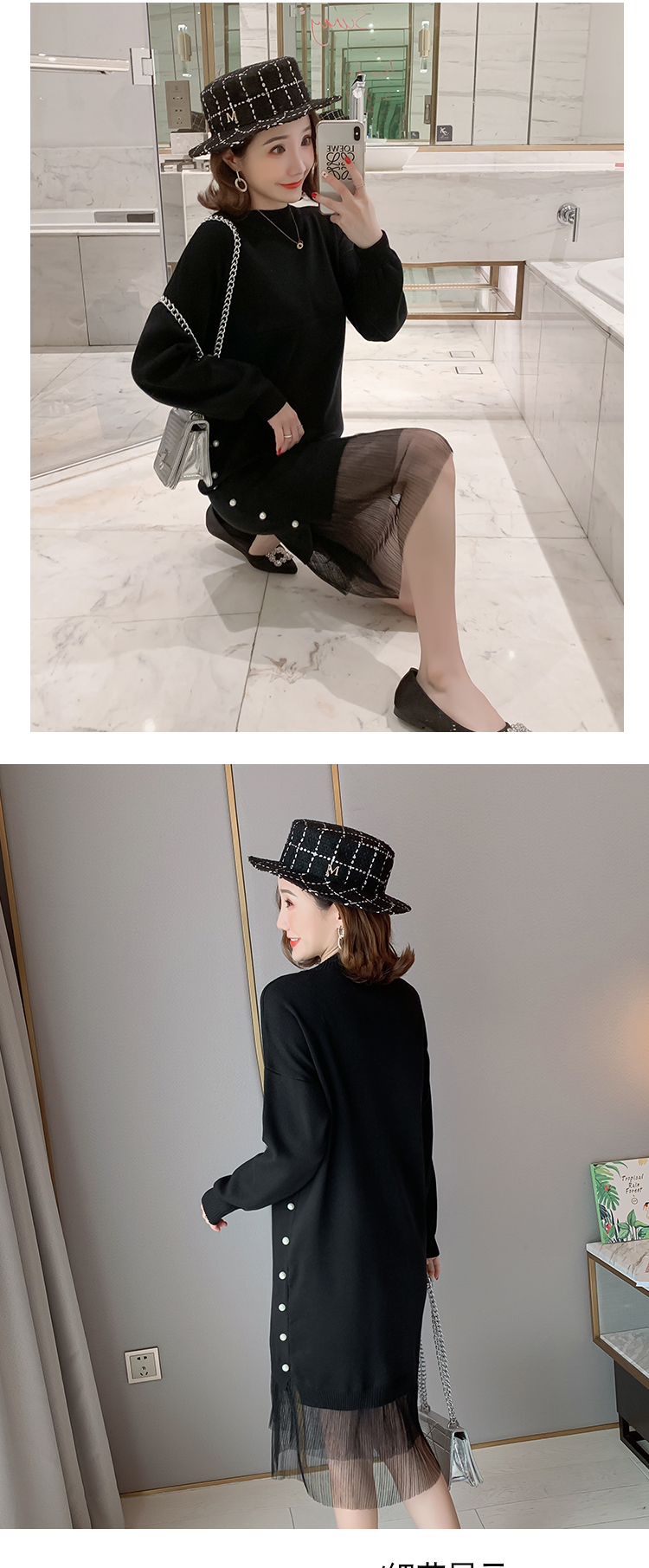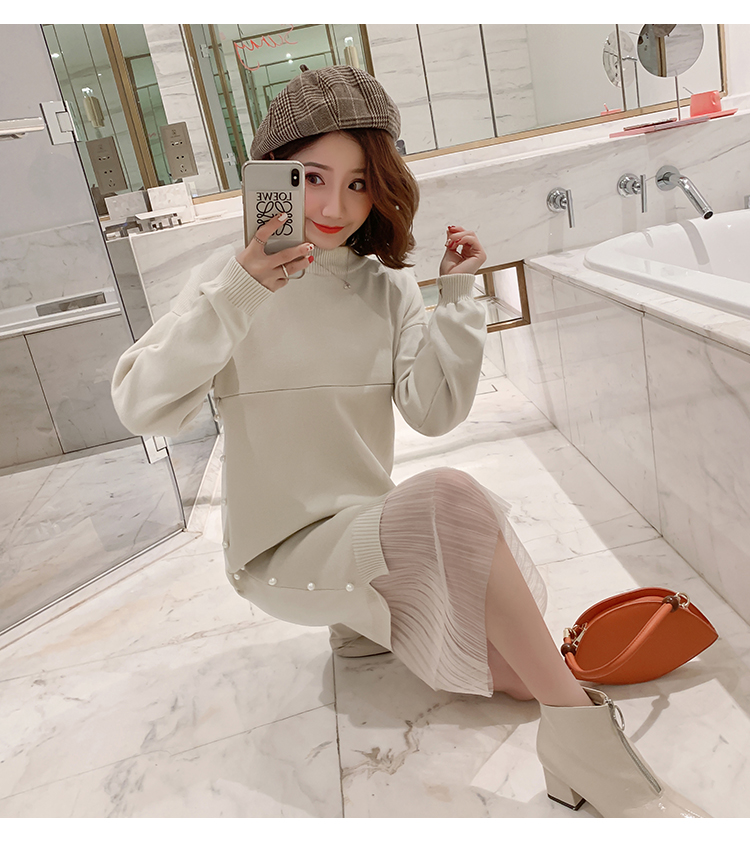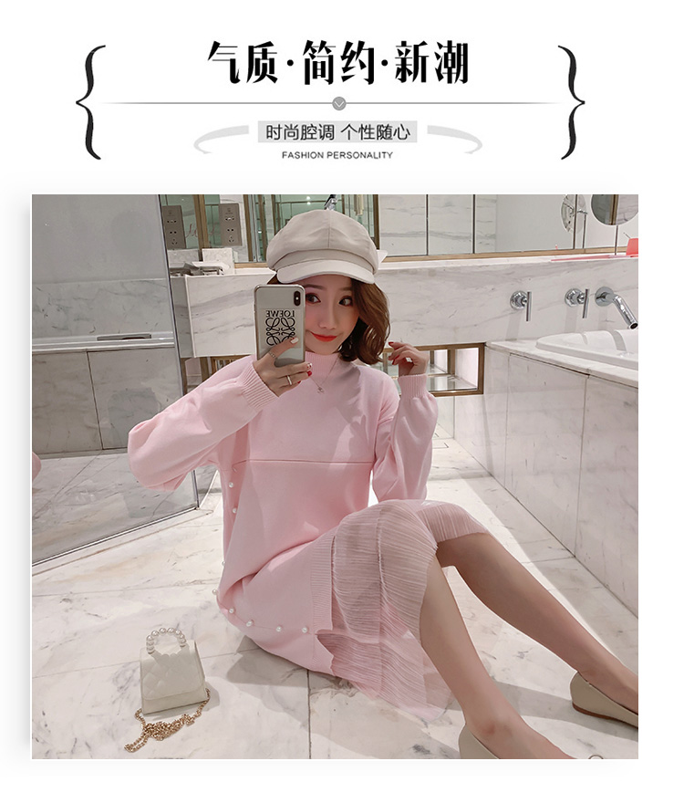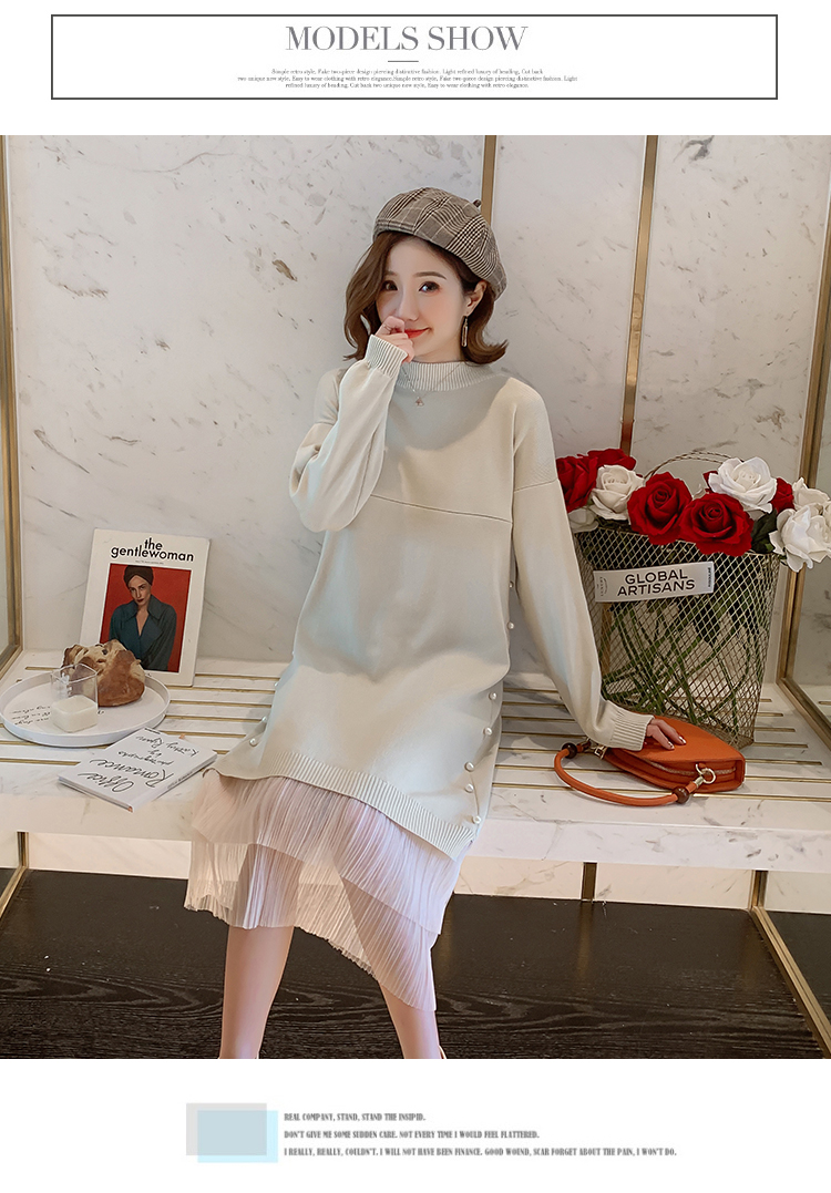 实拍9903#哺乳毛衣甜美网纱拼接针织打底衫产后钉珠喂奶连衣裙潮