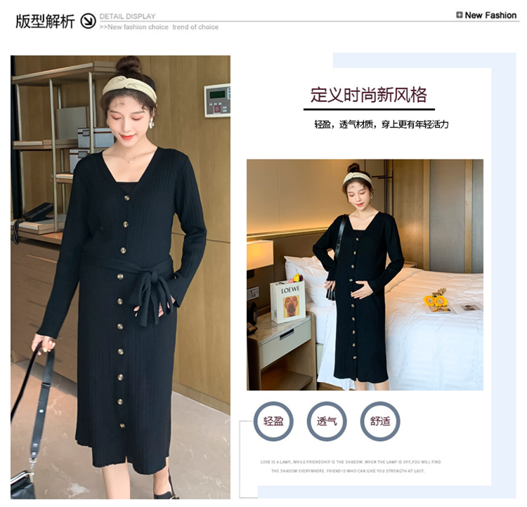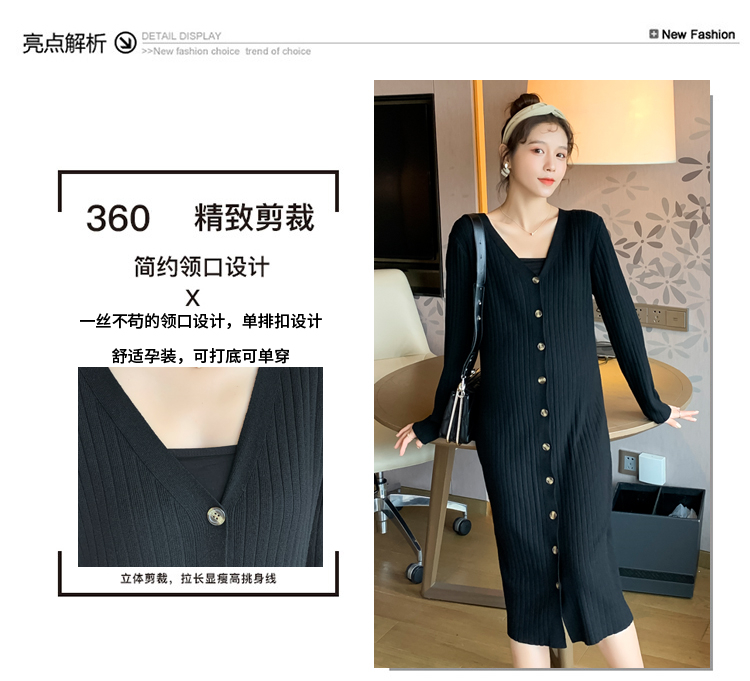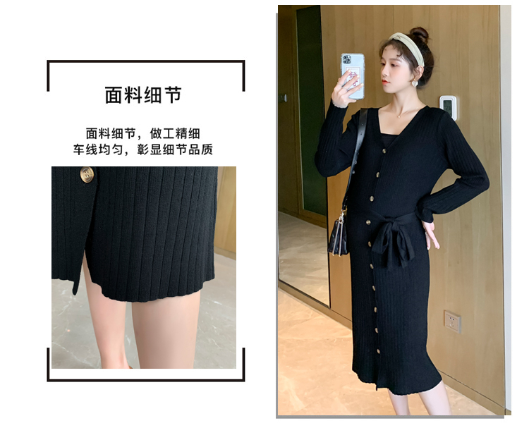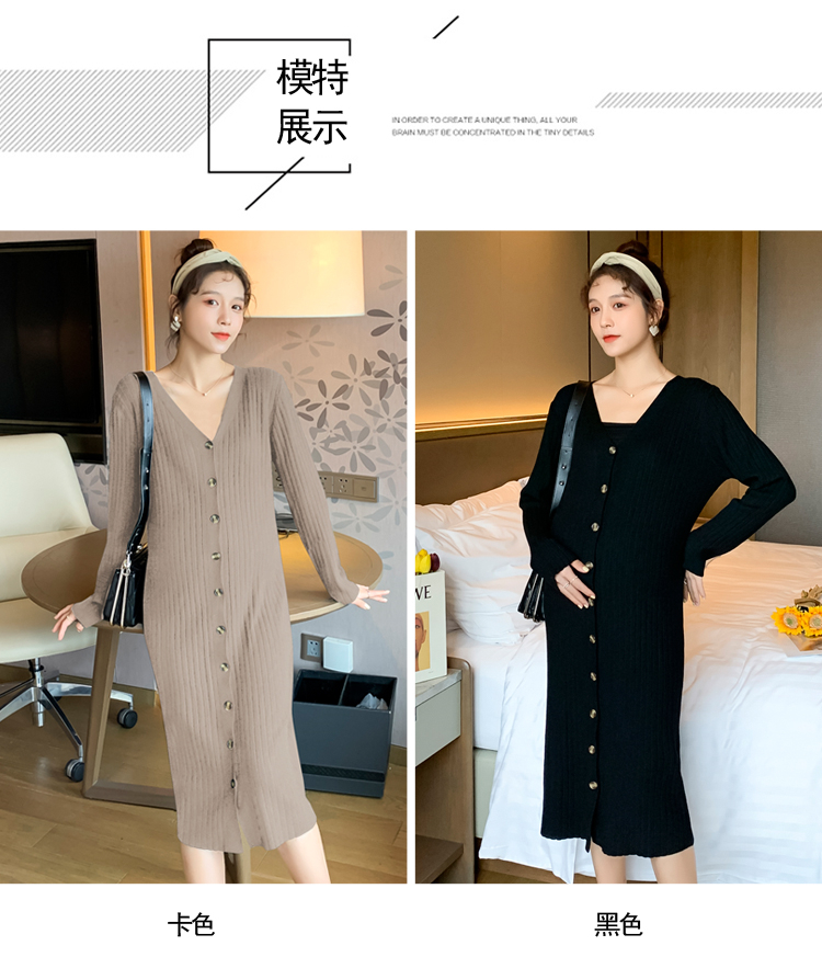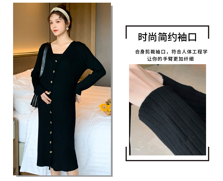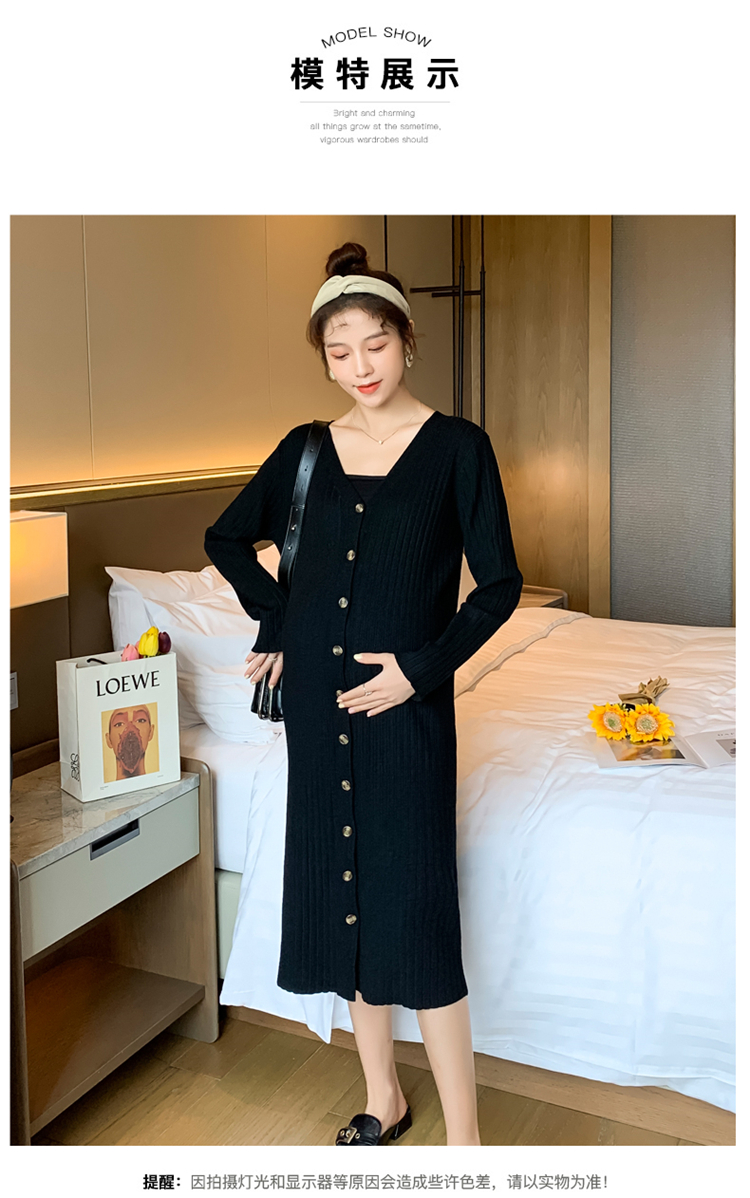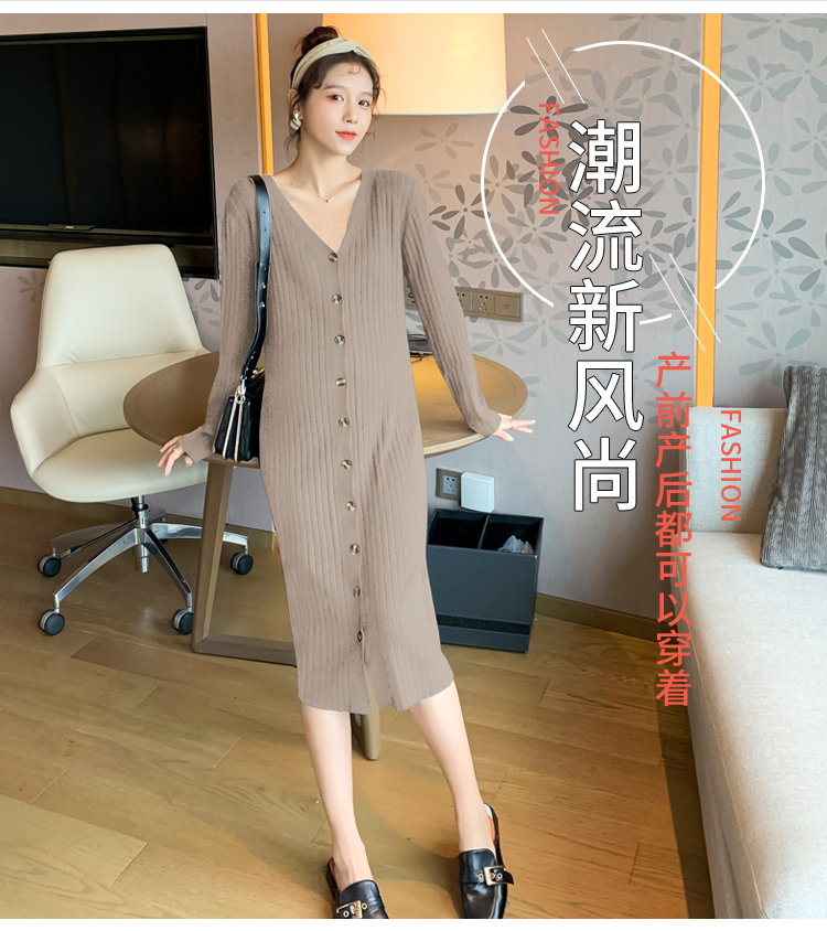 实拍现货2020秋冬新款孕妇法式单排扣V领可开扣哺乳很仙的针织大码毛衣裙