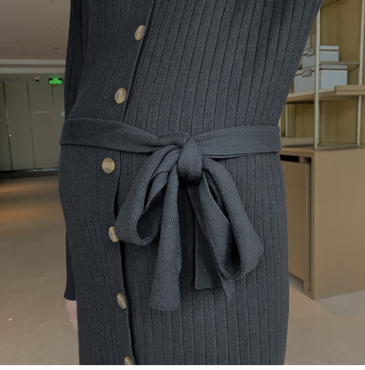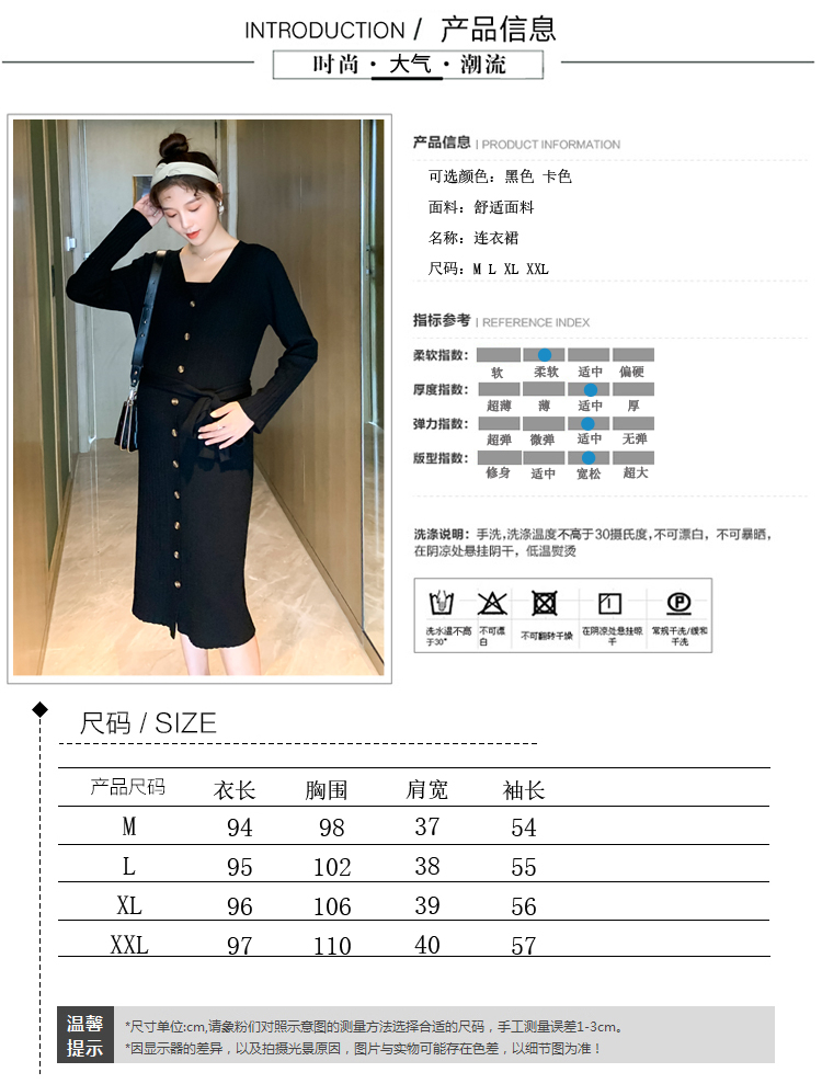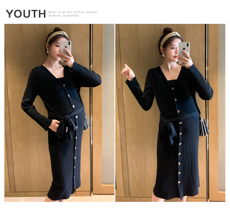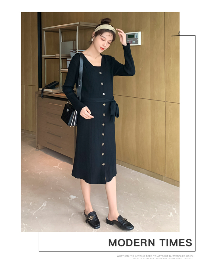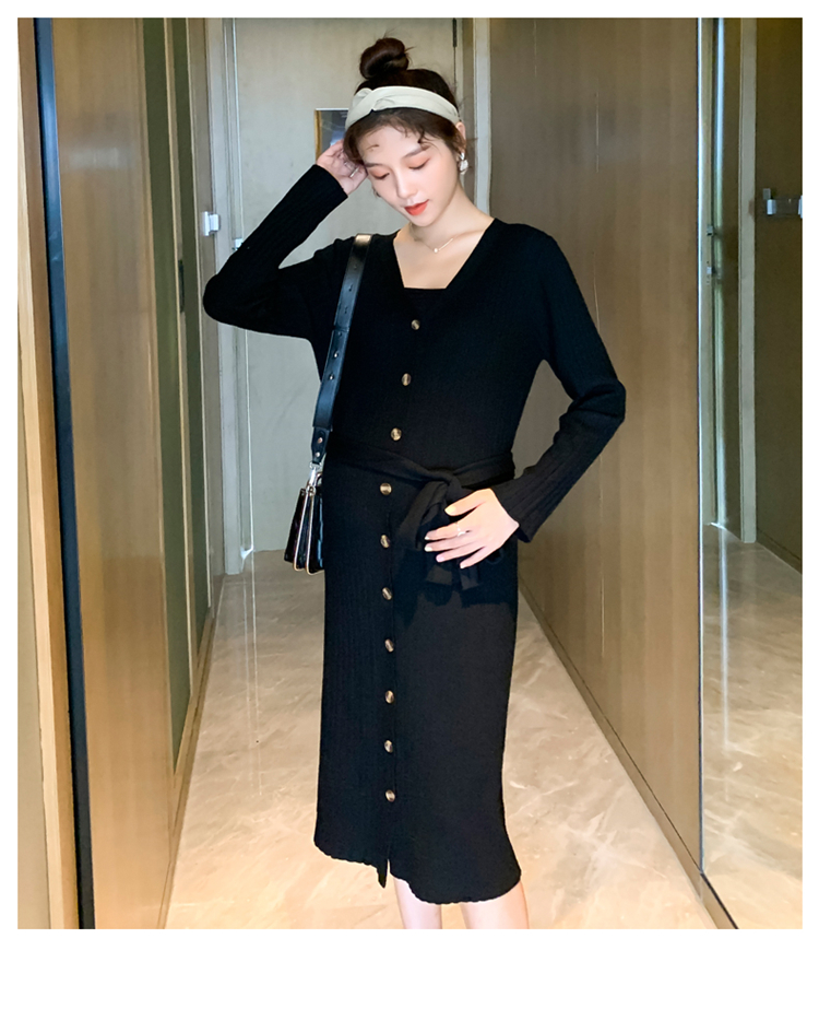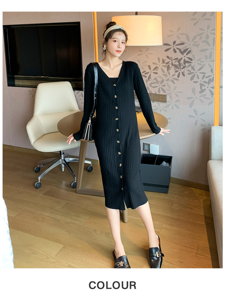实拍现货2020秋冬新款孕妇法式单排扣V领可开扣哺乳很仙的针织大码毛衣裙