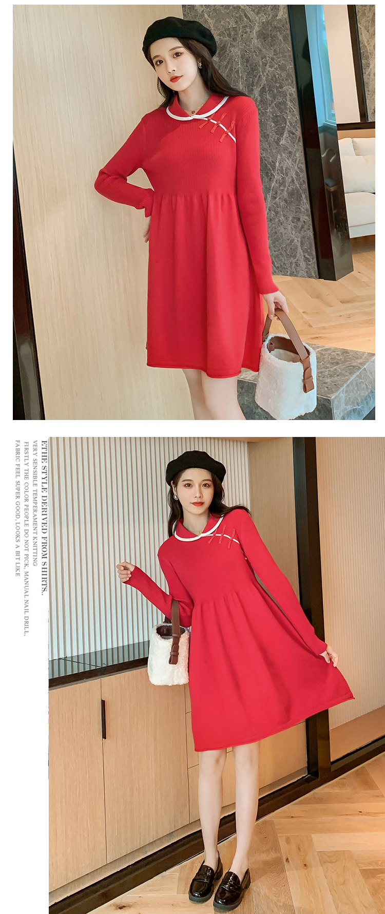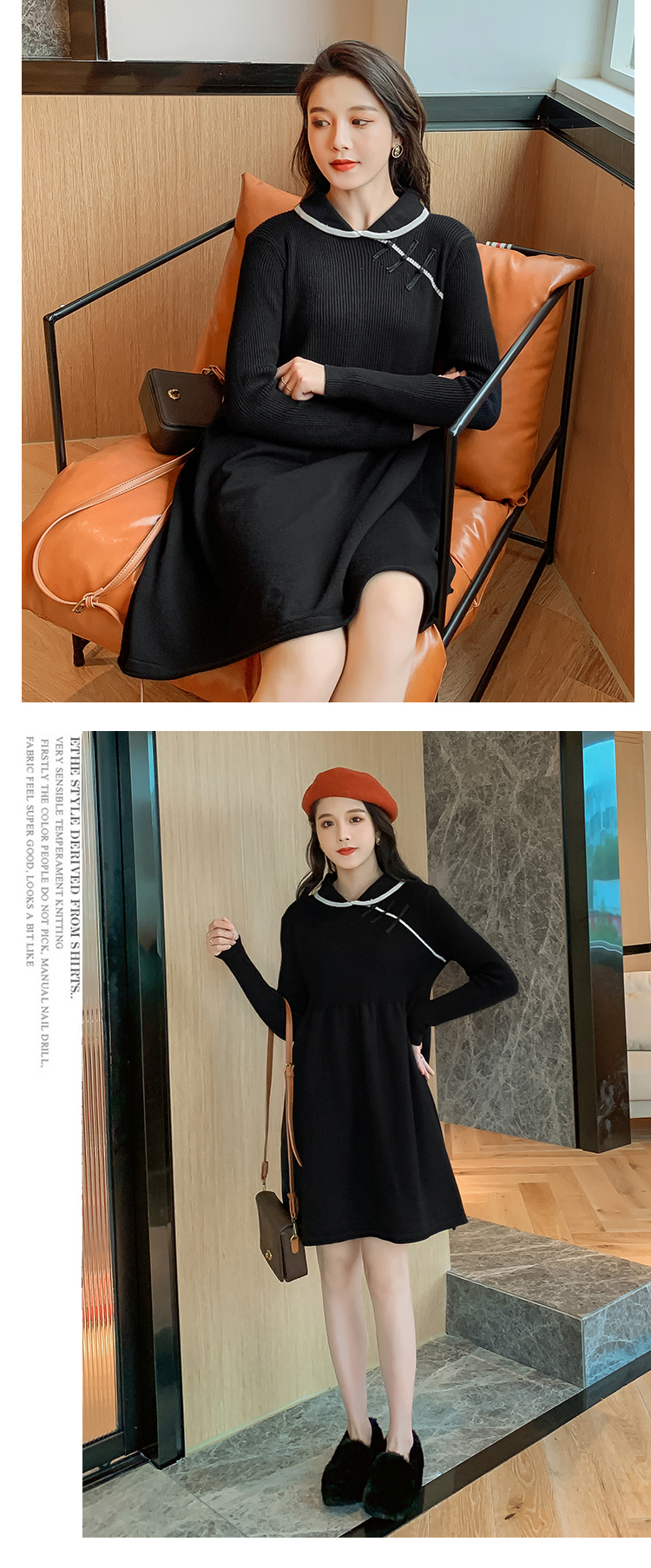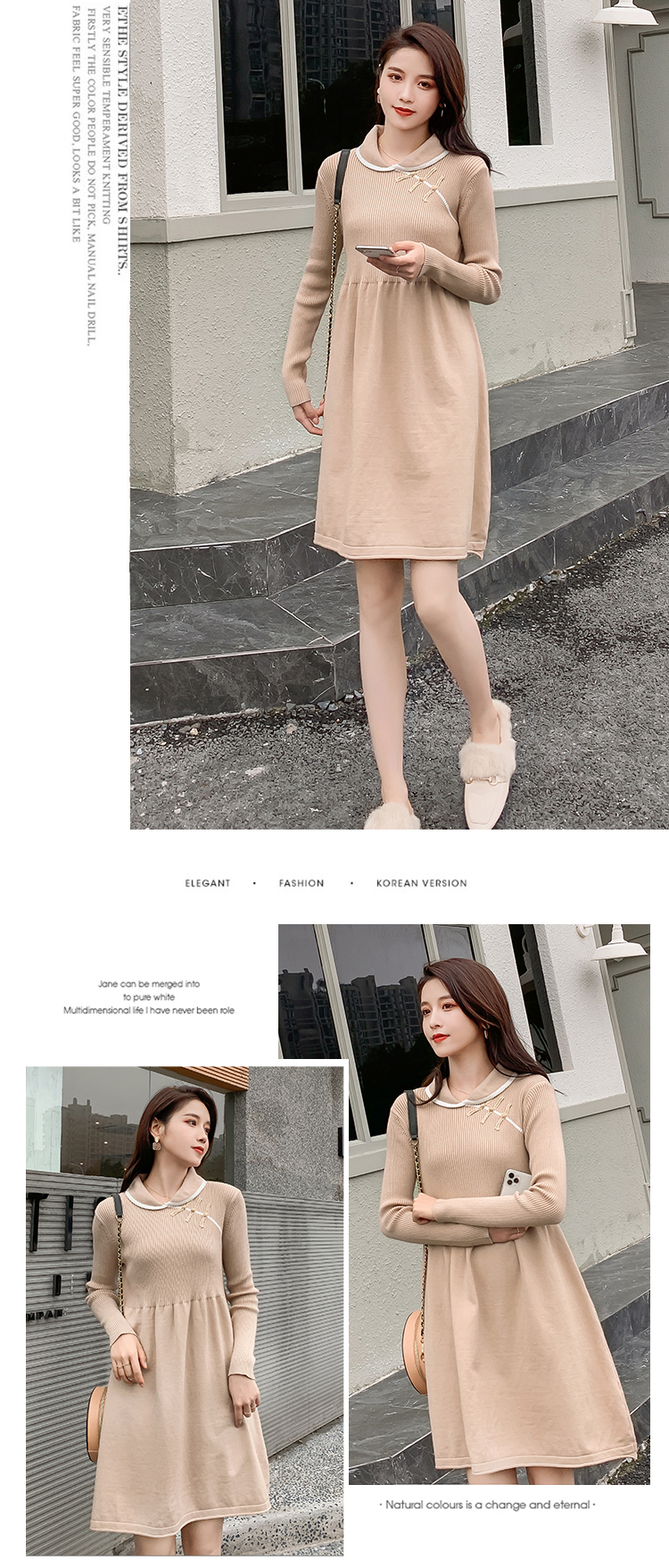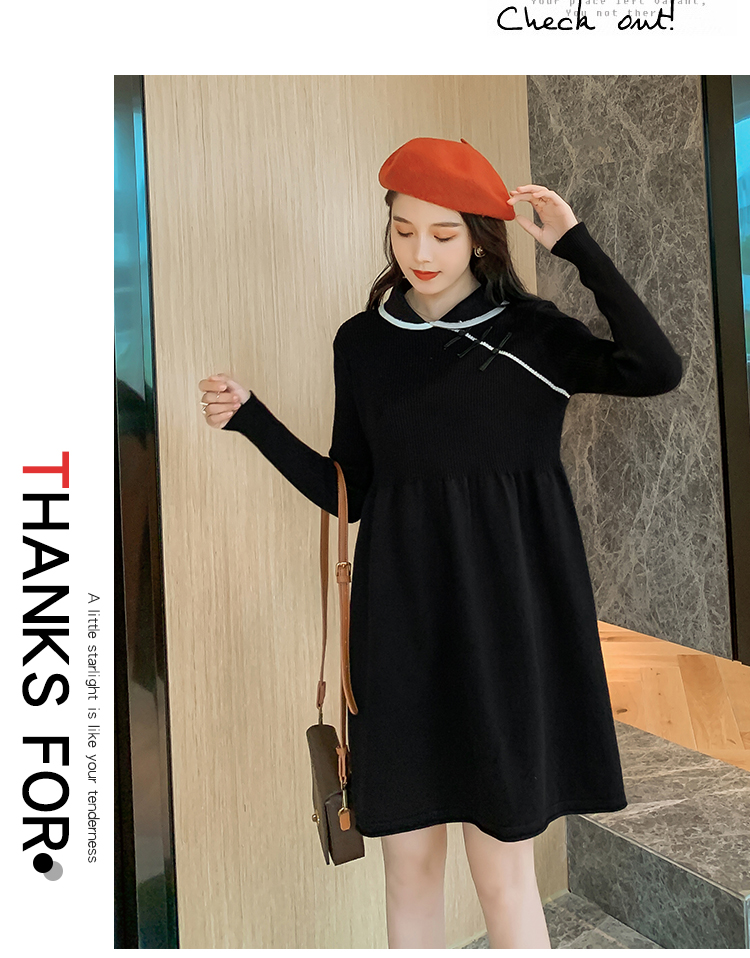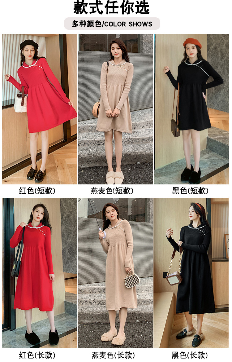 实拍1975#孕妇装秋冬改良旗袍毛衣怀孕期气质修身显瘦针织连衣裙