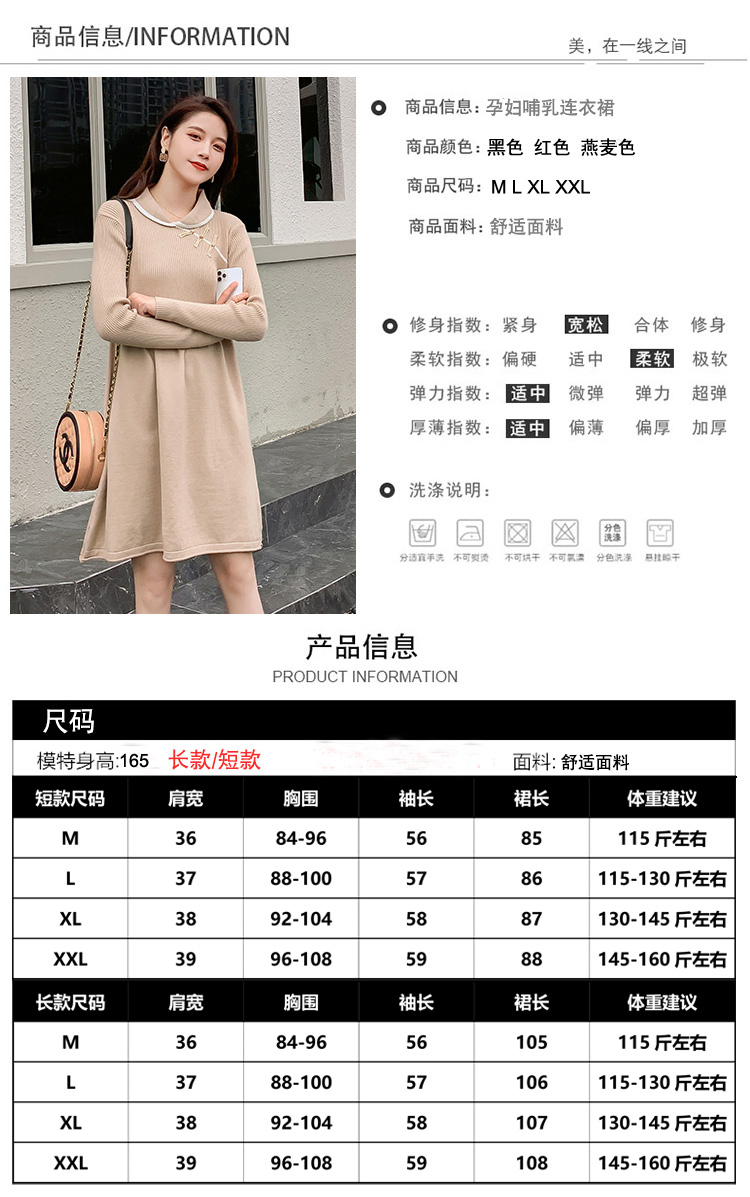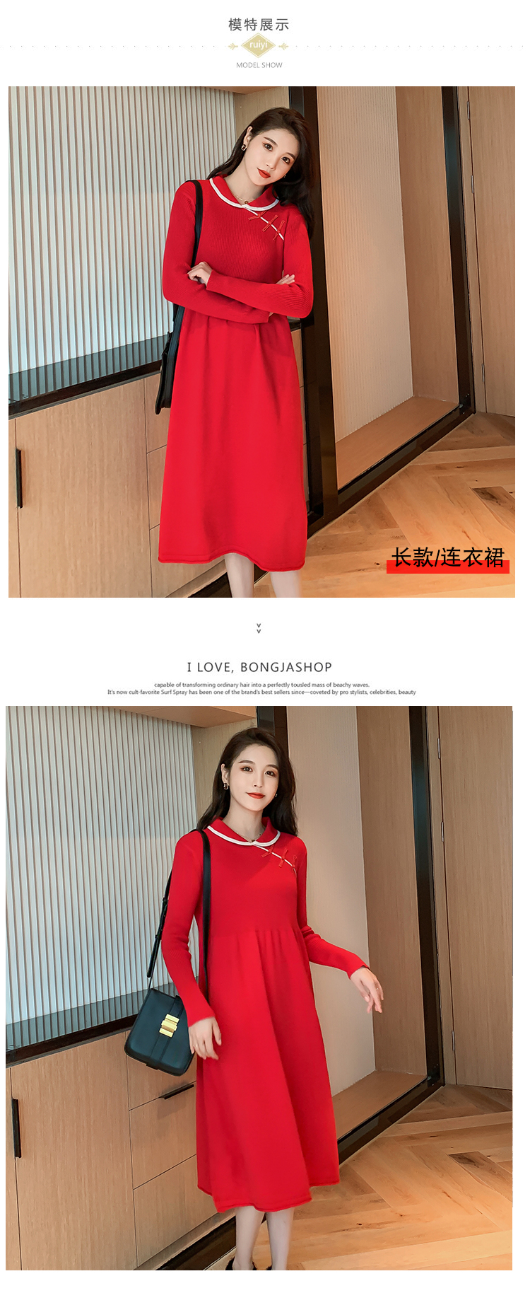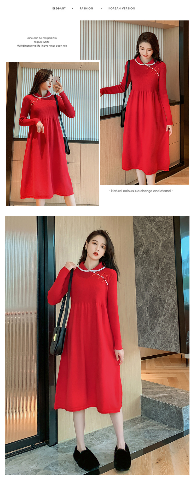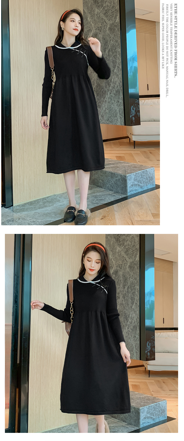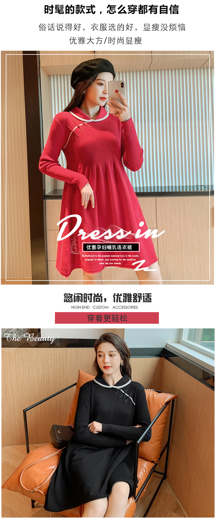 实拍1975#孕妇装秋冬改良旗袍毛衣怀孕期气质修身显瘦针织连衣裙