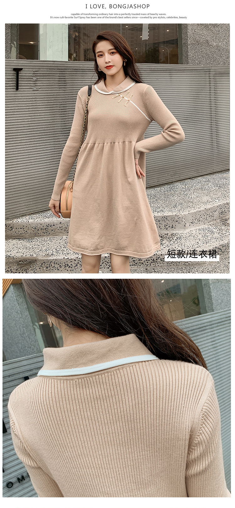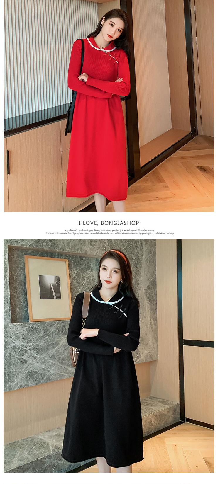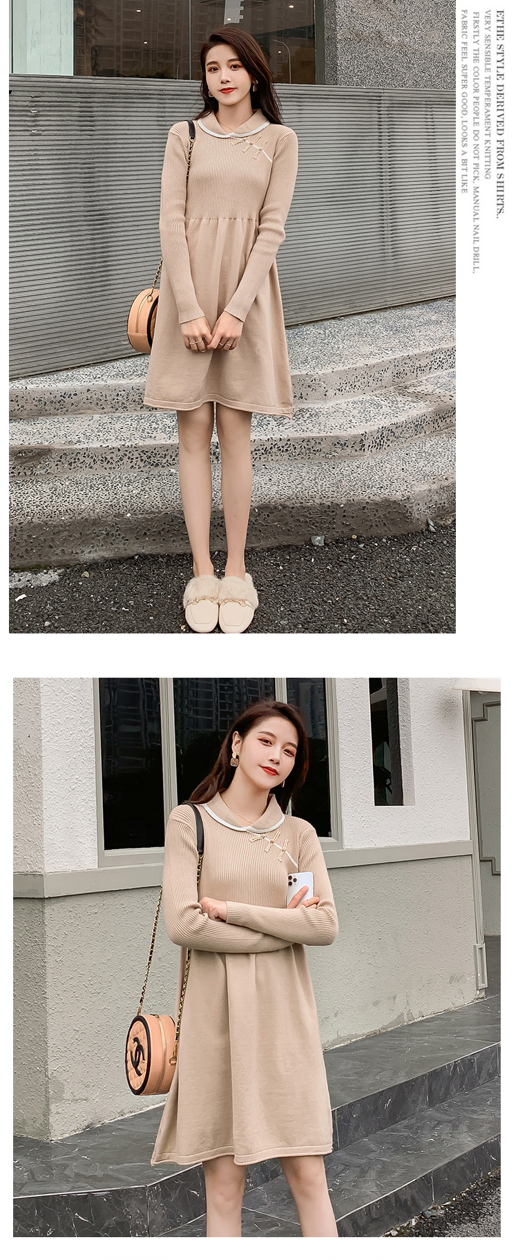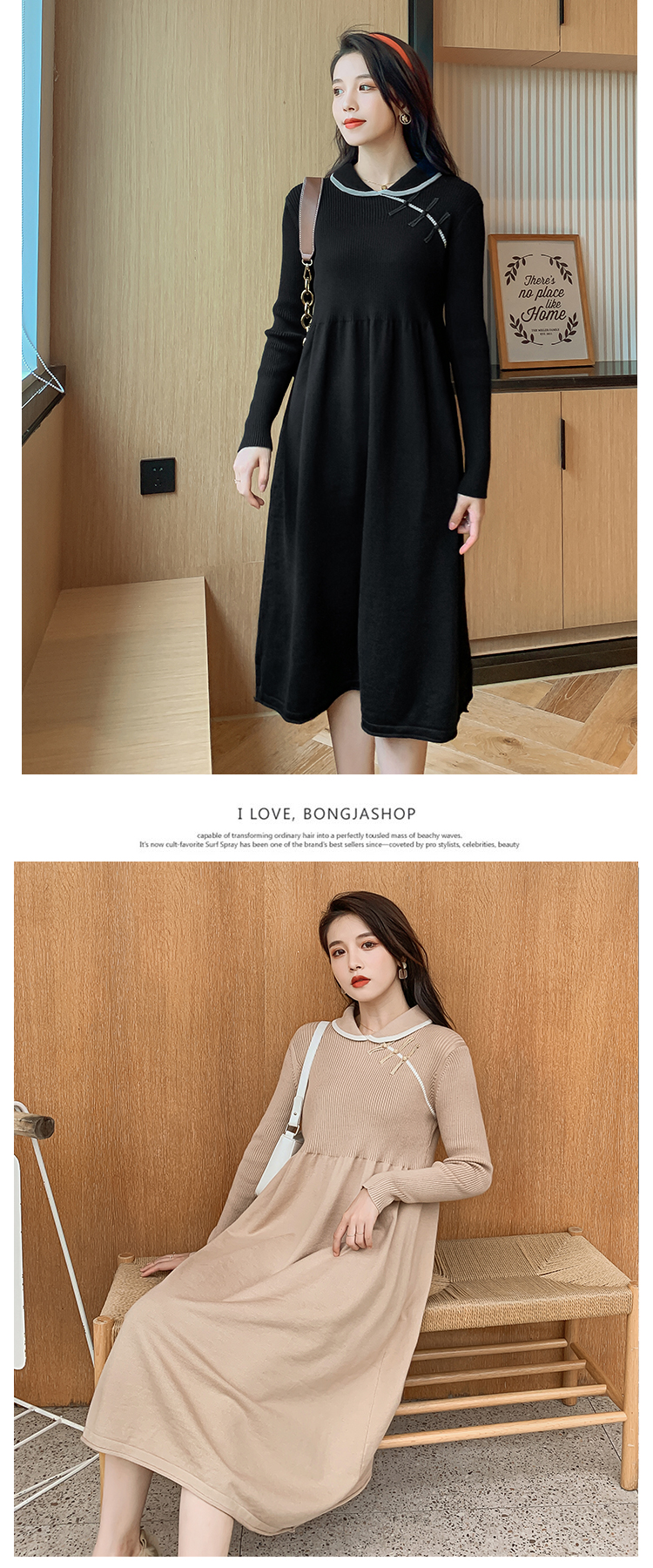 实拍1975#孕妇装秋冬改良旗袍毛衣怀孕期气质修身显瘦针织连衣裙