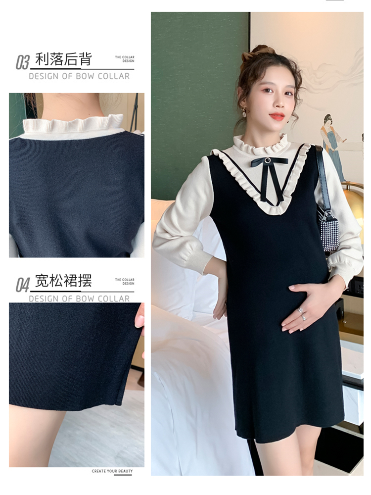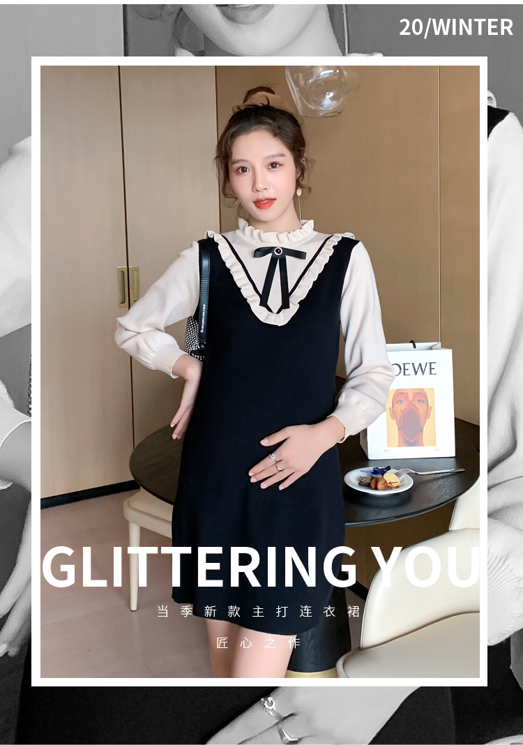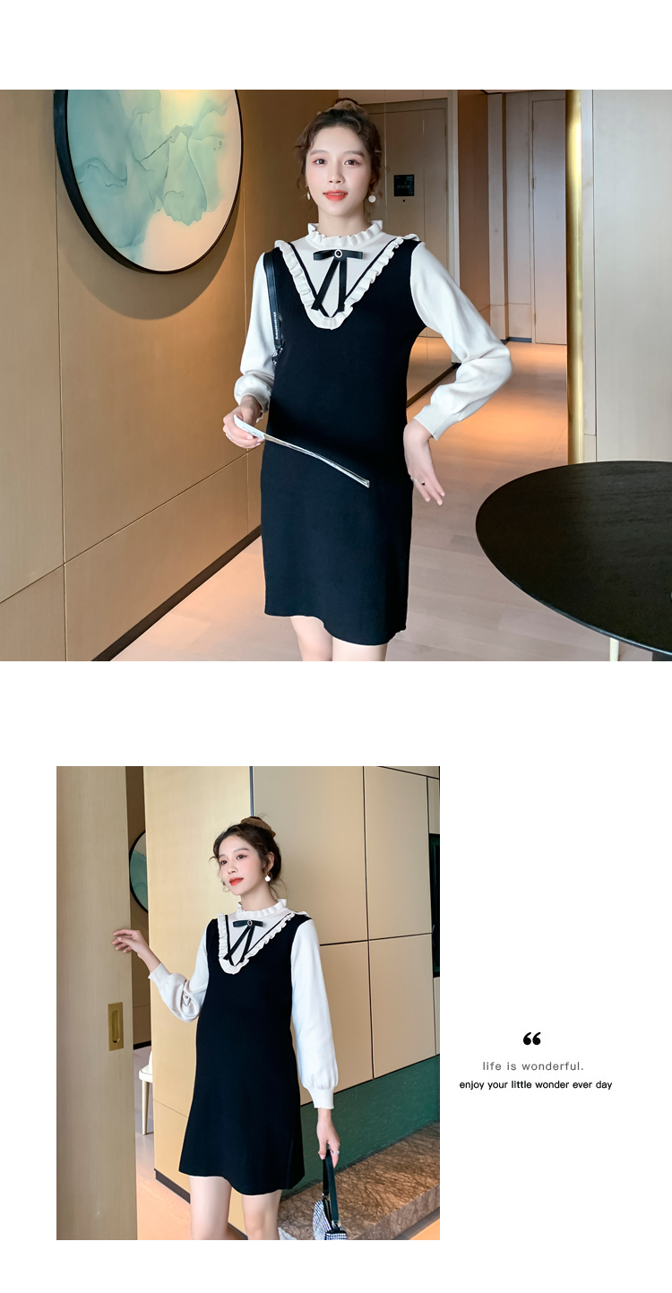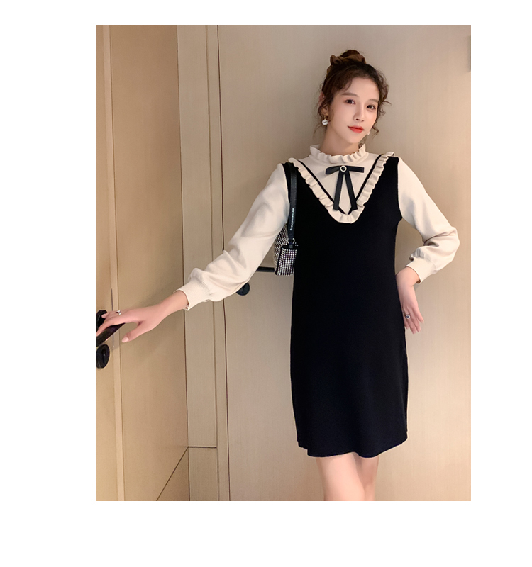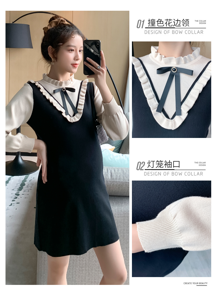 实拍现货2020秋冬新款孕妇韩版小香风拼接撞色胖mm针织大码连衣裙