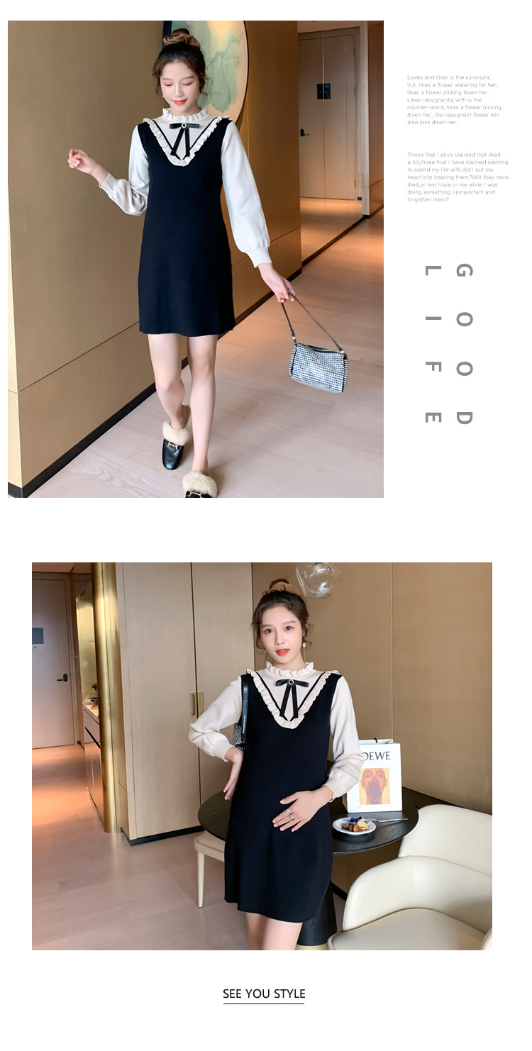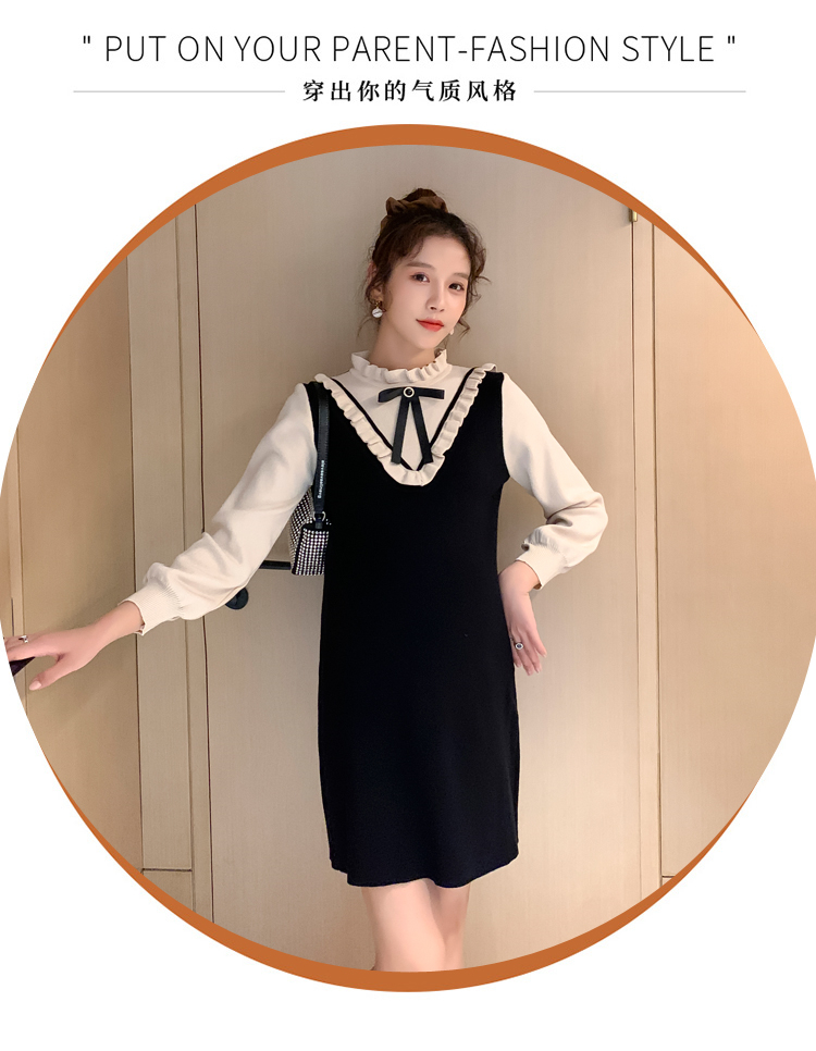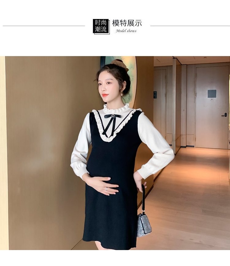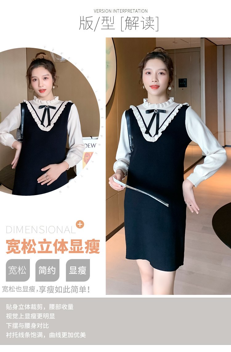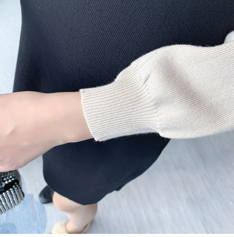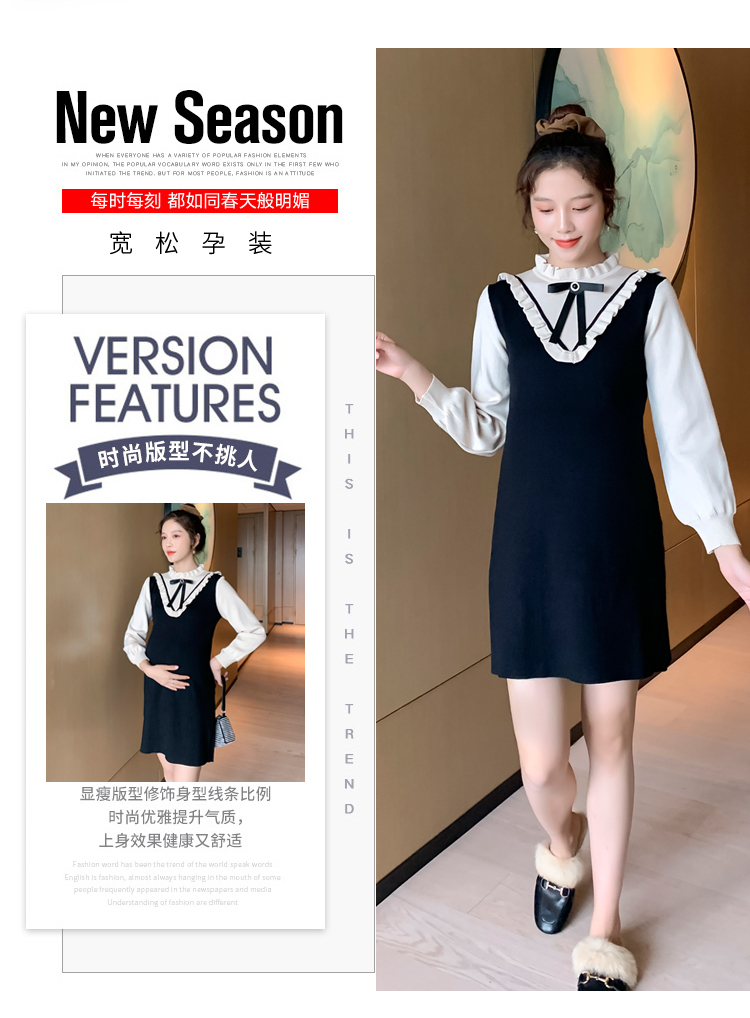 实拍现货2020秋冬新款孕妇韩版小香风拼接撞色胖mm针织大码连衣裙