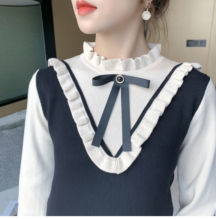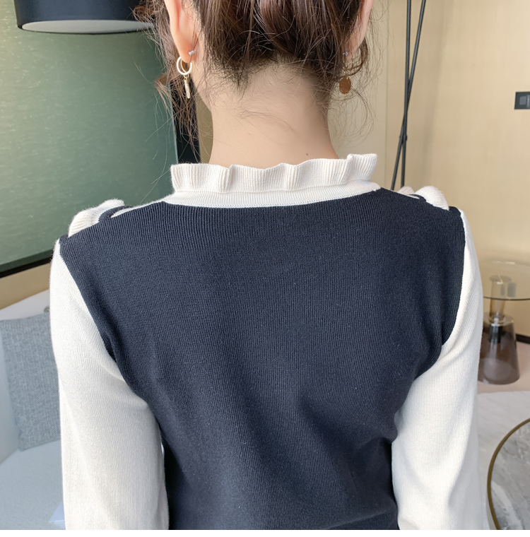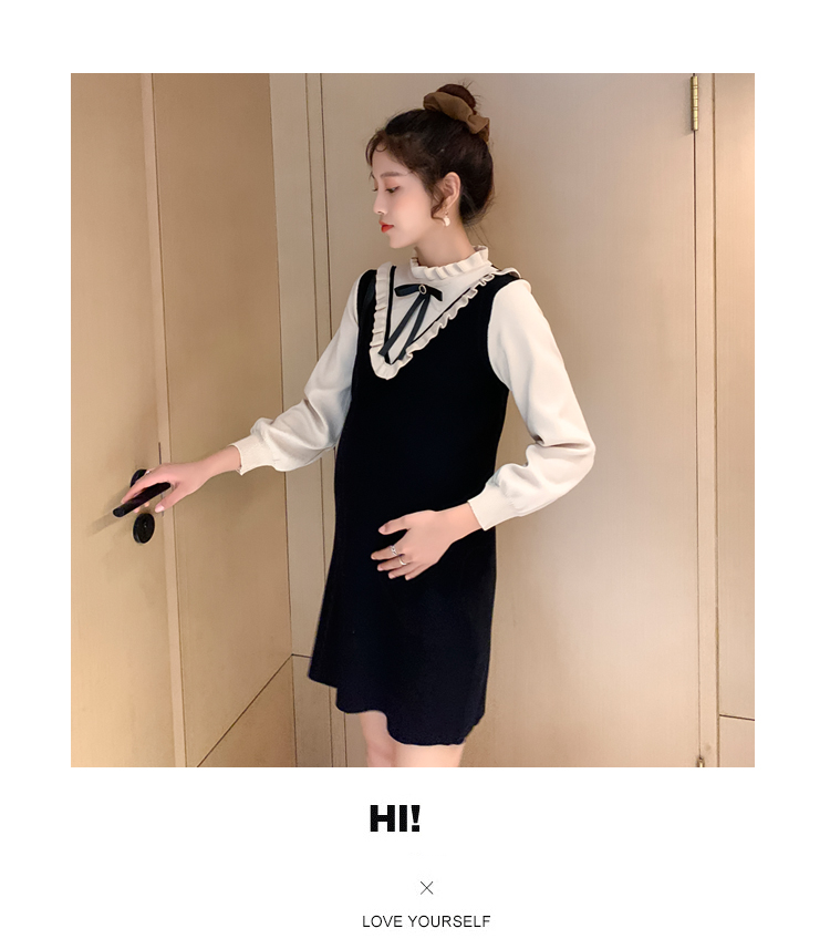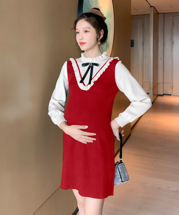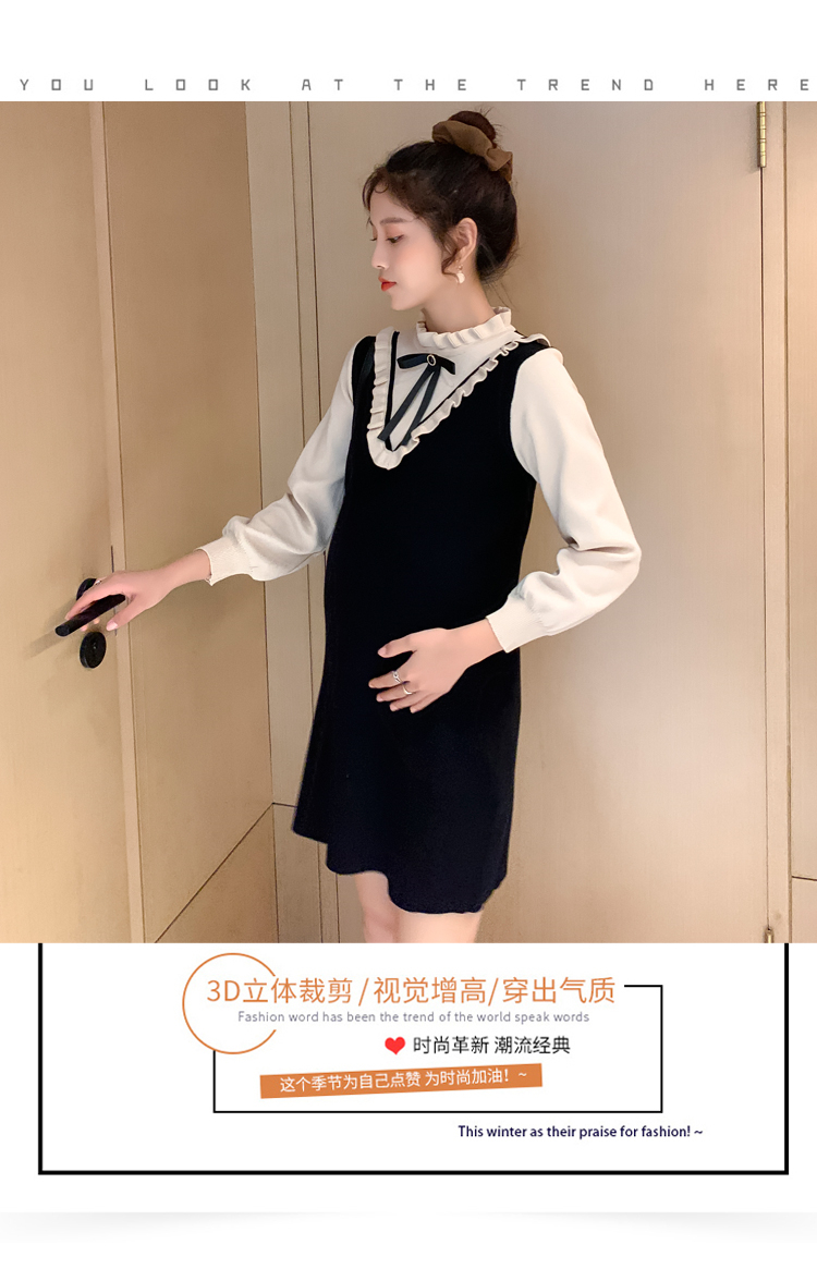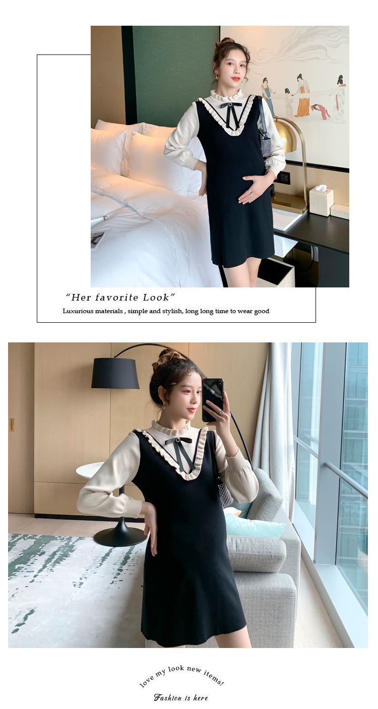实拍现货2020秋冬新款孕妇韩版小香风拼接撞色胖mm针织大码连衣裙