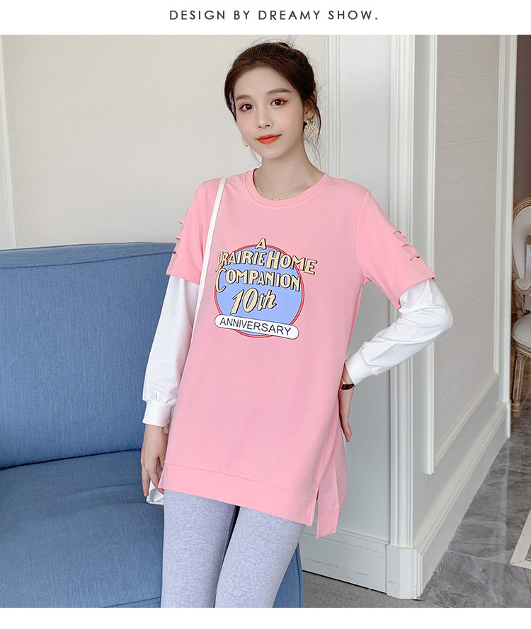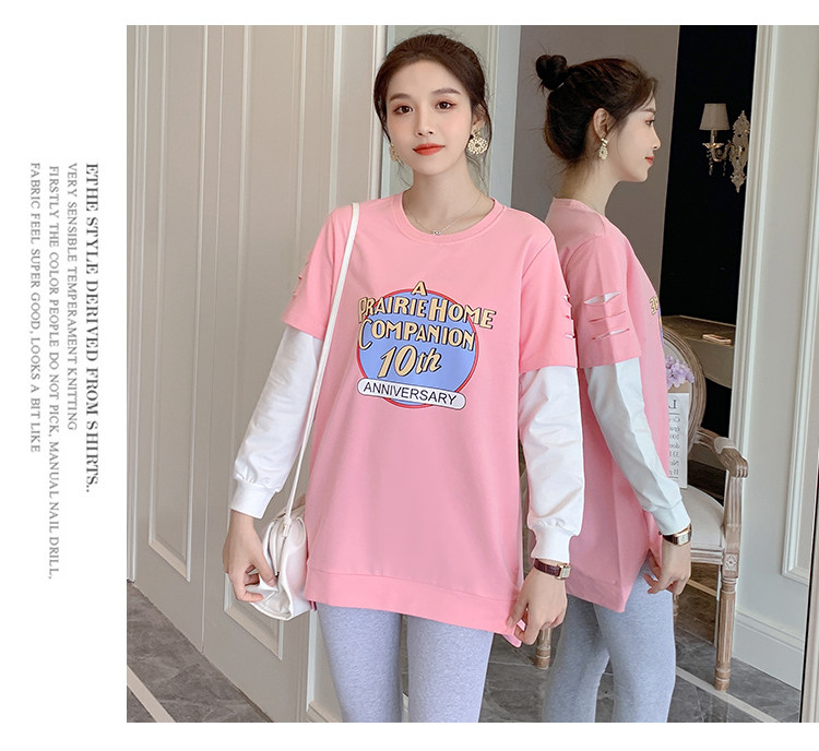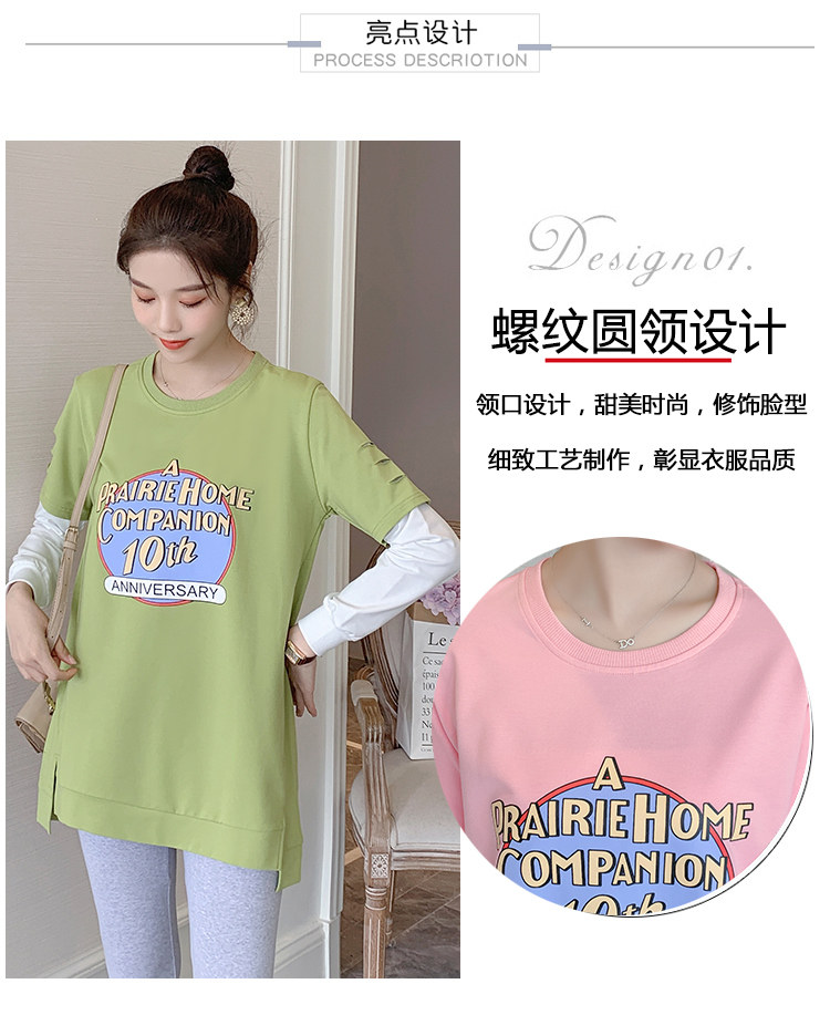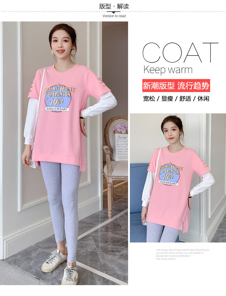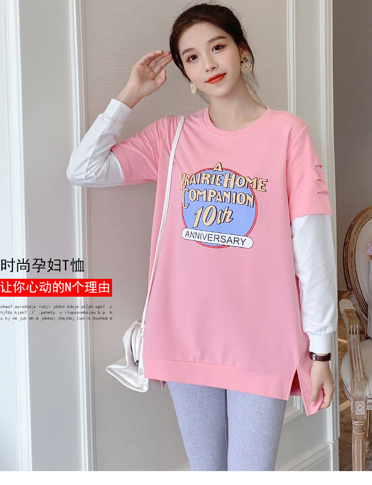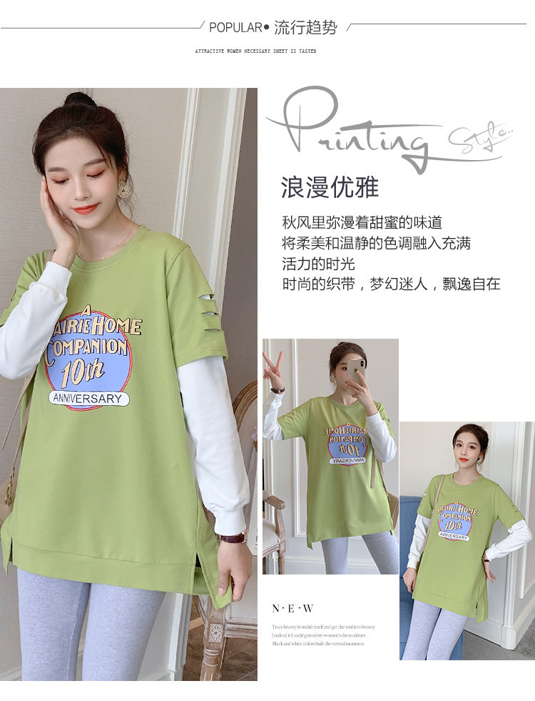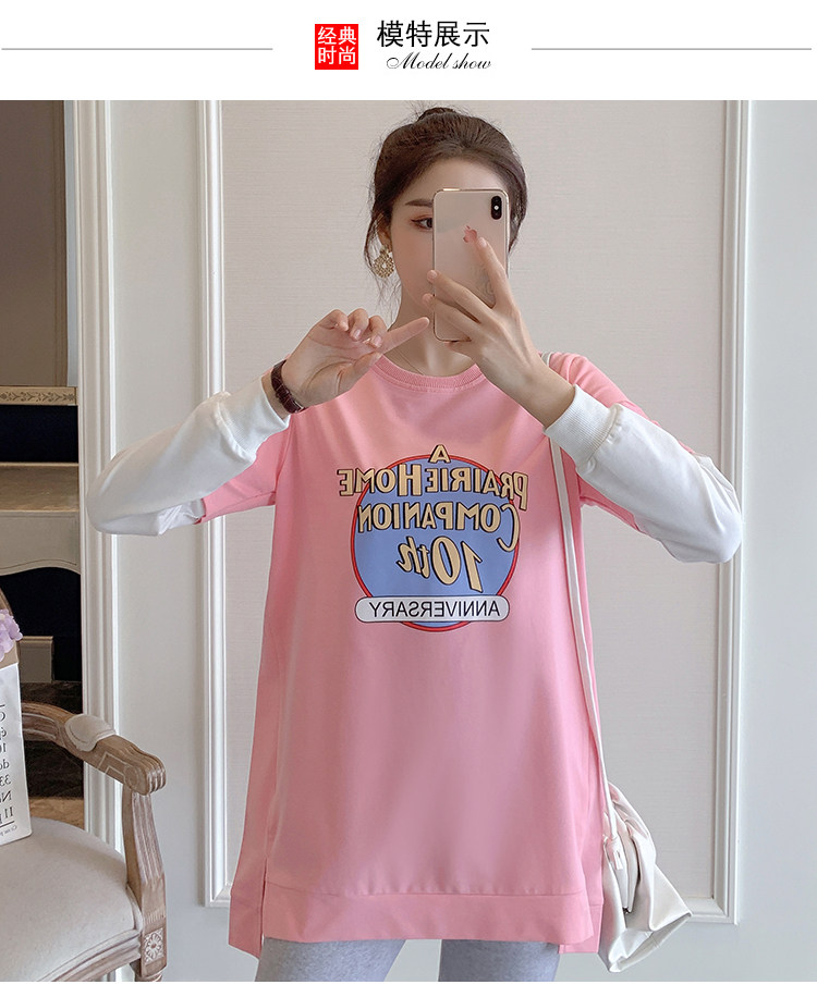 实拍孕妇上衣春秋装长袖宽松印花时尚孕妇外出辣妈T恤卫衣