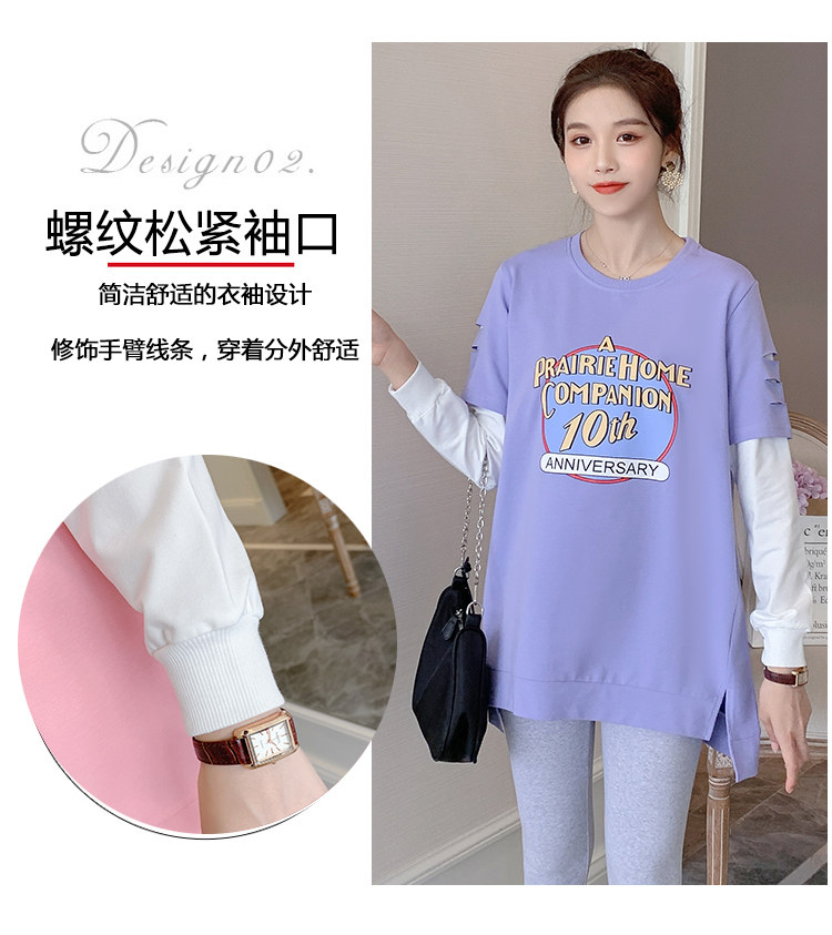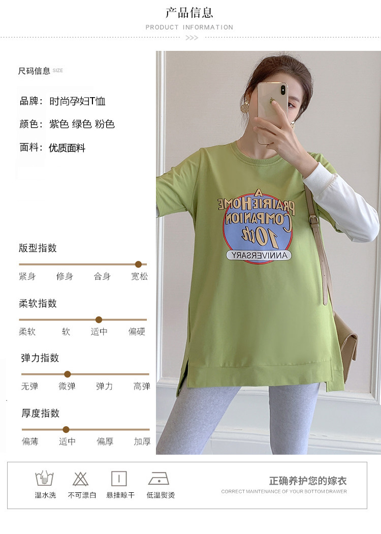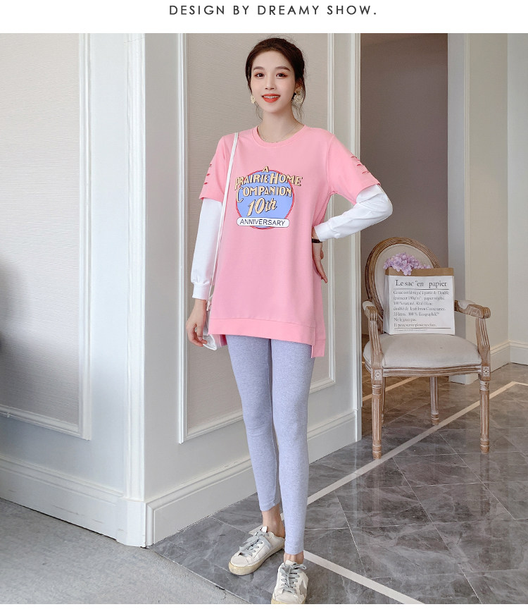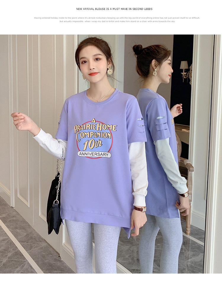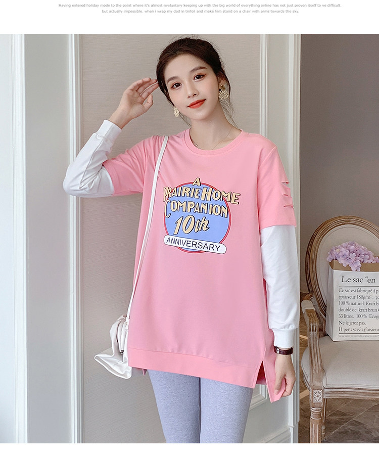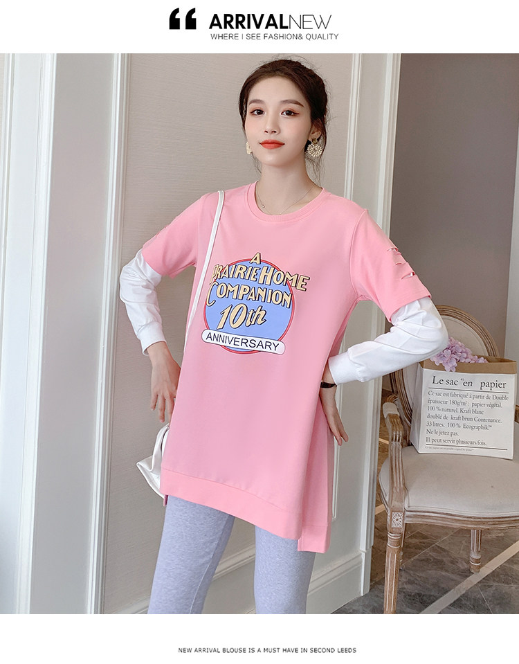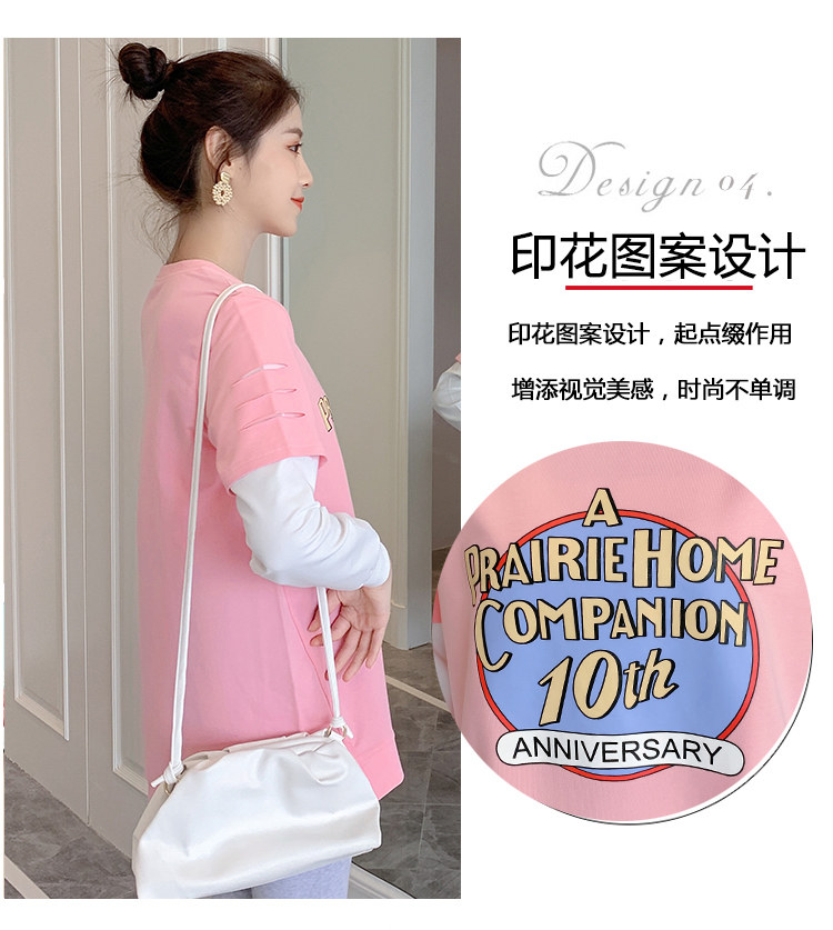 实拍孕妇上衣春秋装长袖宽松印花时尚孕妇外出辣妈T恤卫衣