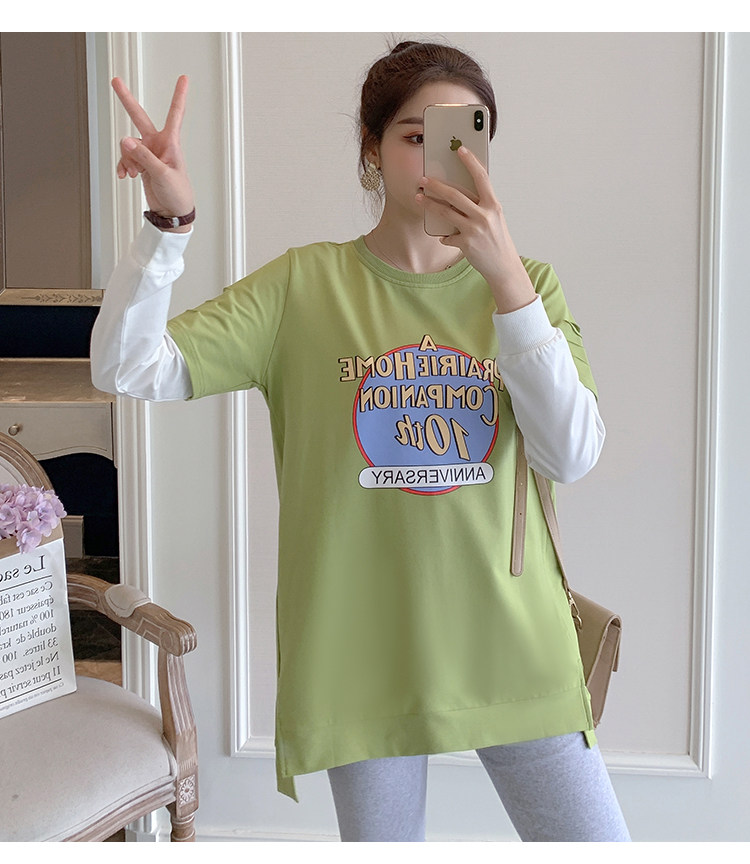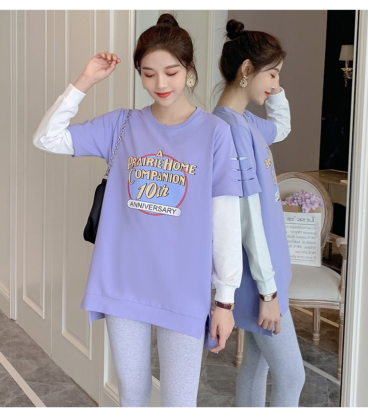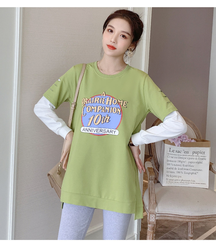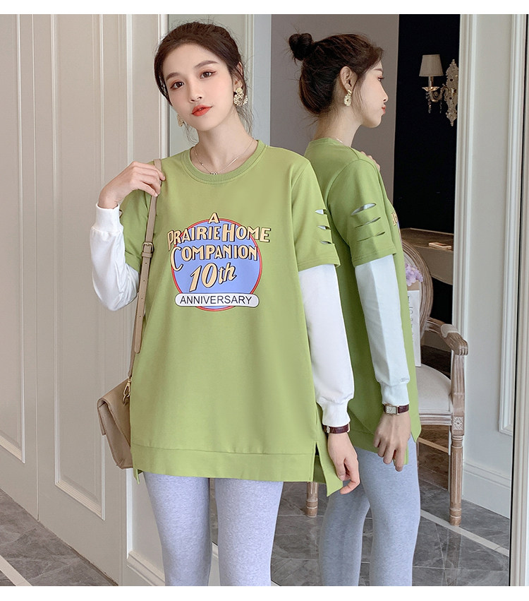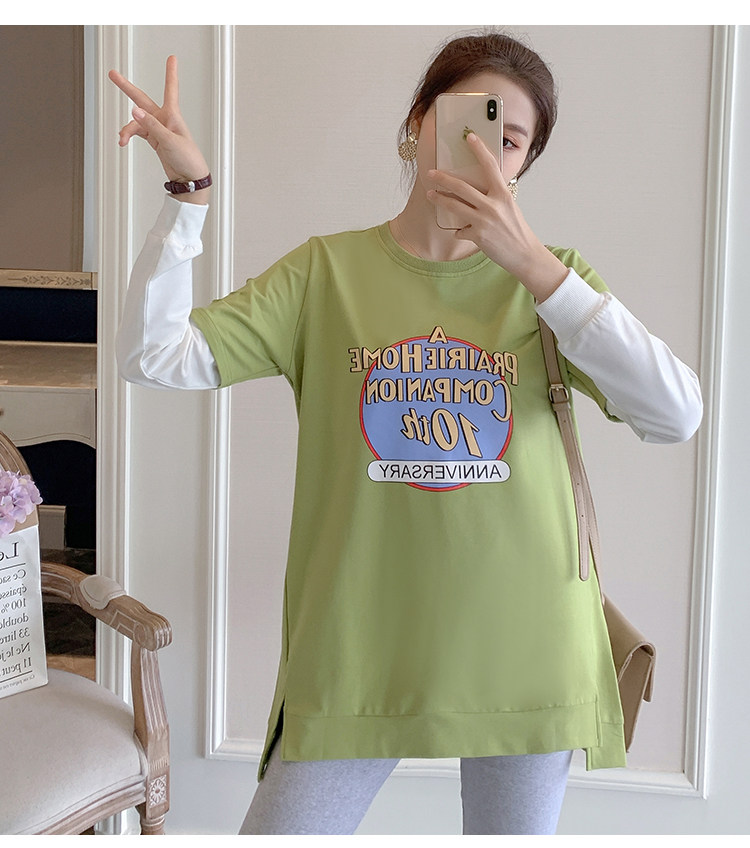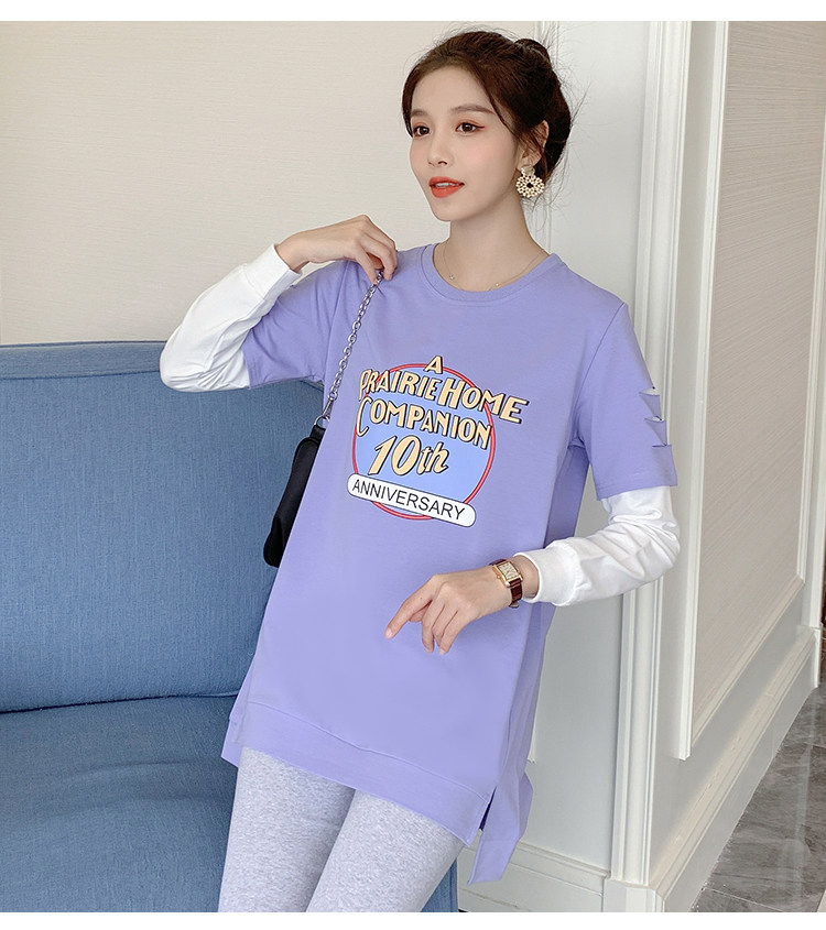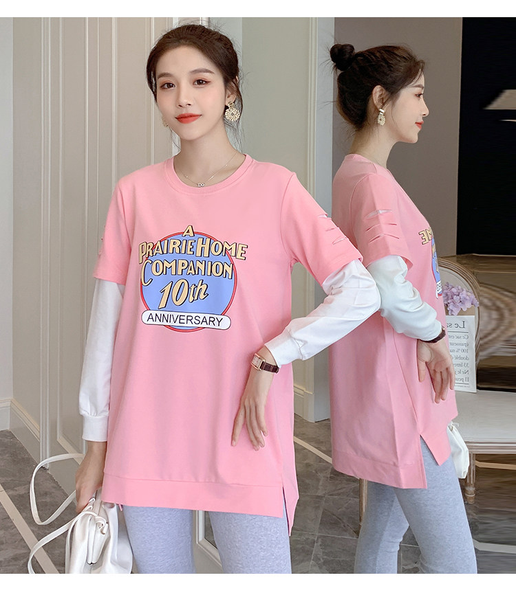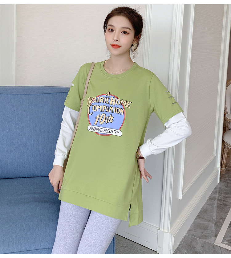 实拍孕妇上衣春秋装长袖宽松印花时尚孕妇外出辣妈T恤卫衣