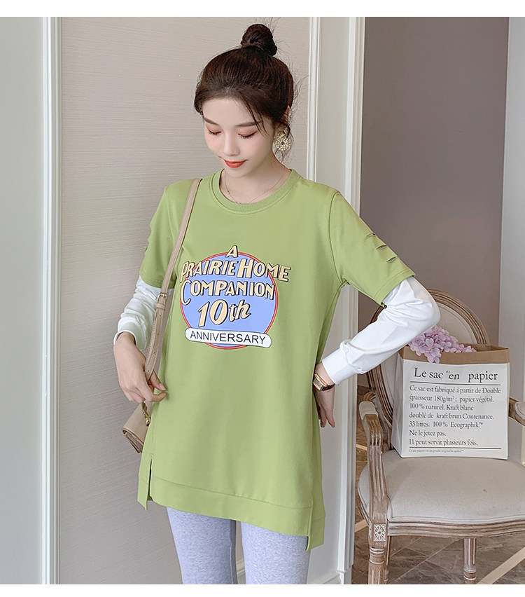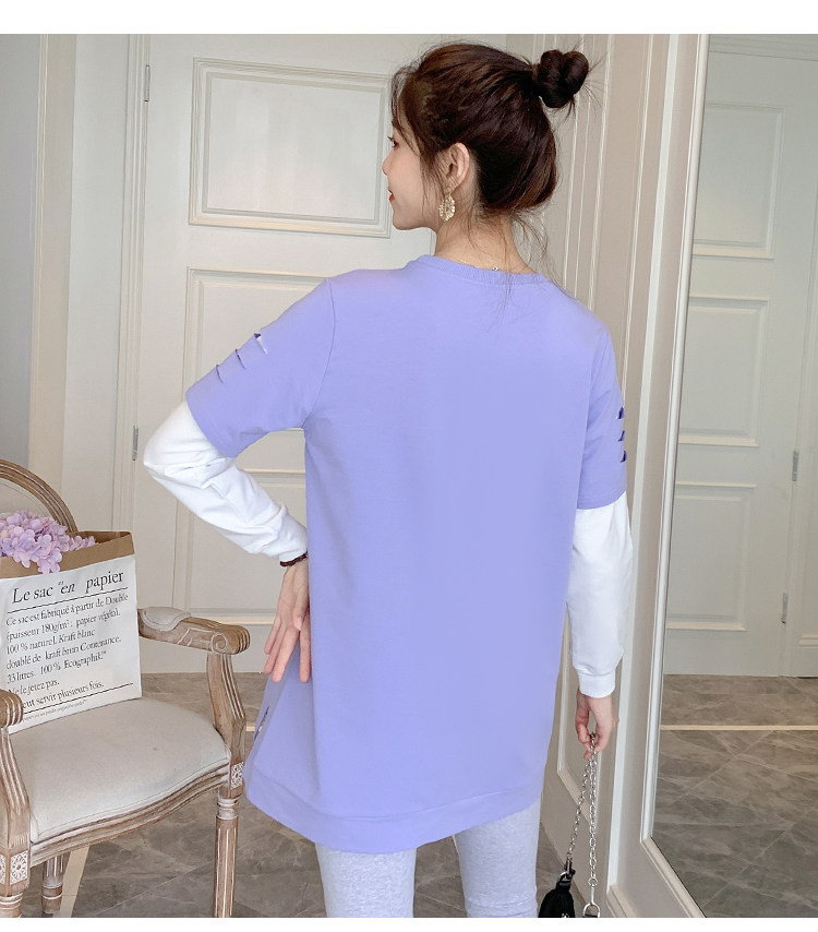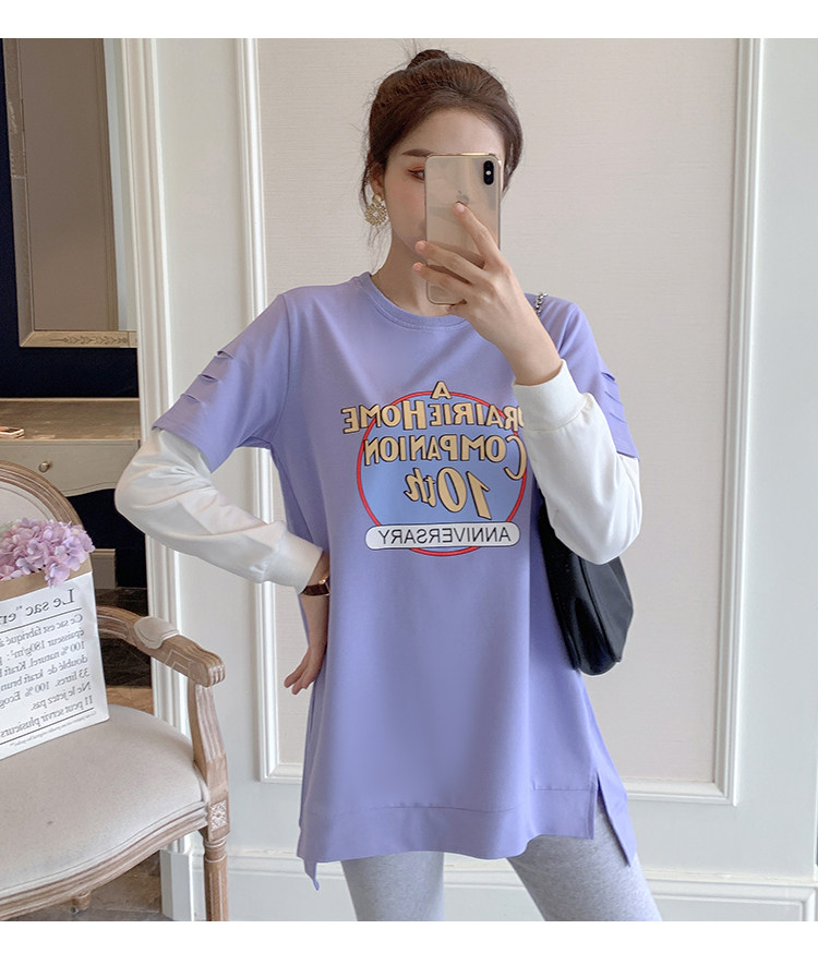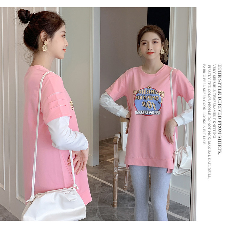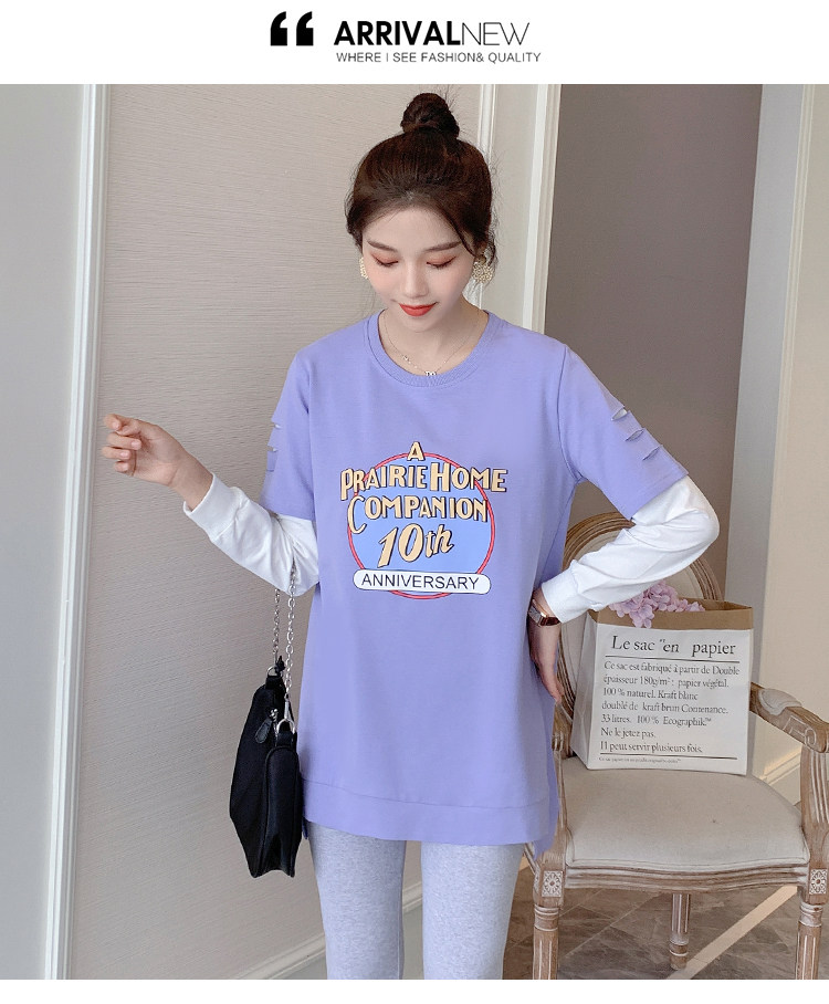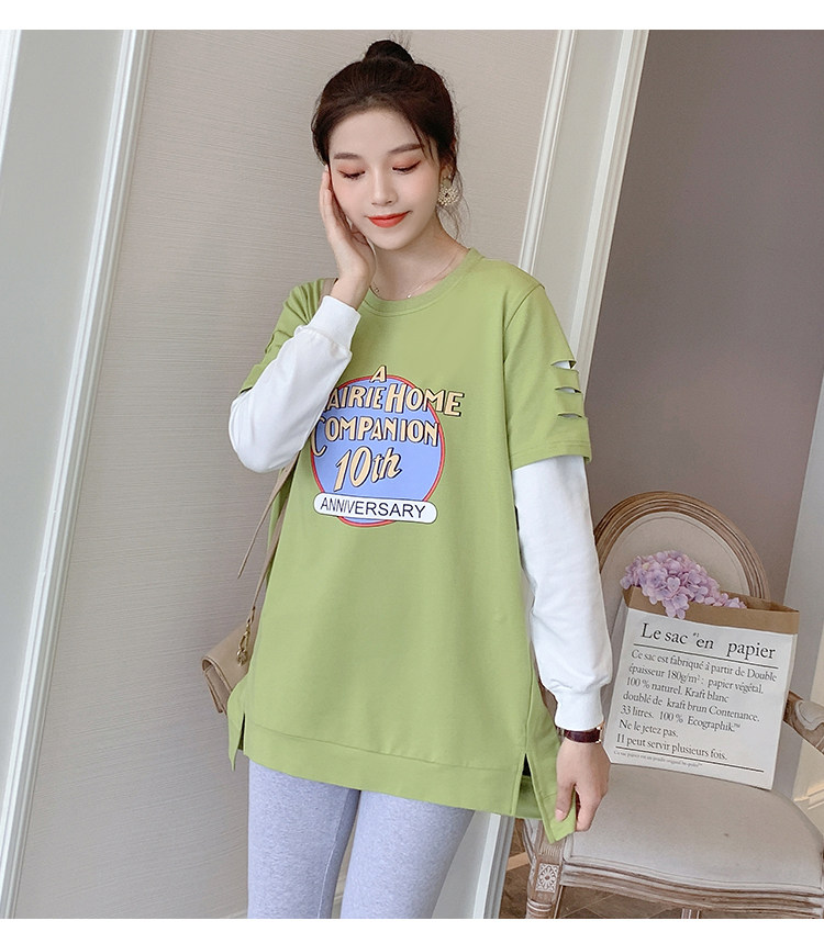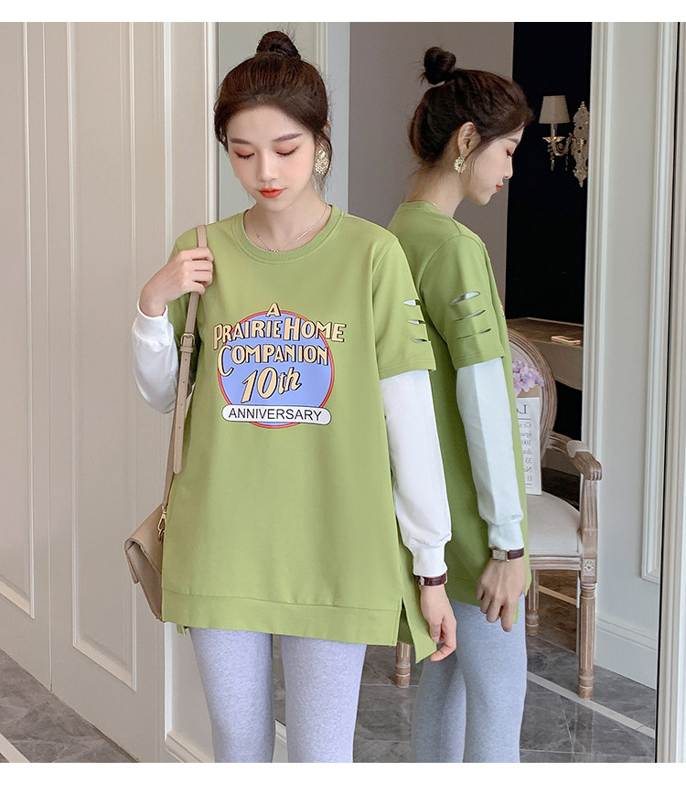 实拍孕妇上衣春秋装长袖宽松印花时尚孕妇外出辣妈T恤卫衣