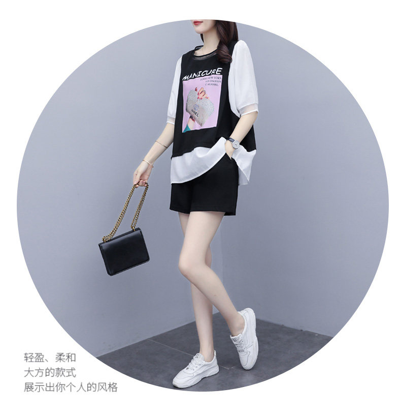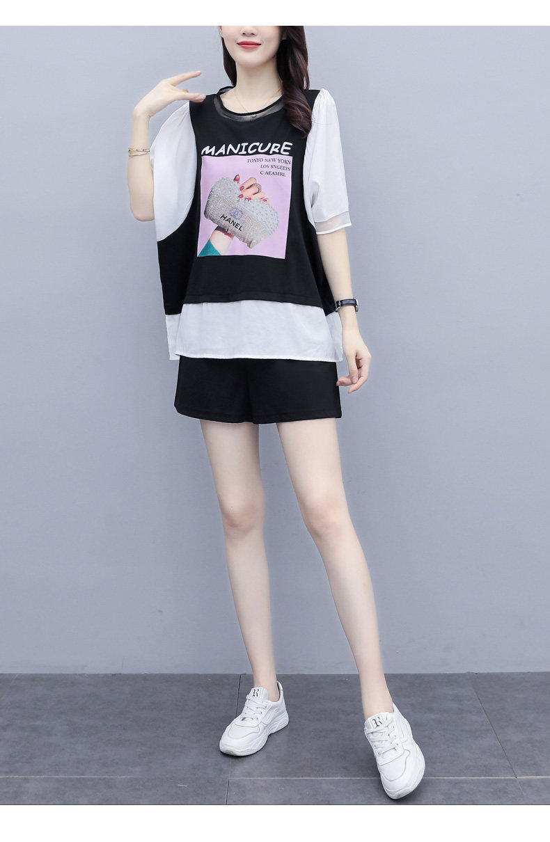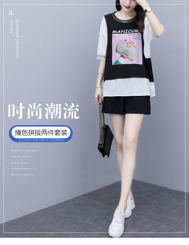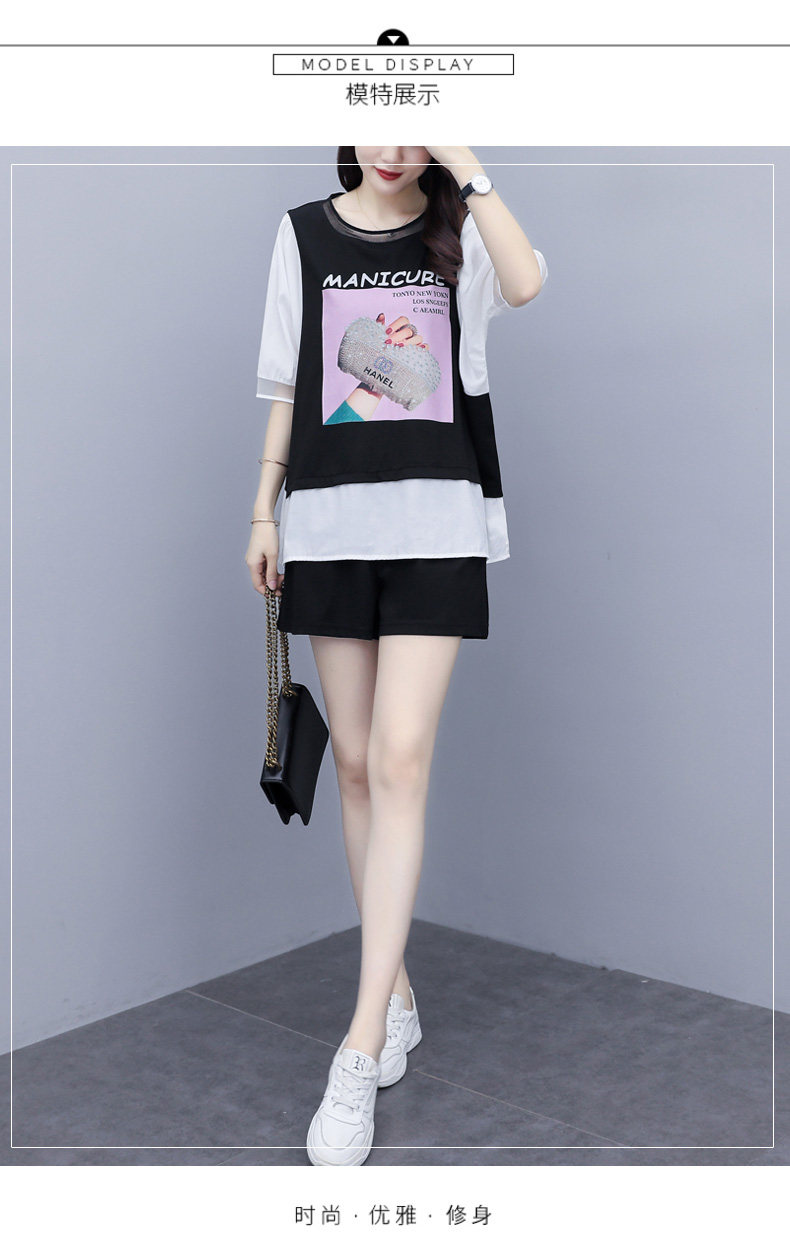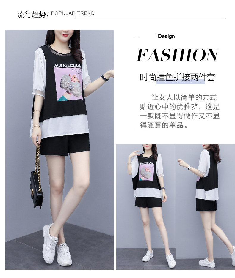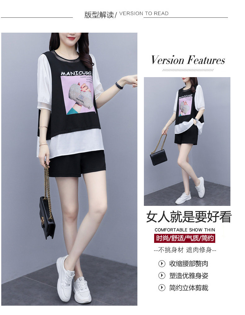 实拍2021夏季新款大码女装短裤两件套胖MM遮肚显瘦