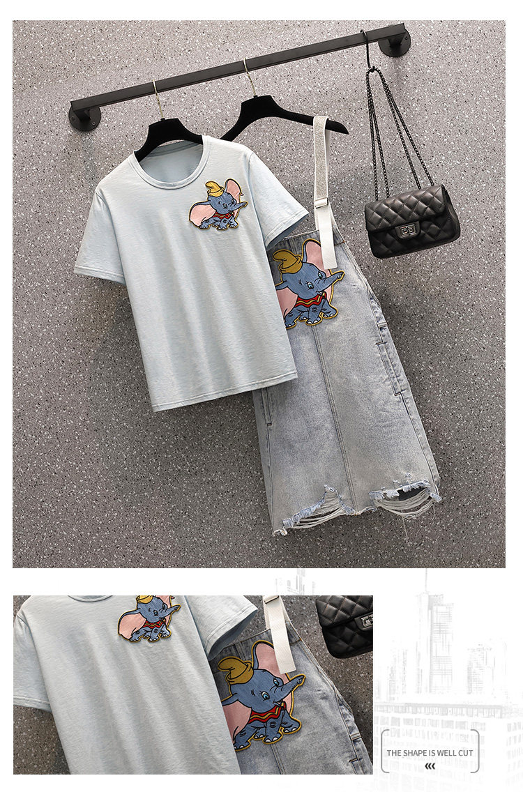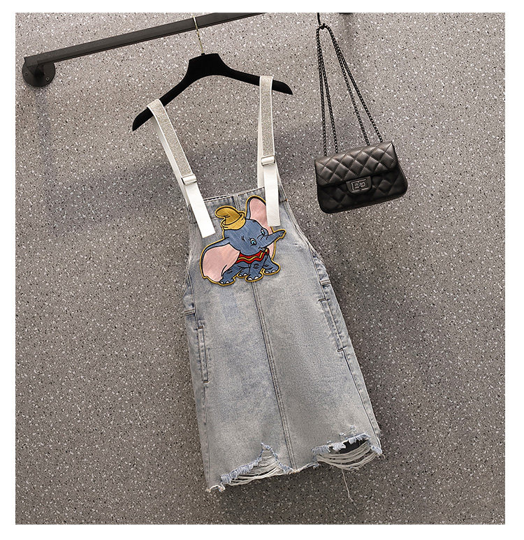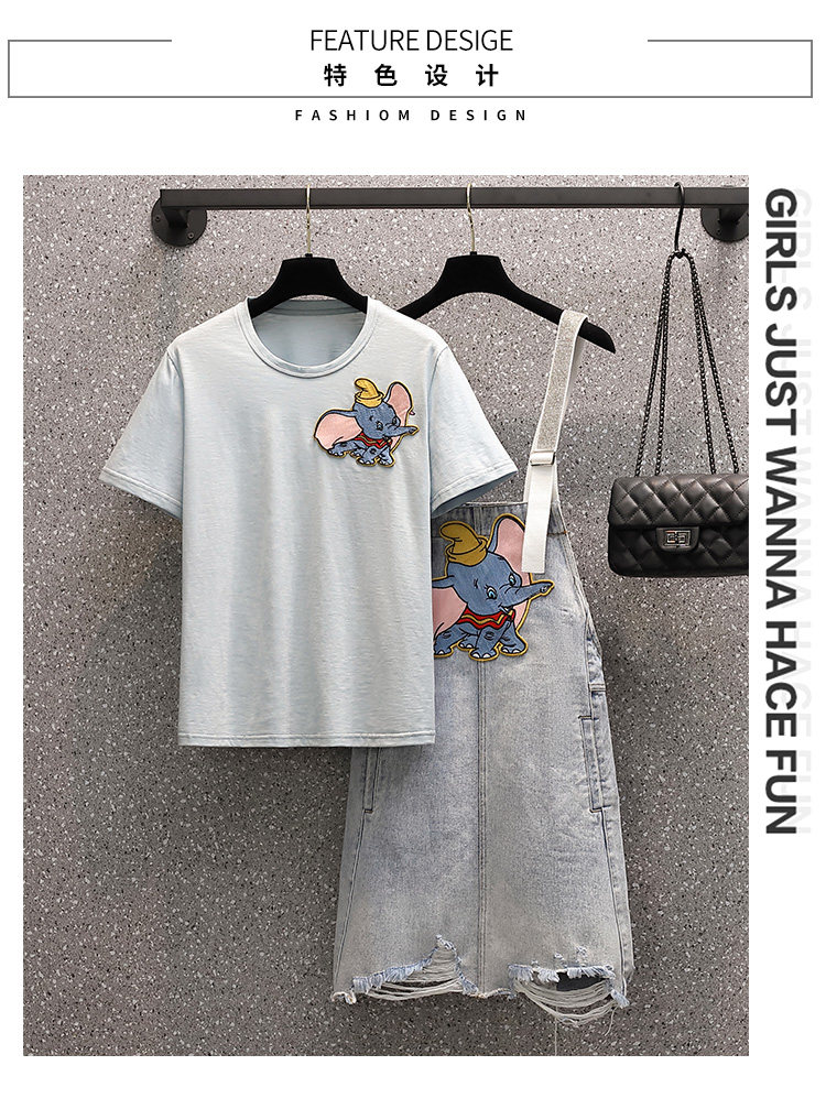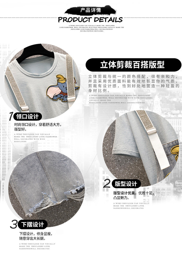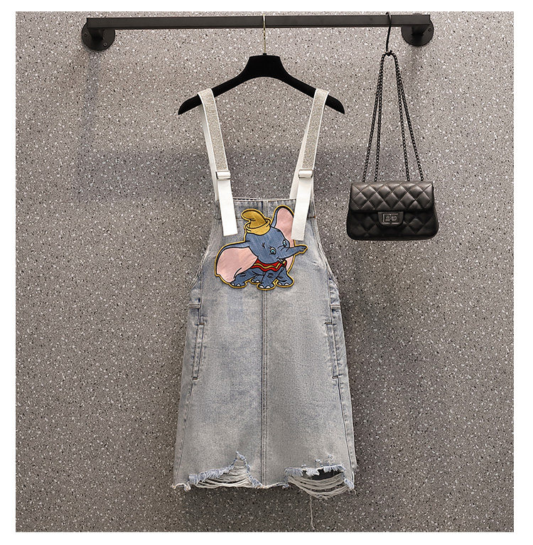 实拍2021大码女装新款胖妹妹遮肉夏季显瘦牛仔背带连衣裙套装