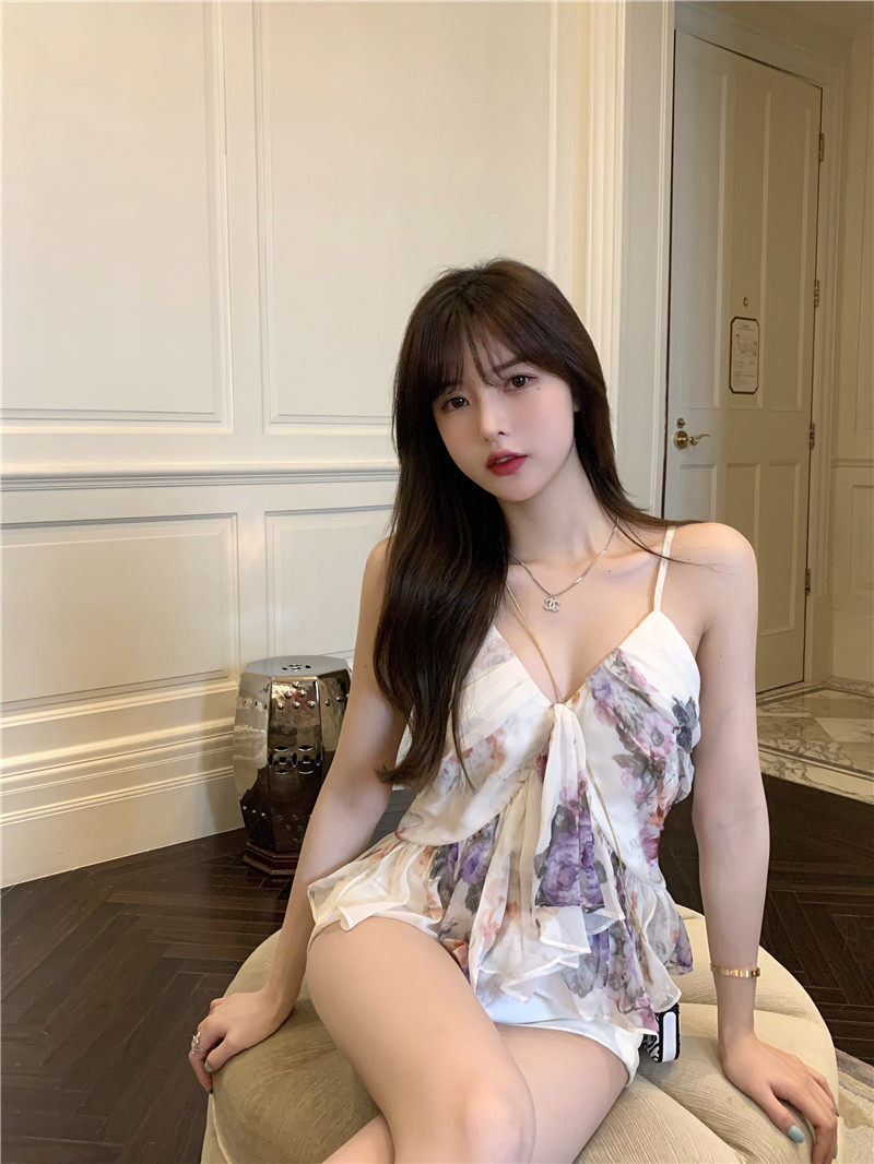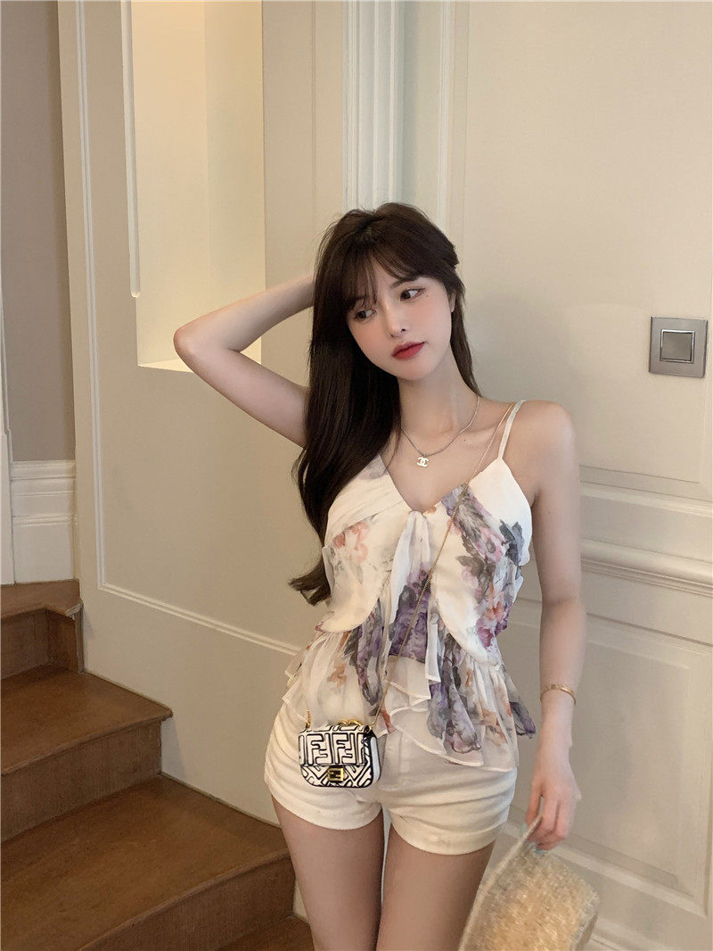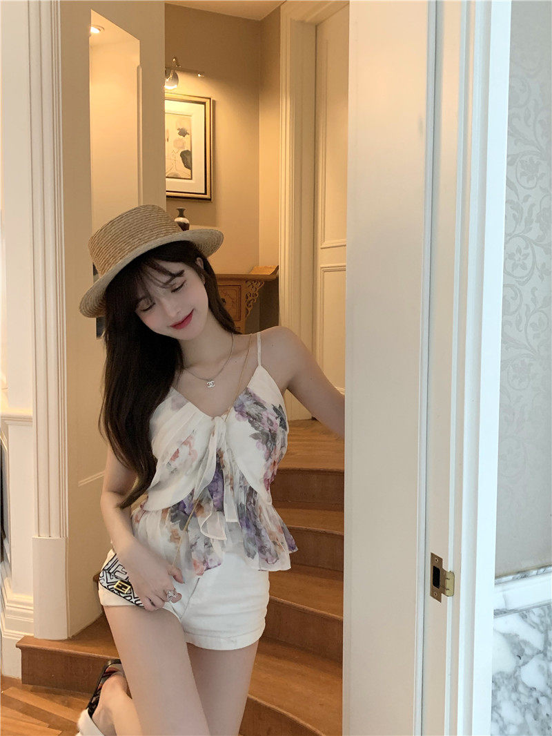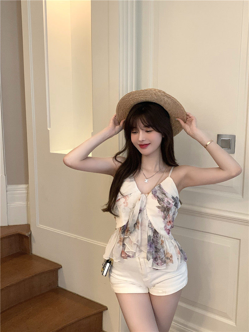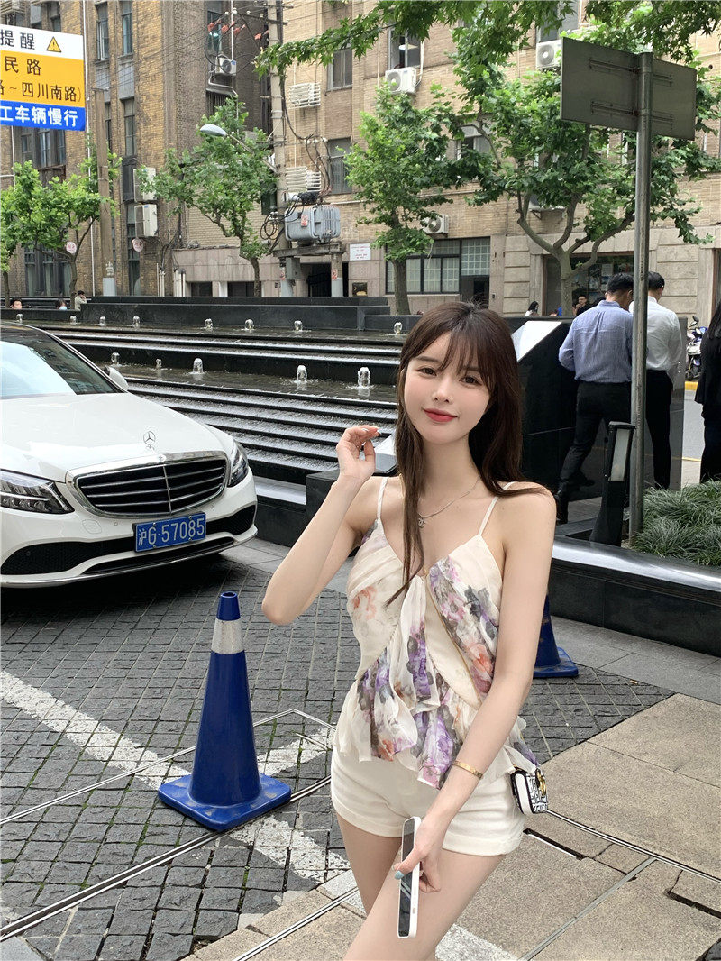实拍实价 荷叶边吊带外穿背心女收腰显瘦纯色上衣短款小衫