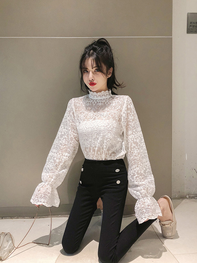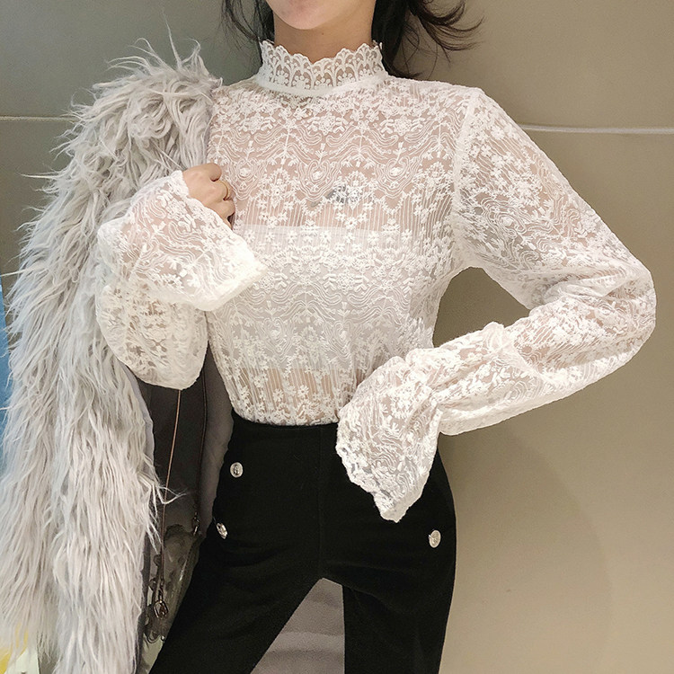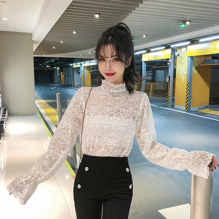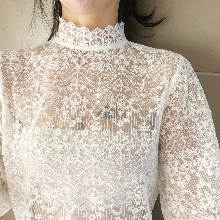 2021春季新款半高领蕾丝内搭水溶刺绣打底衫洋气小衫网纱上衣女