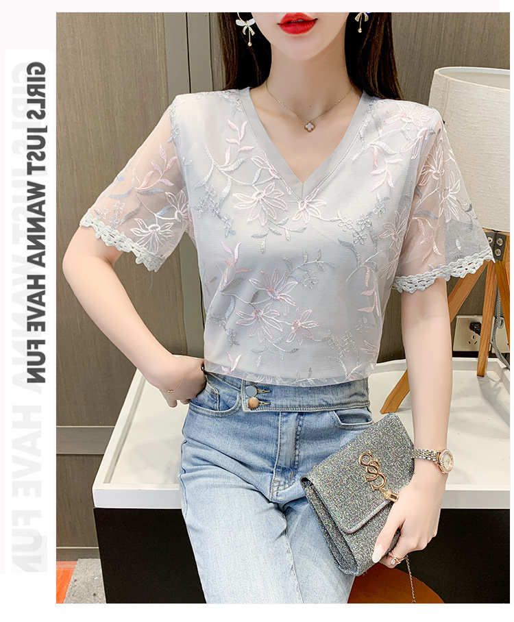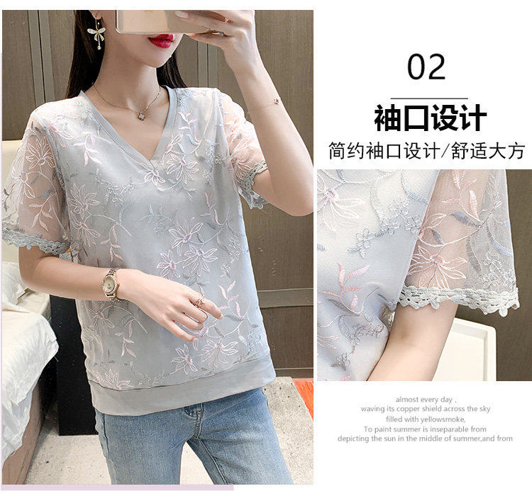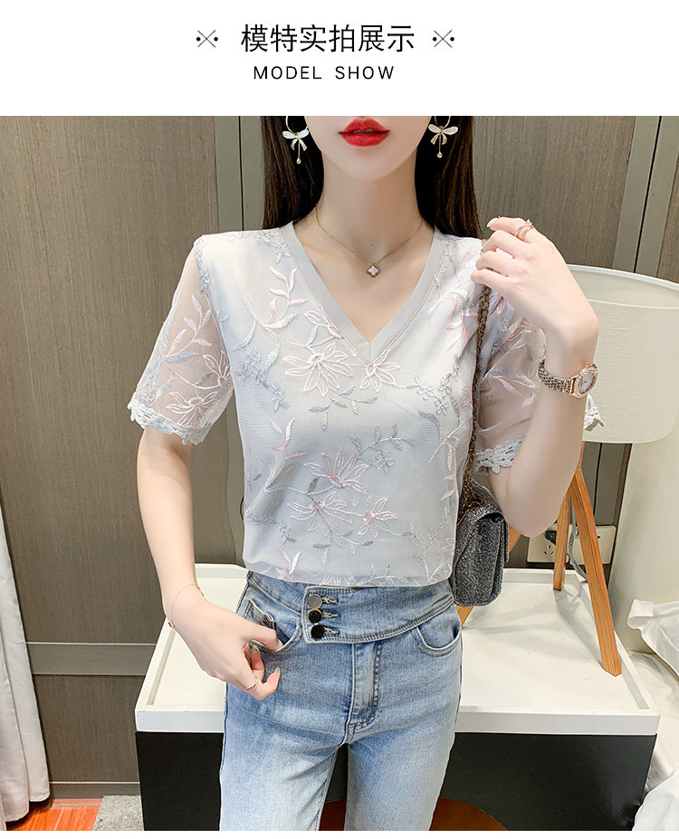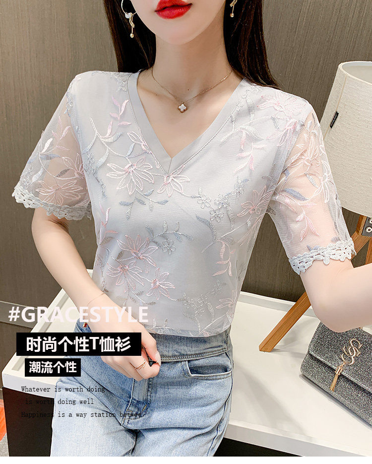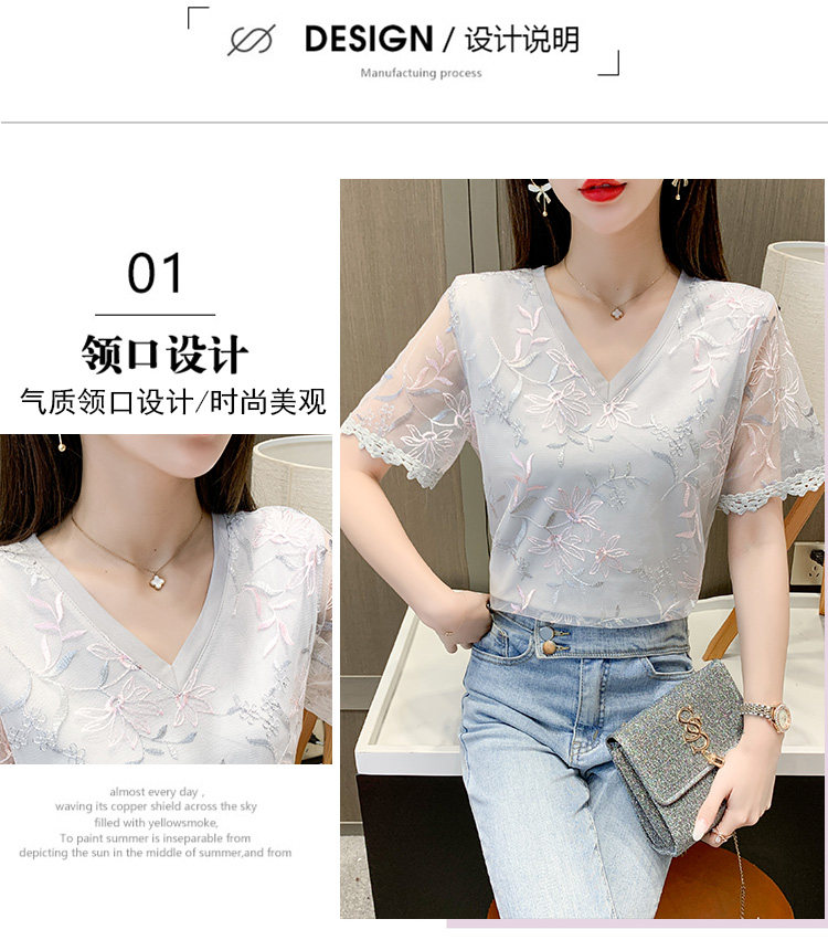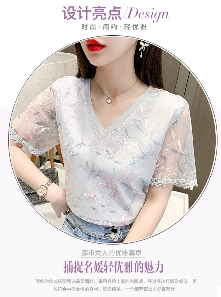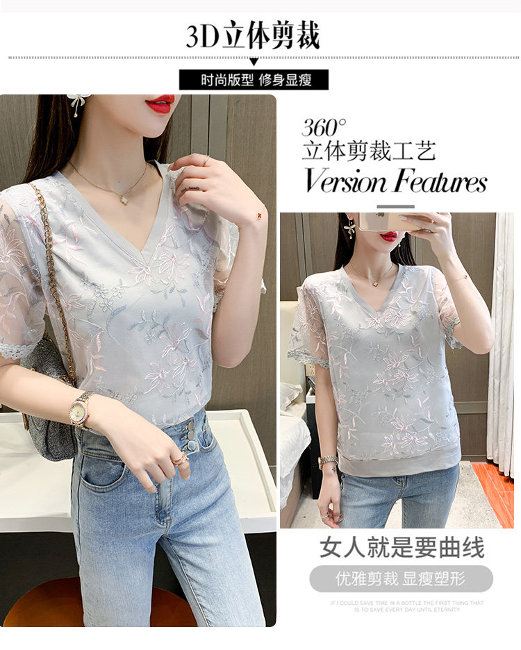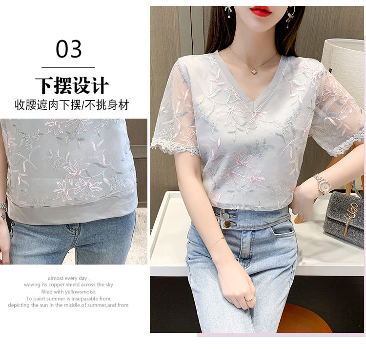 实拍 小众设计感刺绣蕾丝上衣女2021夏季新款修身显瘦遮肉洋气T恤