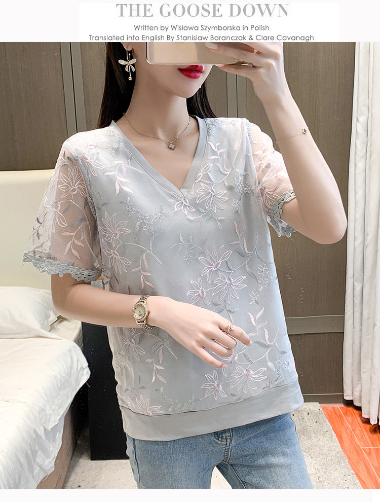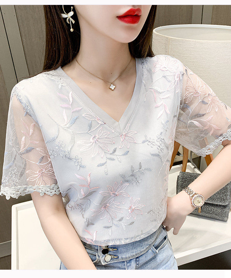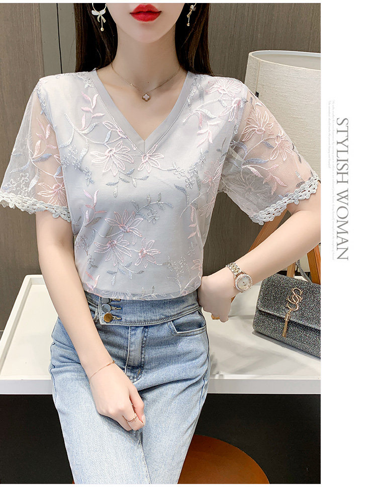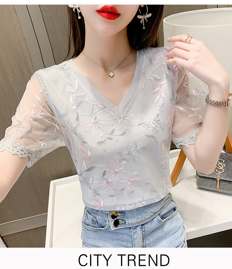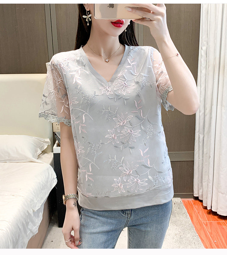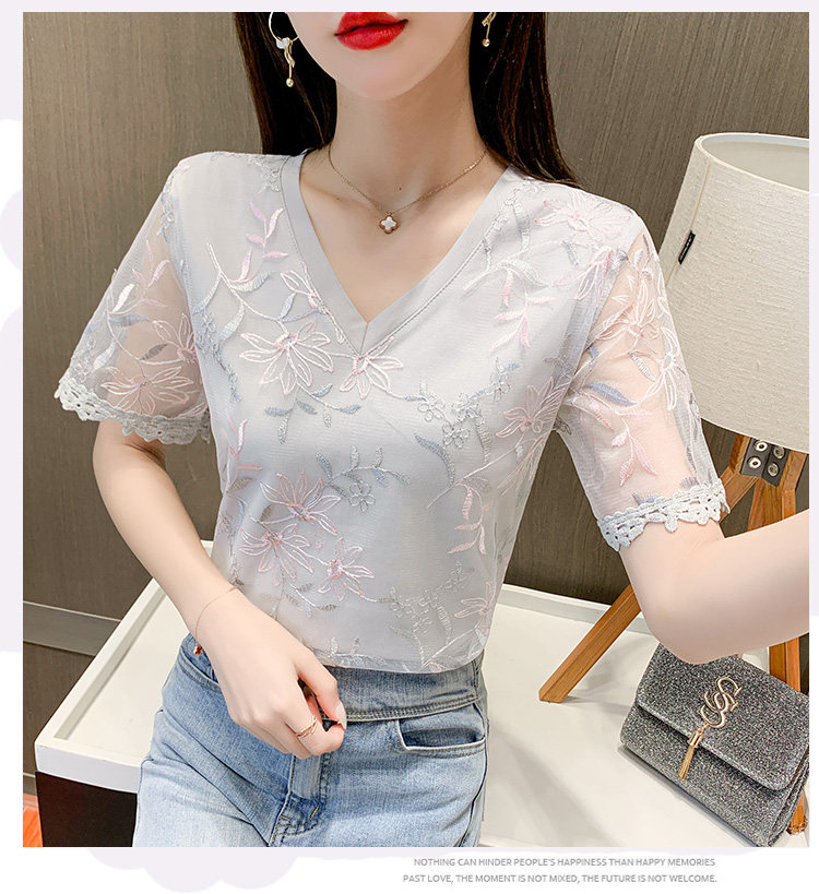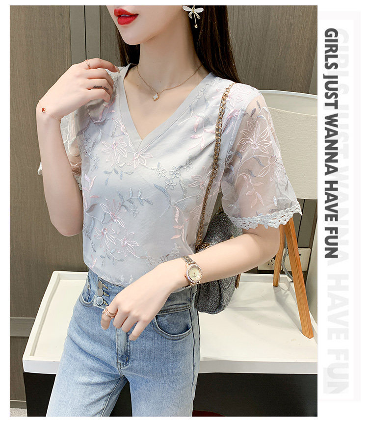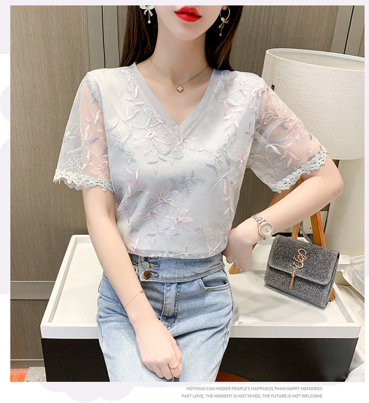 实拍 小众设计感刺绣蕾丝上衣女2021夏季新款修身显瘦遮肉洋气T恤