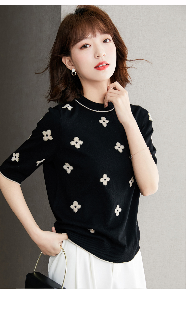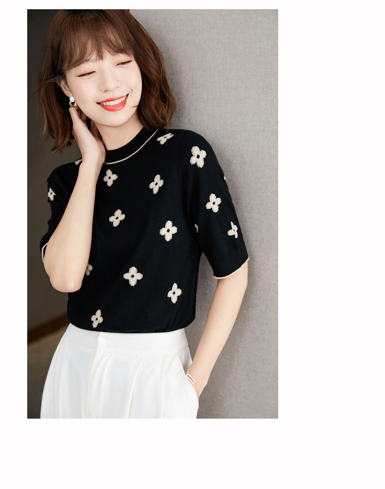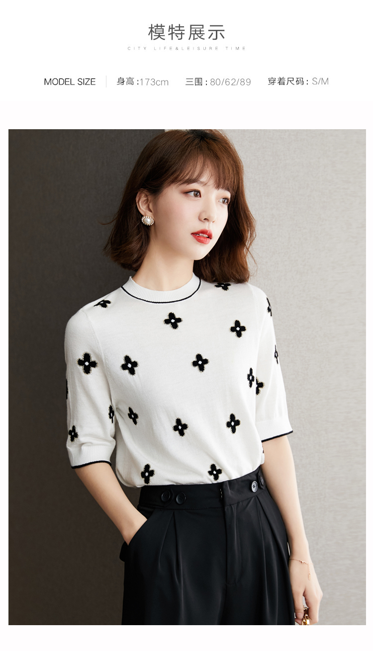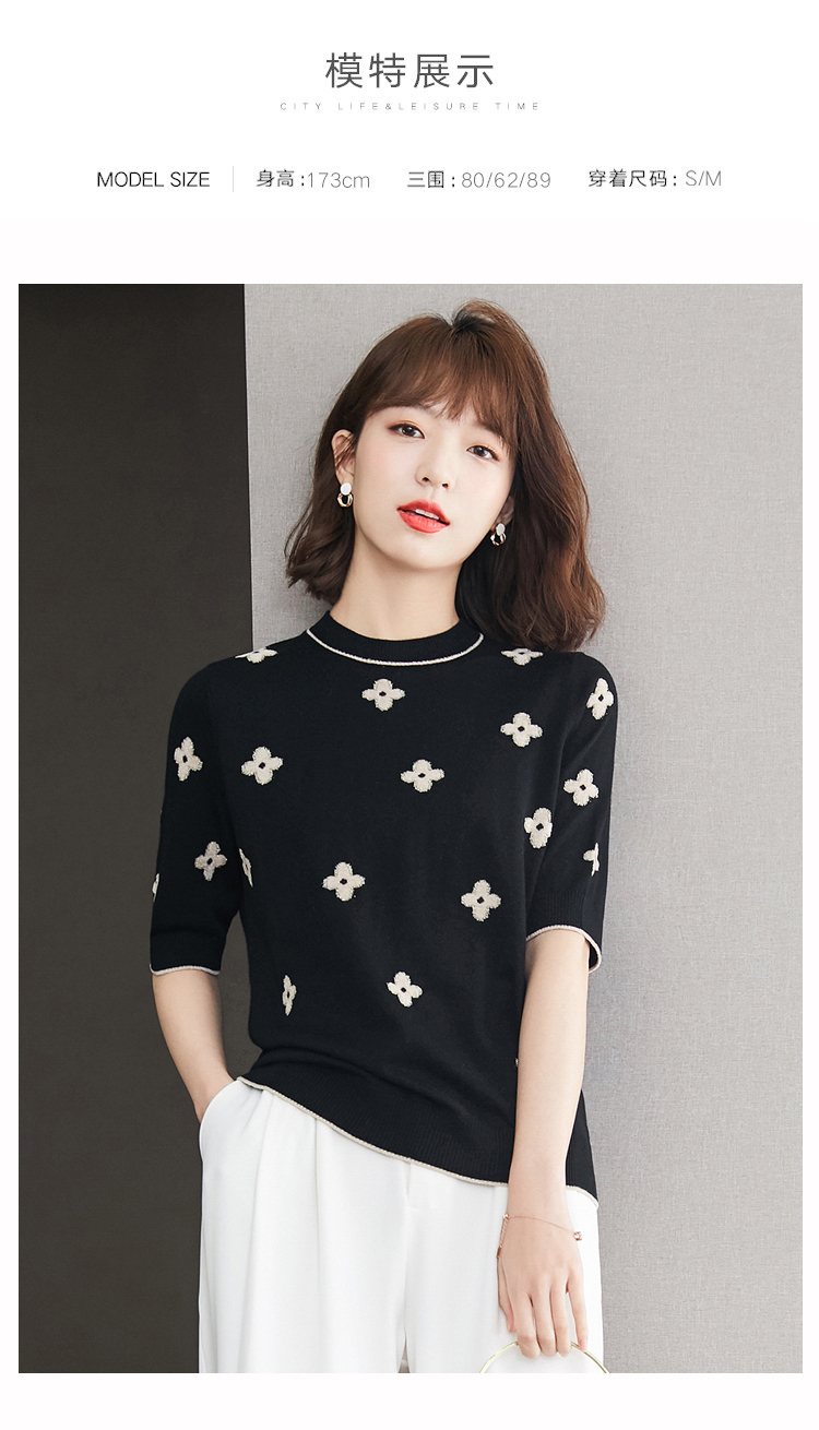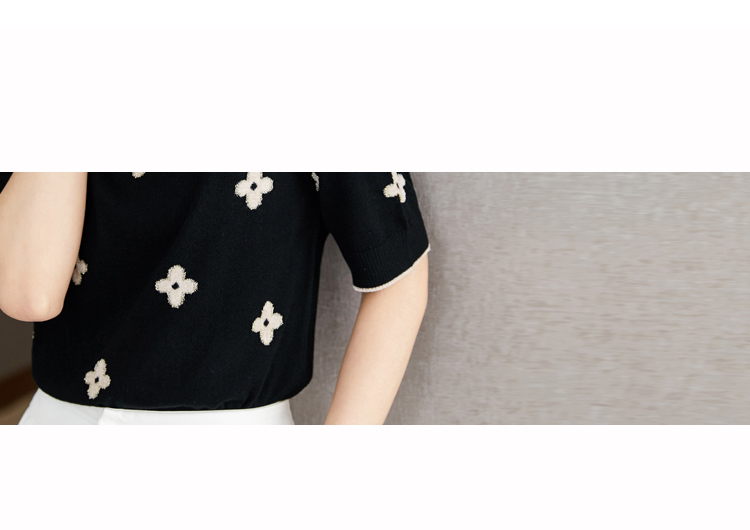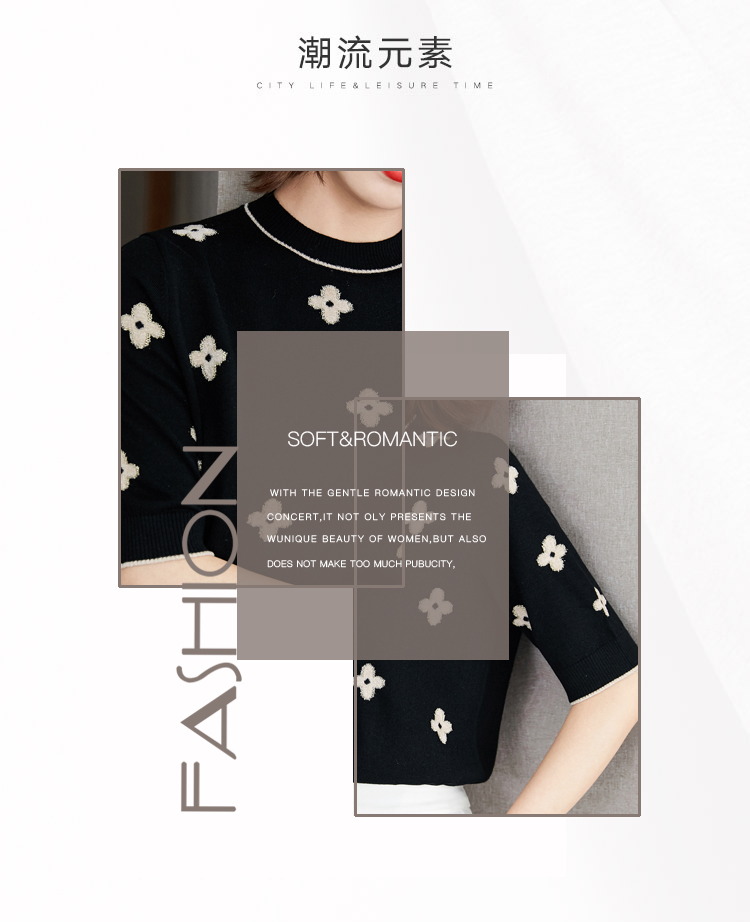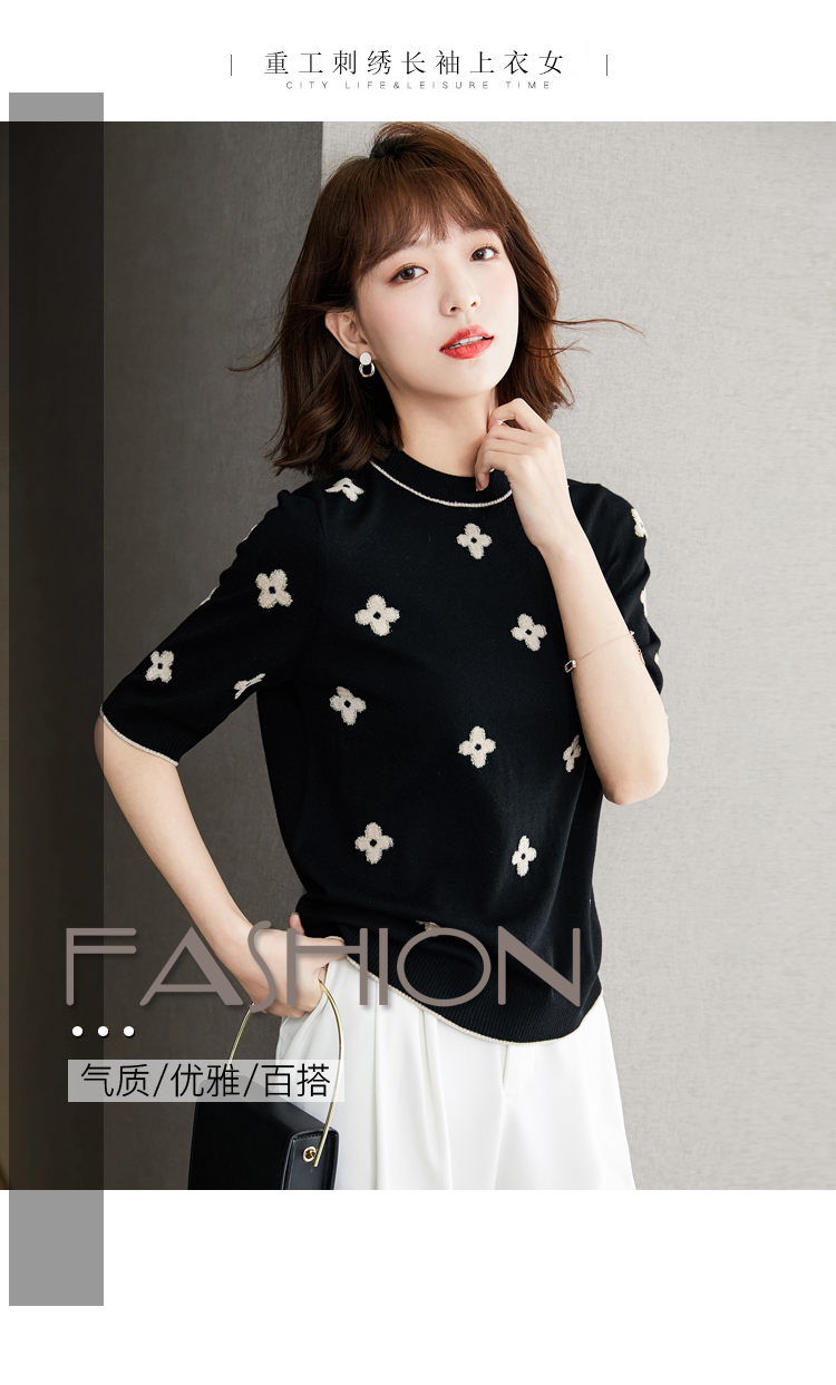 已出货◆2021高端轻奢欧货女装欧洲站天丝羊毛中袖重工刺绣上衣女