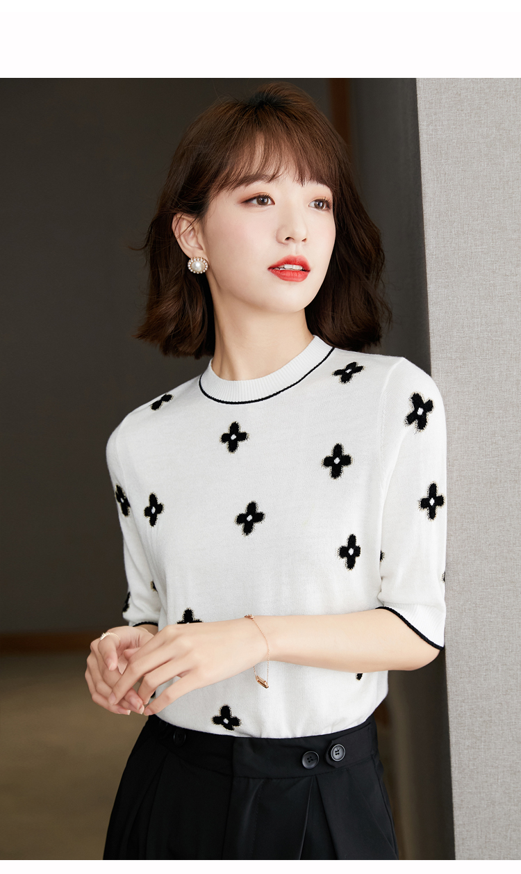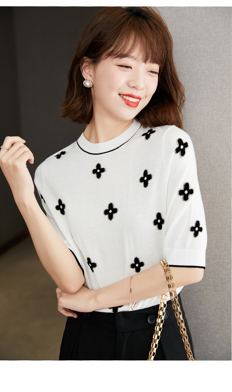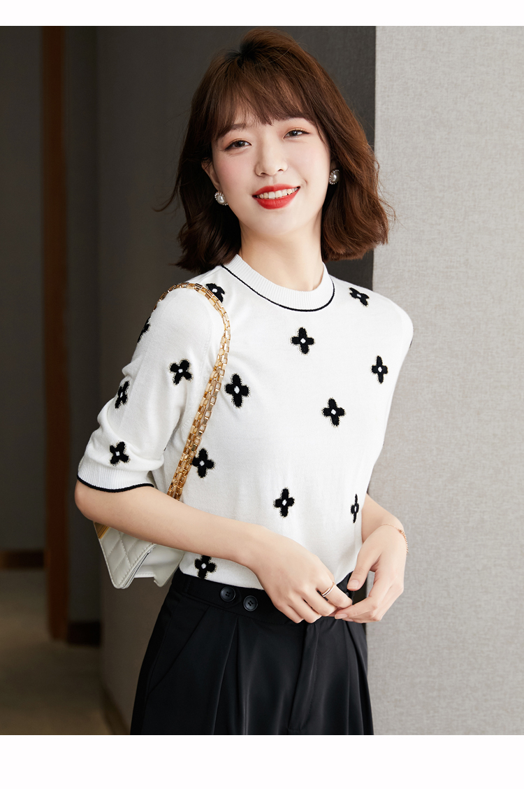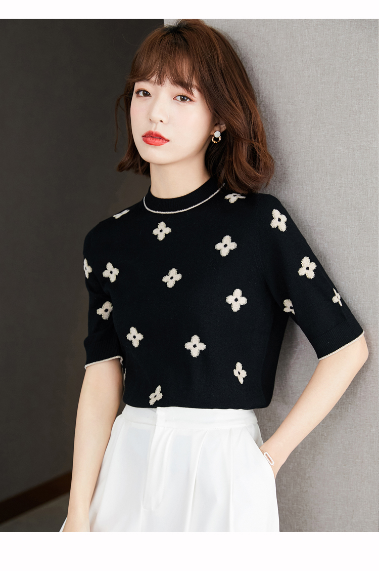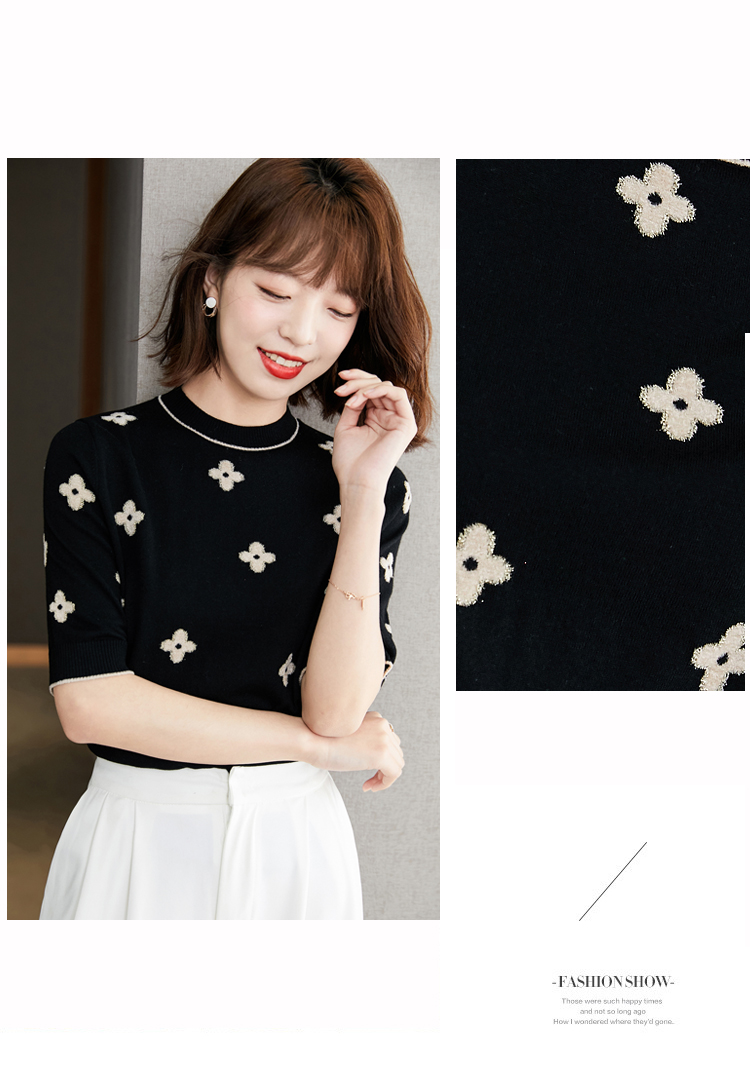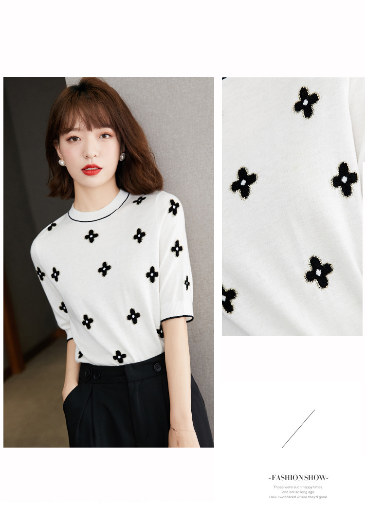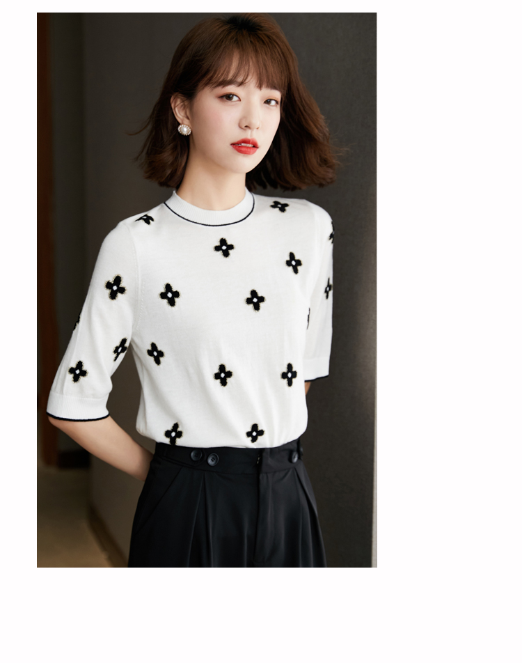 已出货◆2021高端轻奢欧货女装欧洲站天丝羊毛中袖重工刺绣上衣女