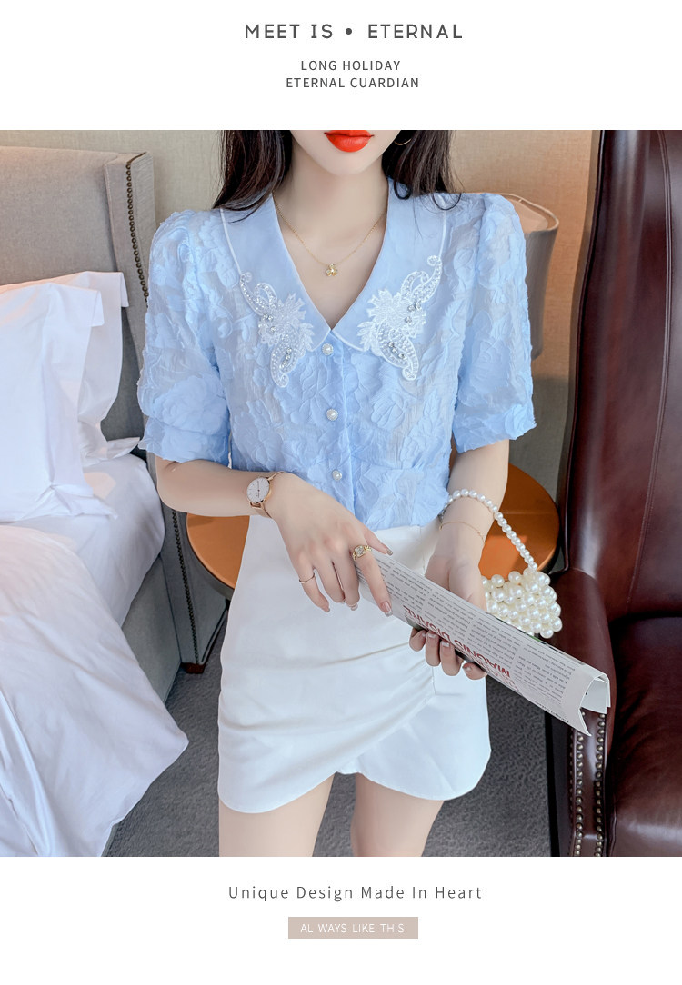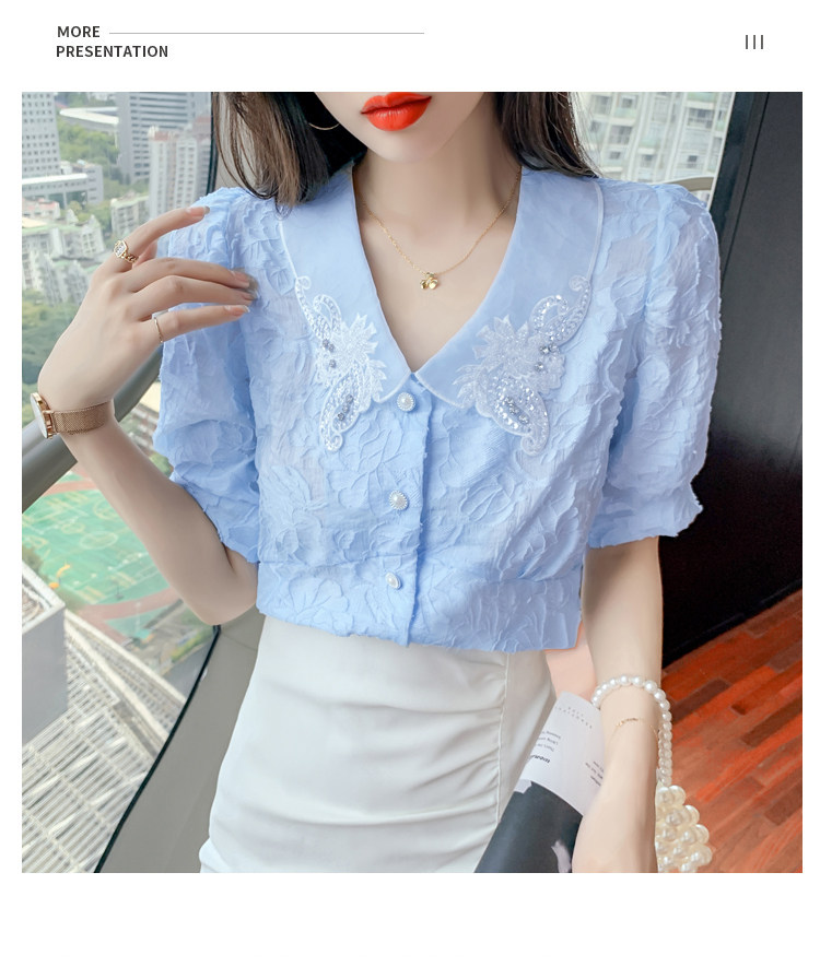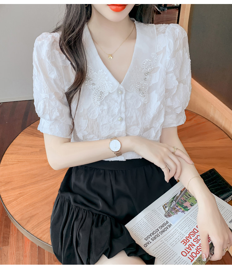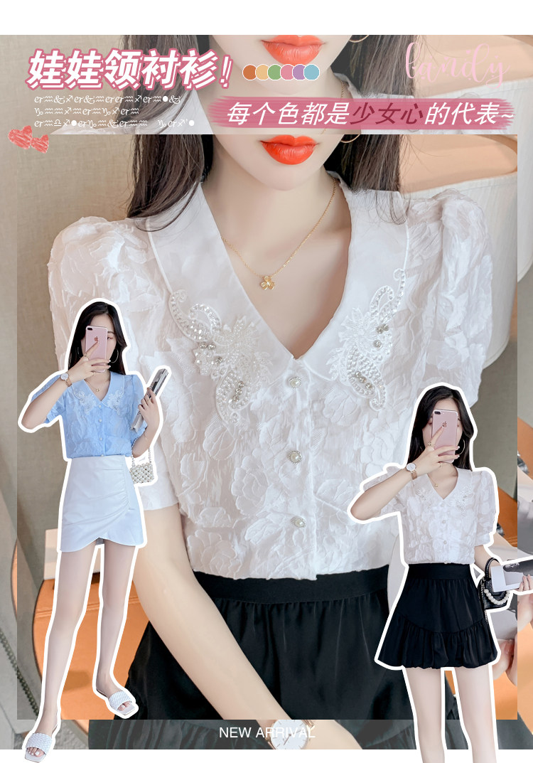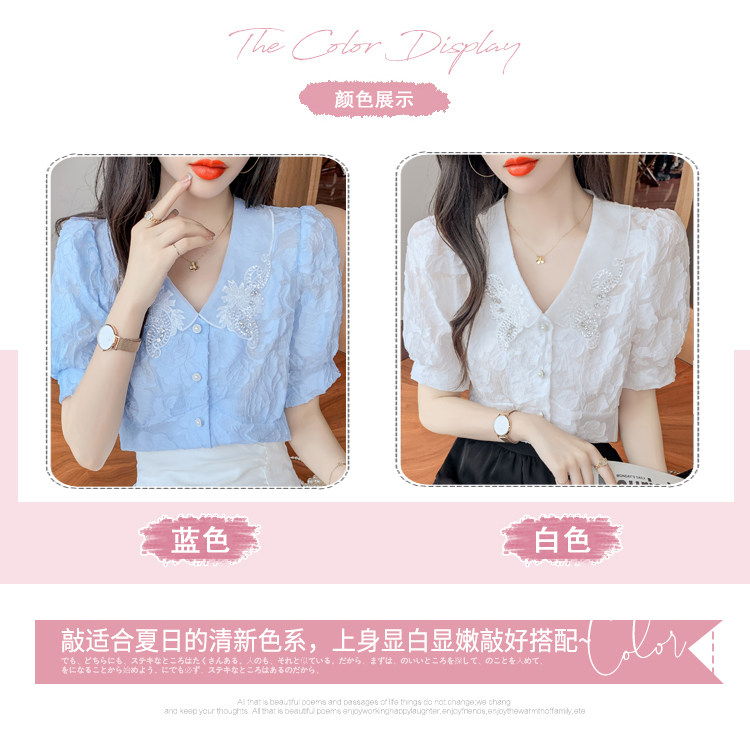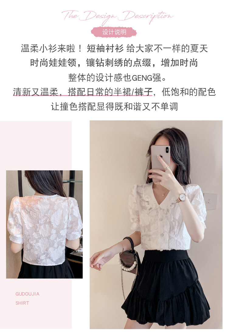 实拍2021夏新款娃娃领雪纺衬衫短袖很仙的上衣气质小衫