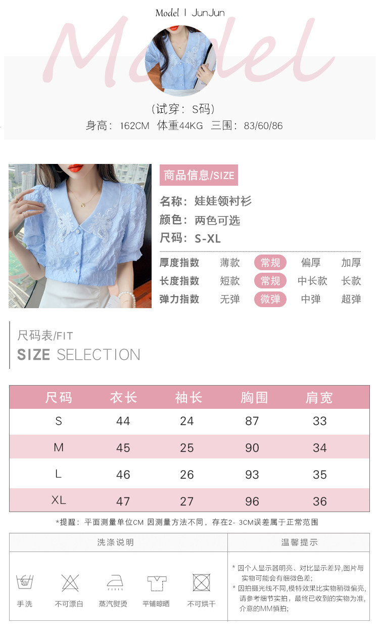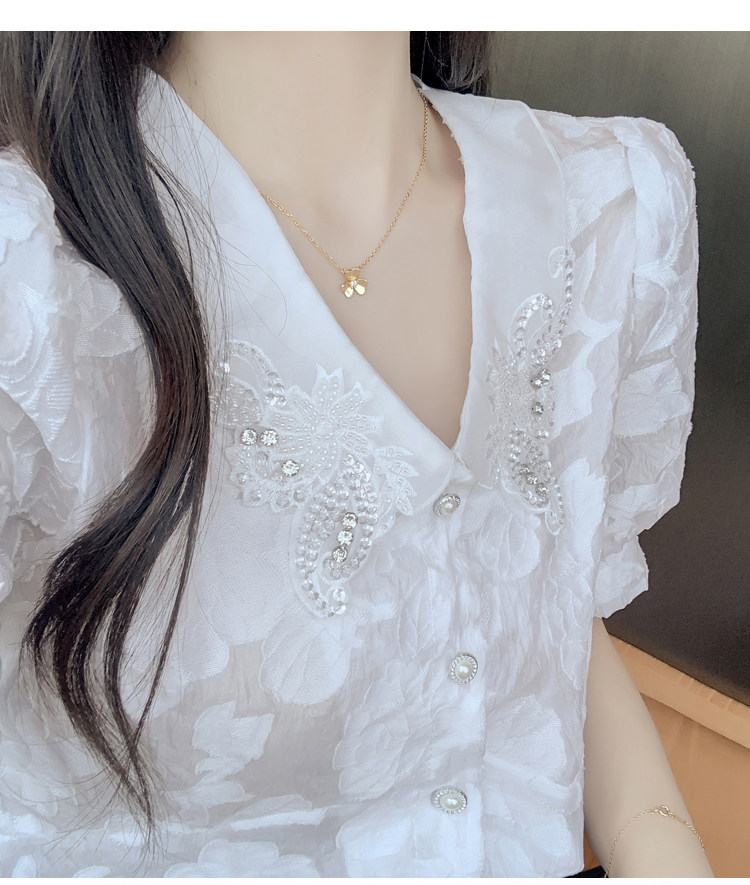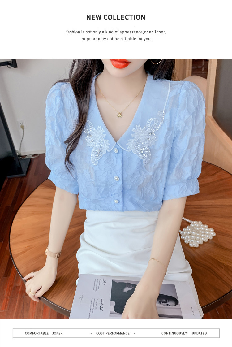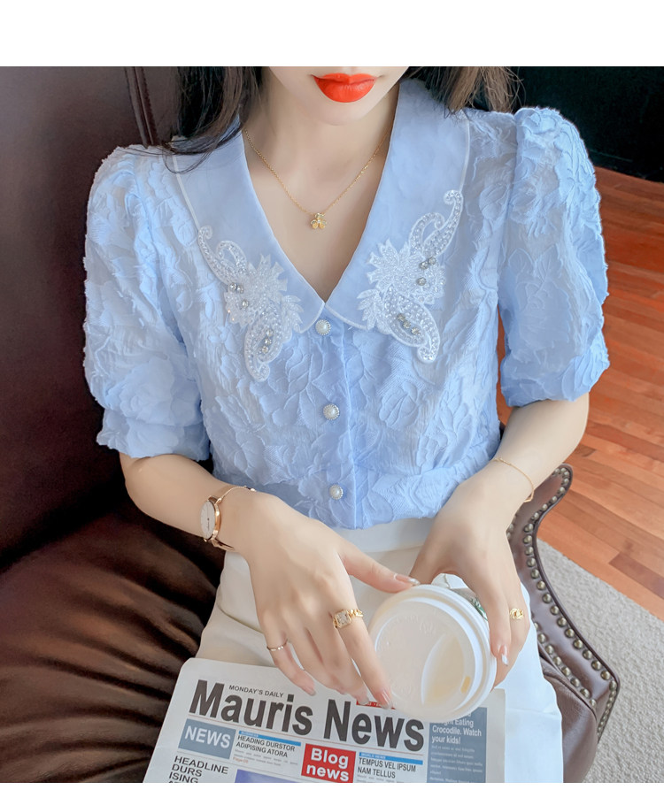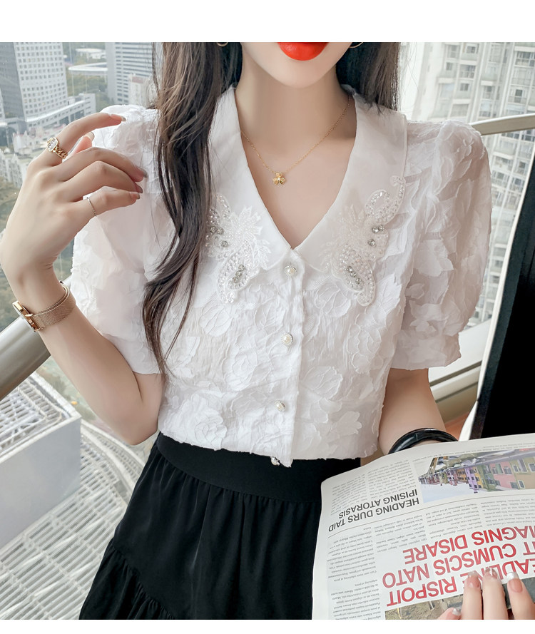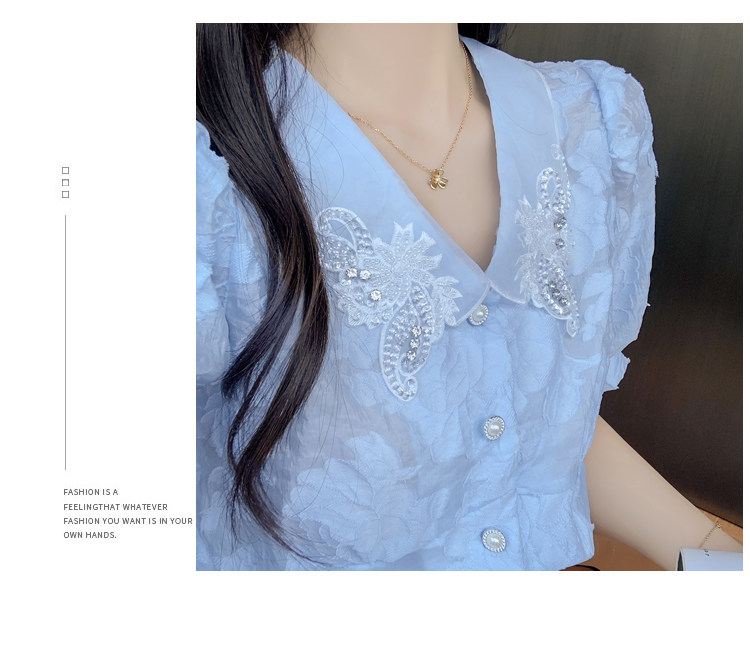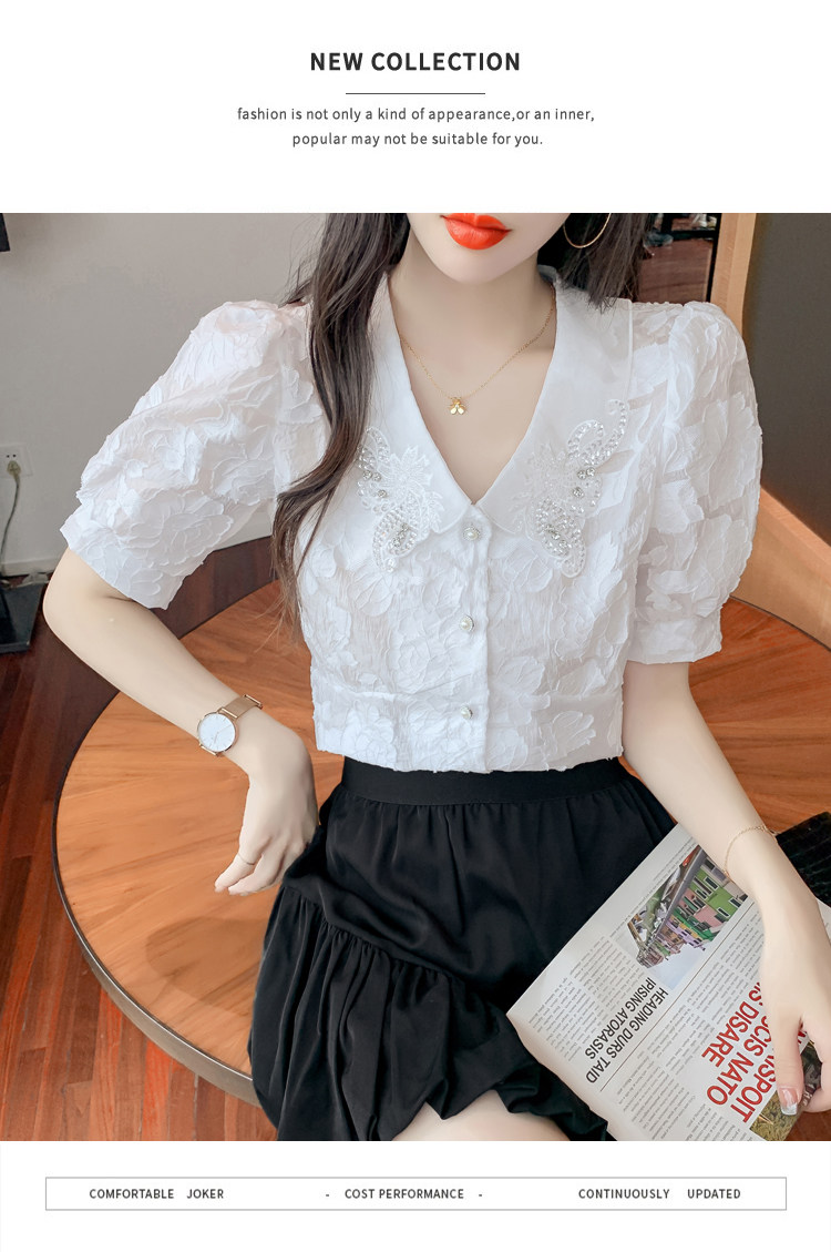 实拍2021夏新款娃娃领雪纺衬衫短袖很仙的上衣气质小衫