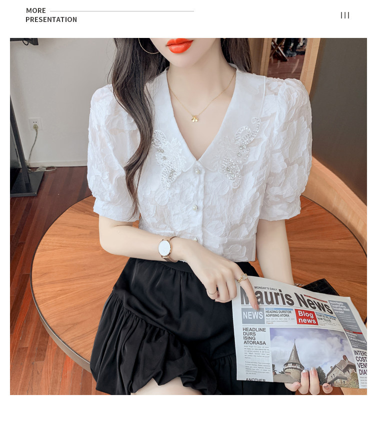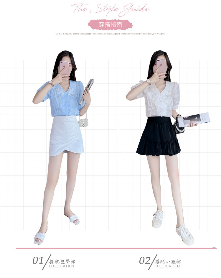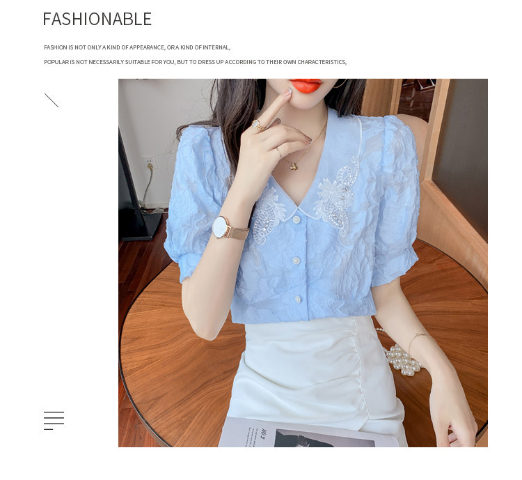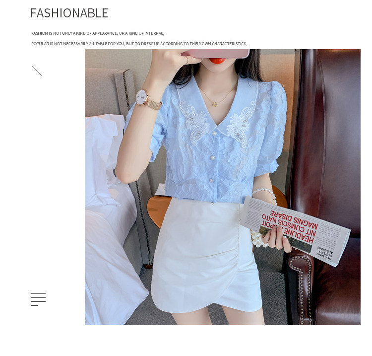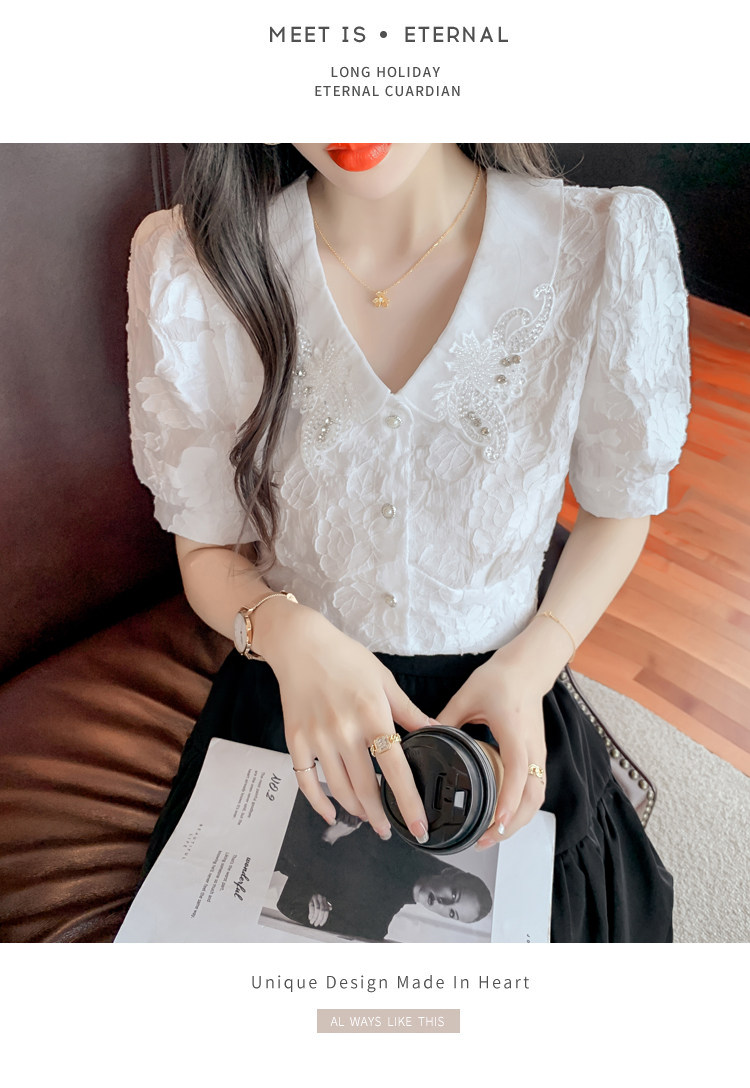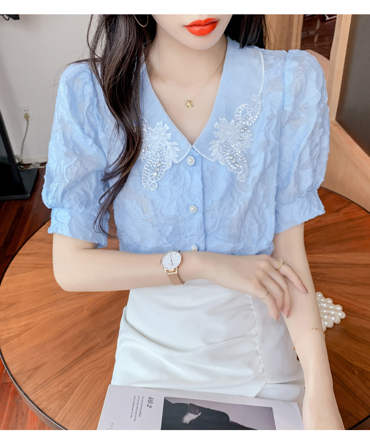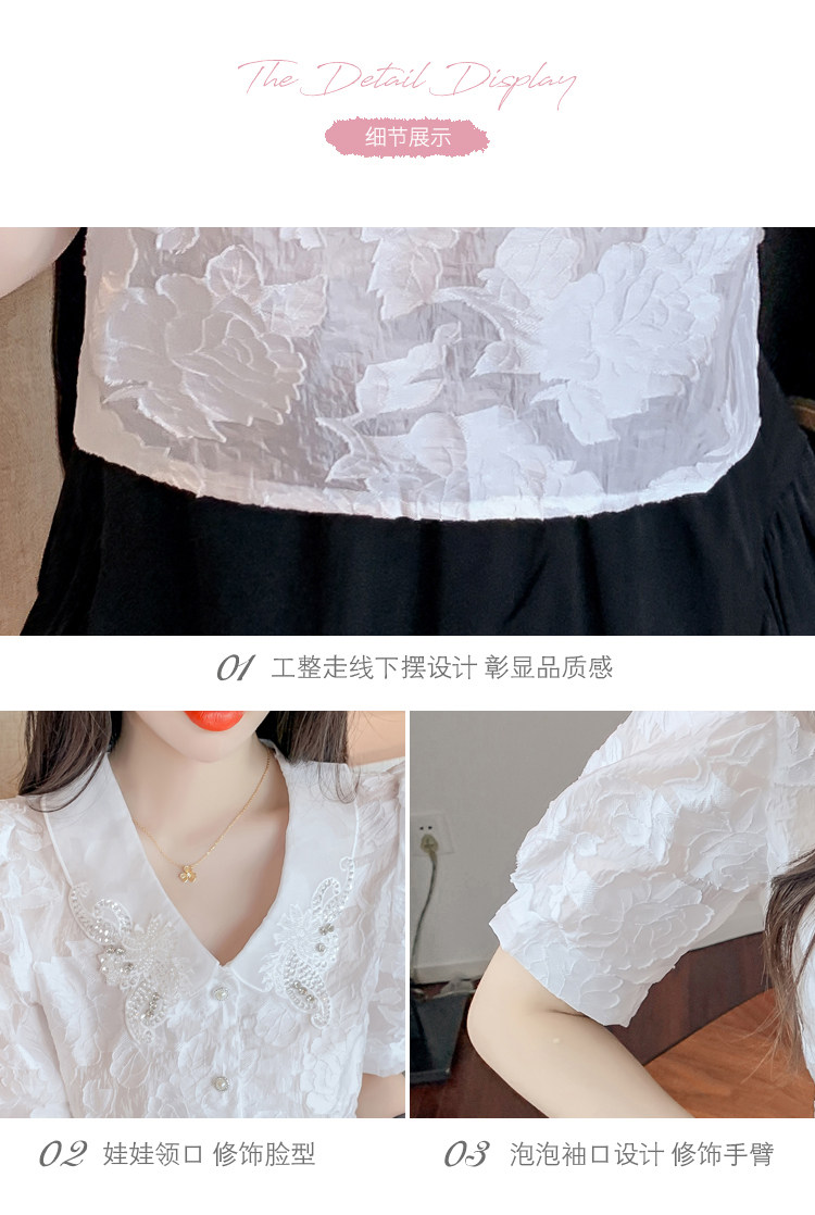 实拍2021夏新款娃娃领雪纺衬衫短袖很仙的上衣气质小衫