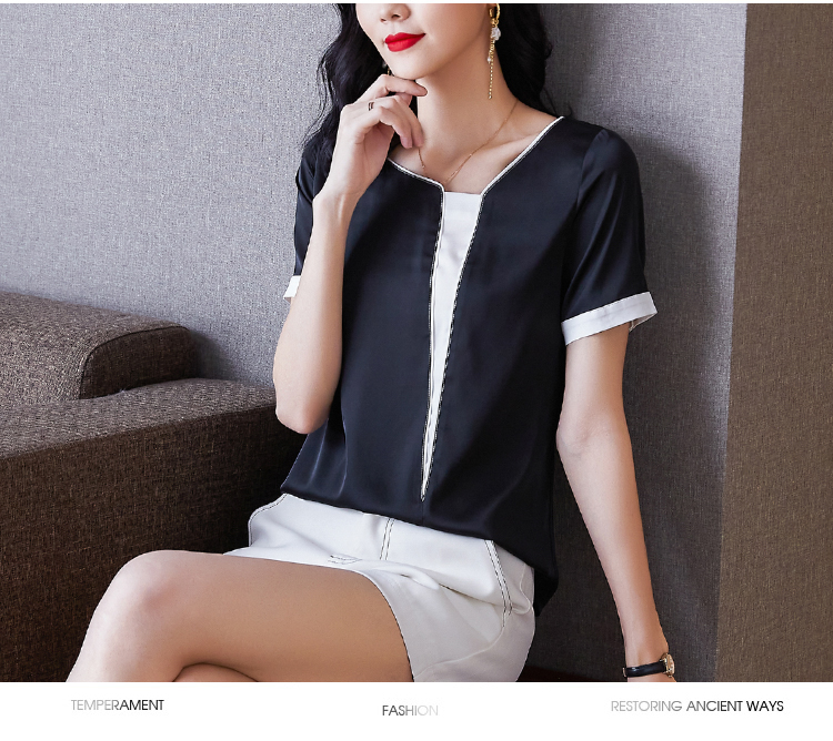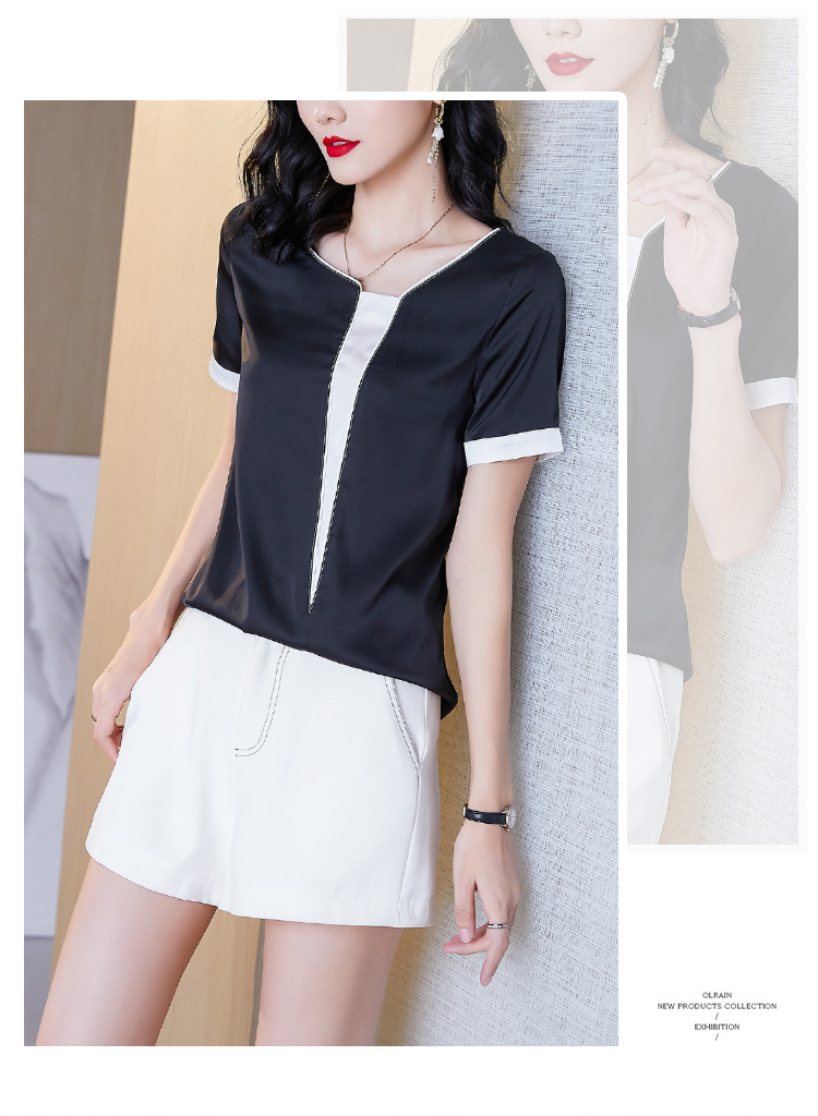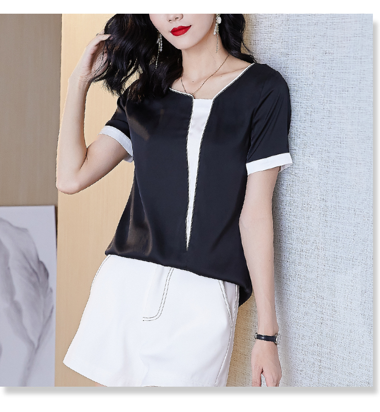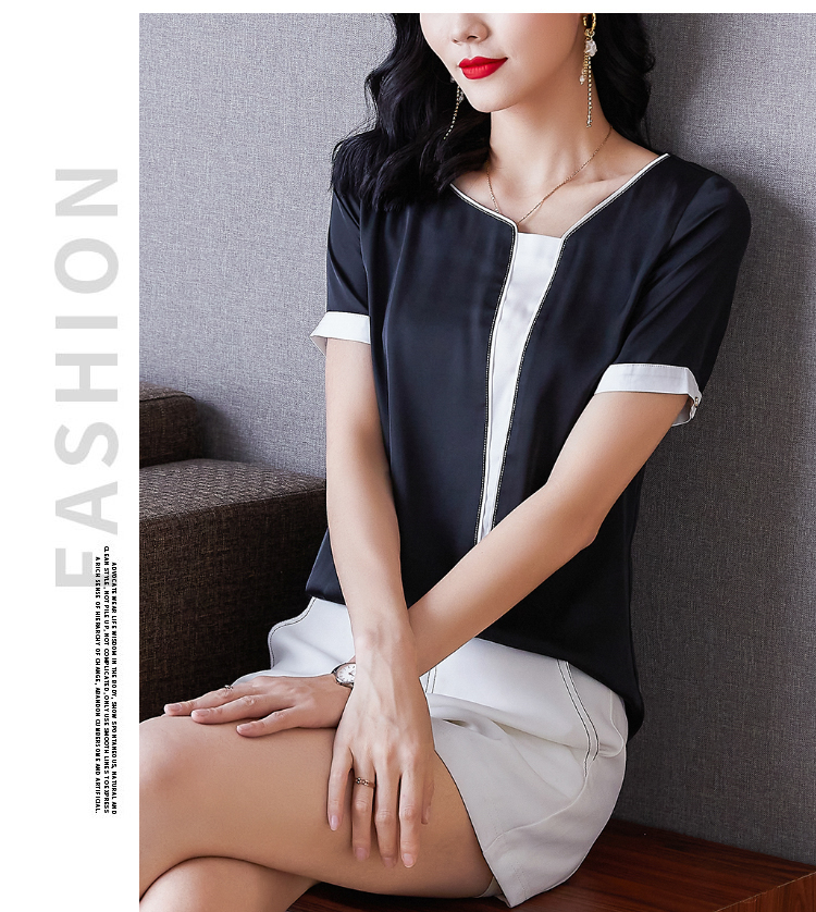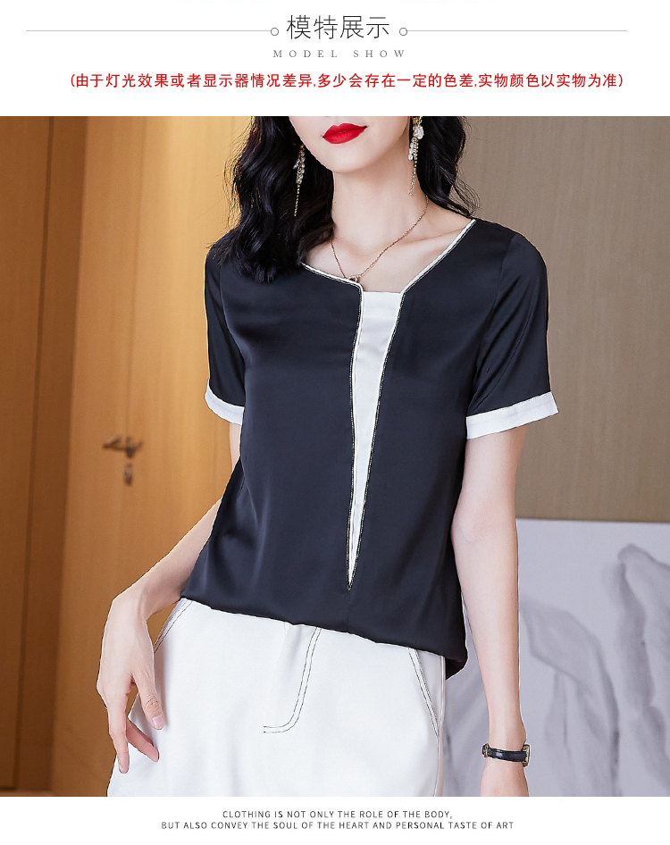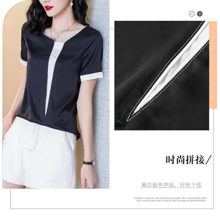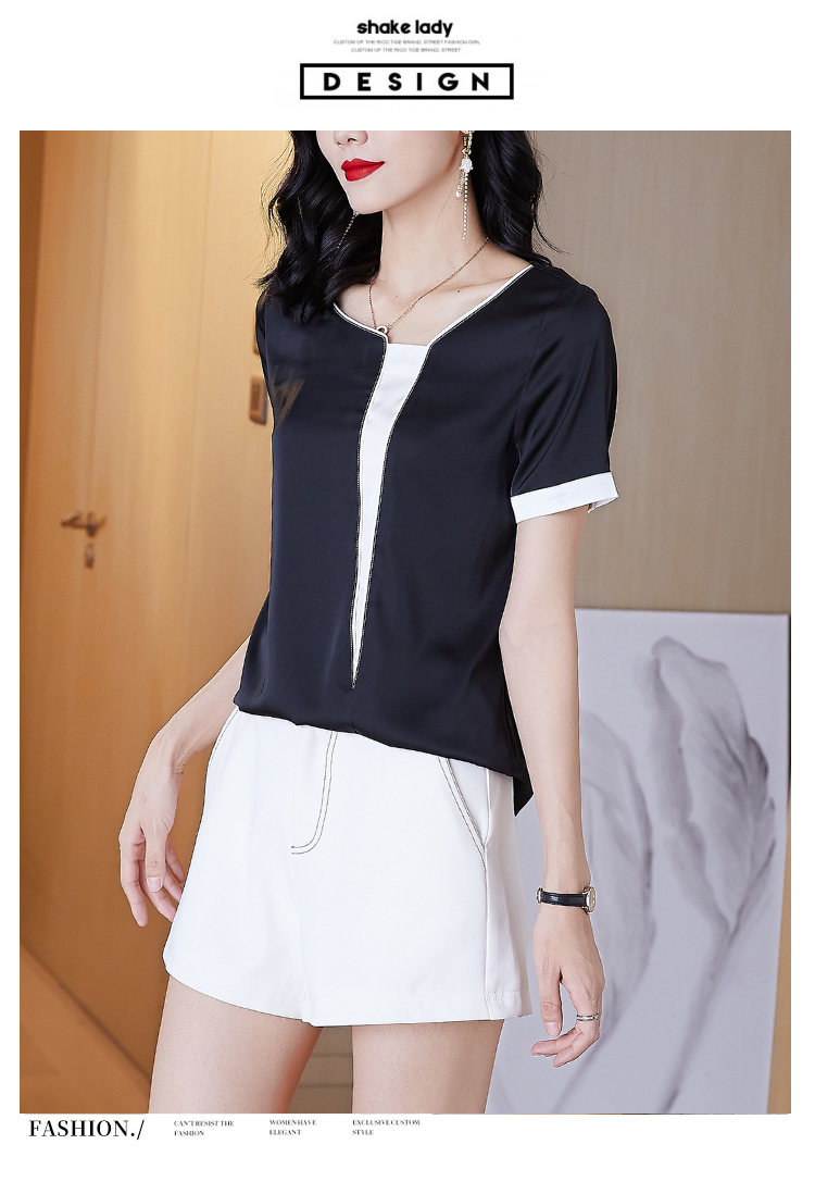实拍夏季大码气质短袖衬衣薄款休闲上衣不规则设计款雪纺衫