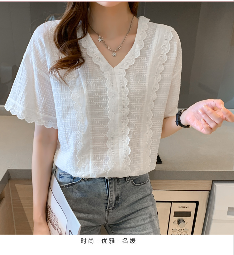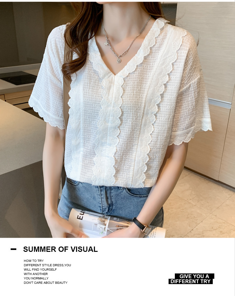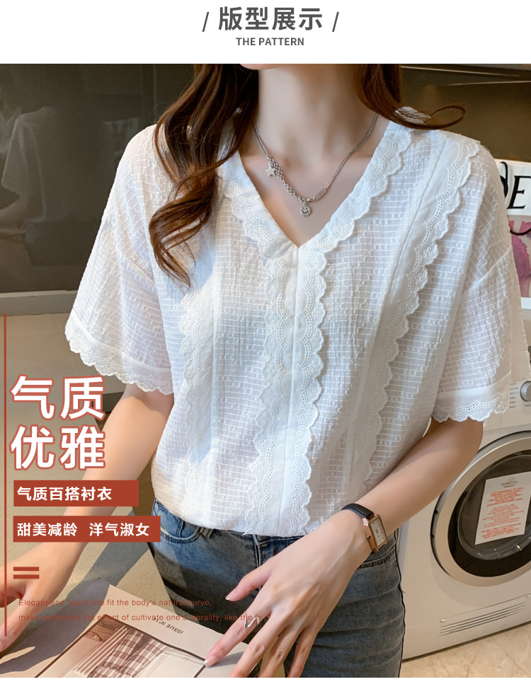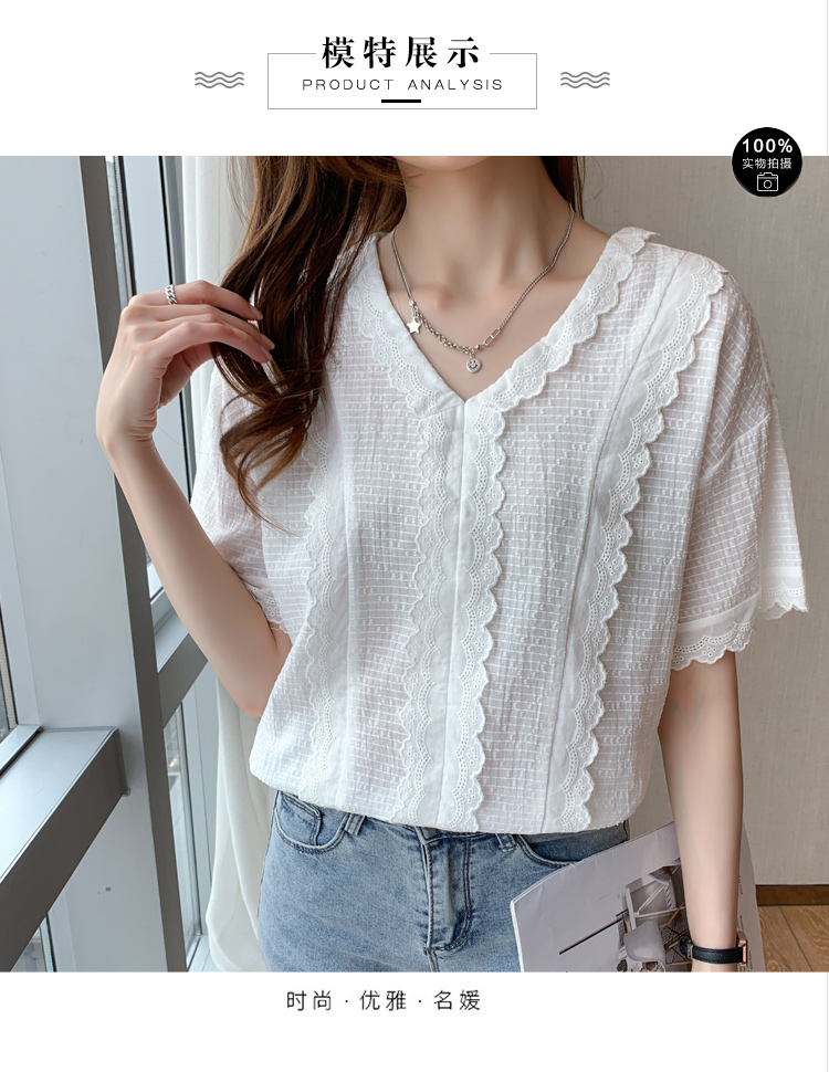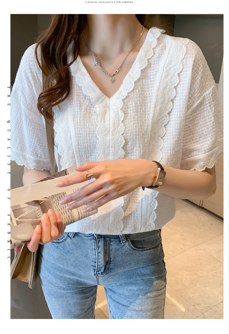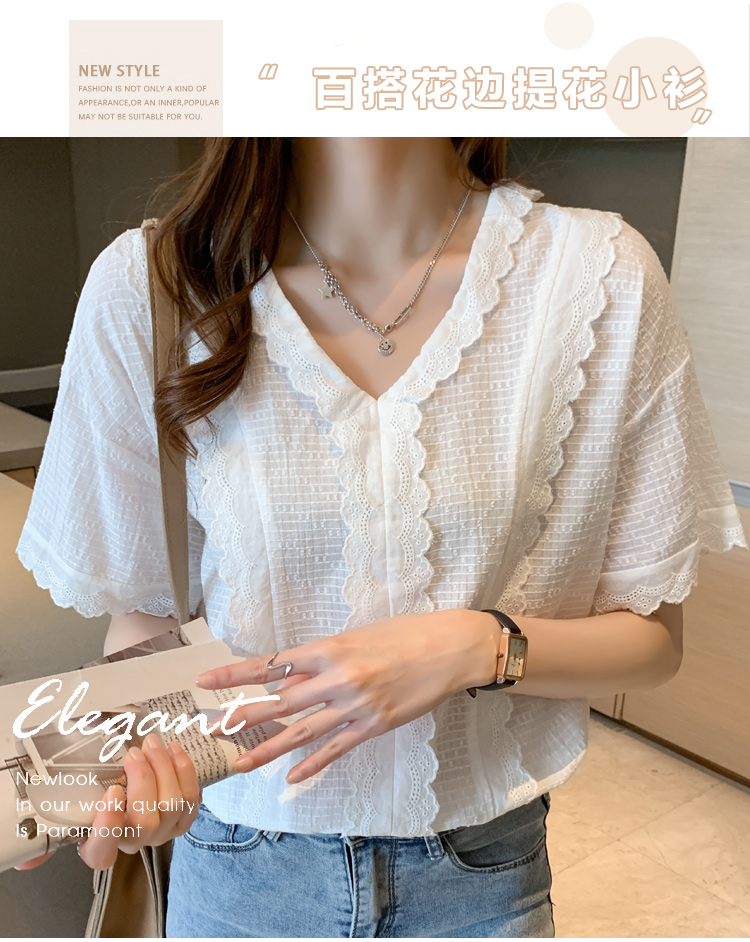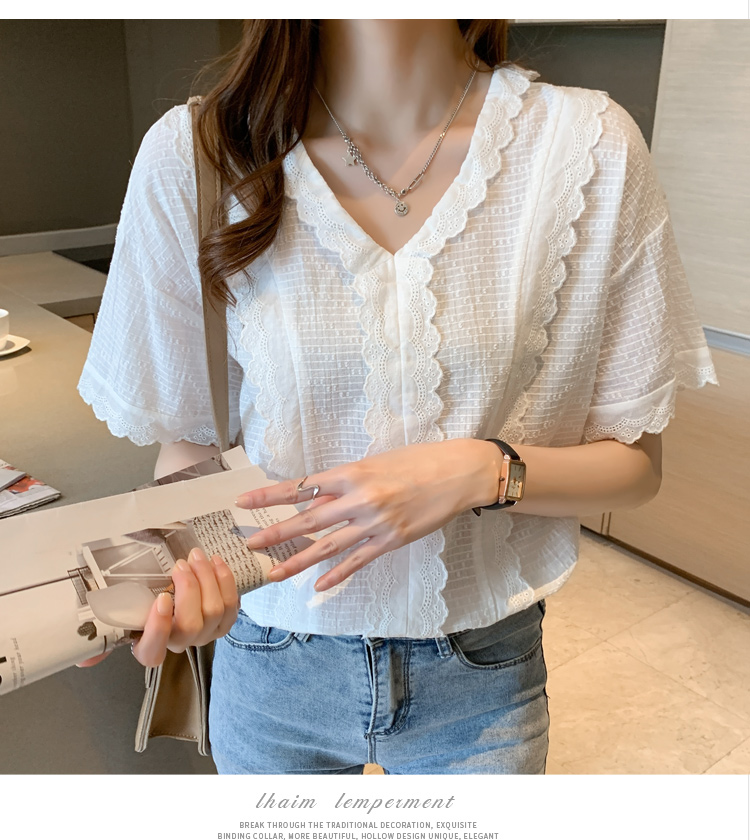 实拍有视频2021夏季新款时尚蕾丝衫小清新小衫上衣短袖女