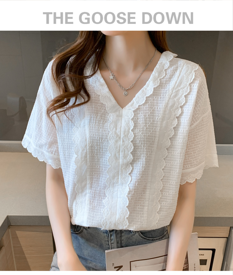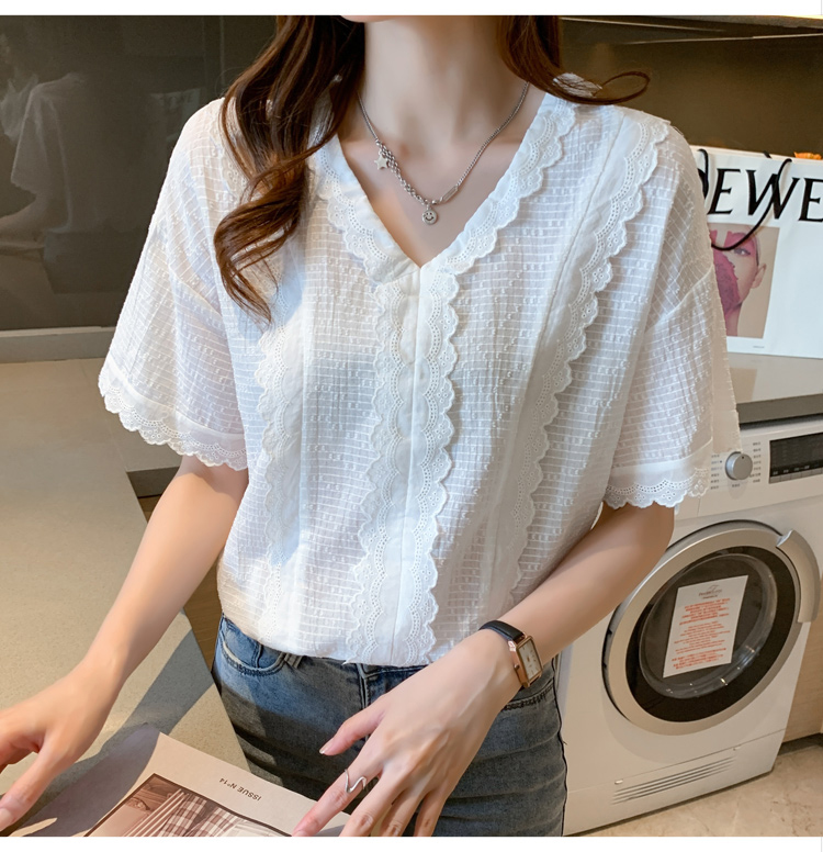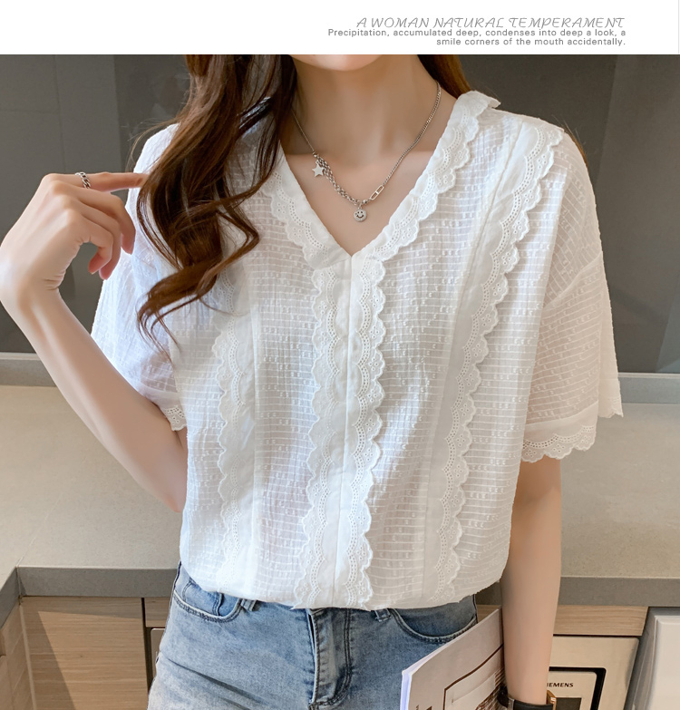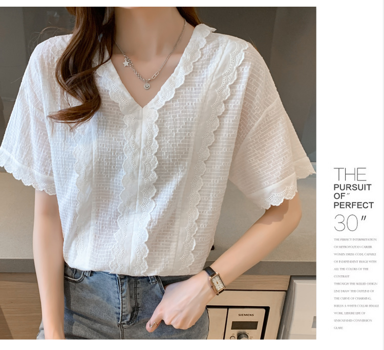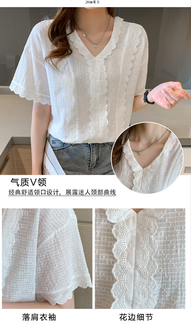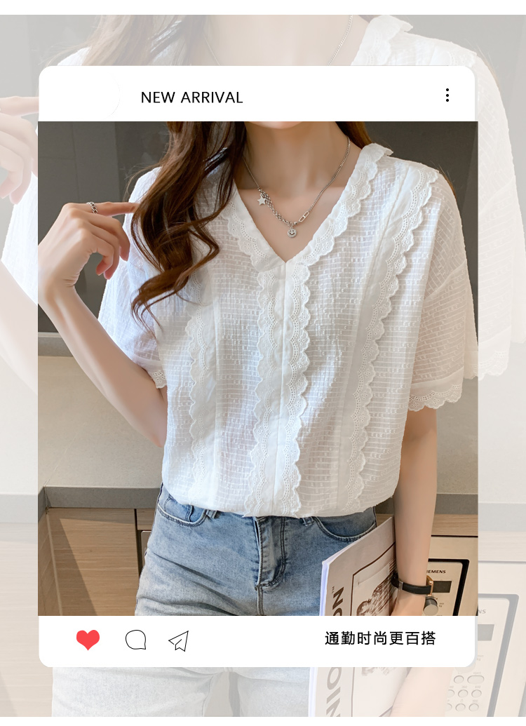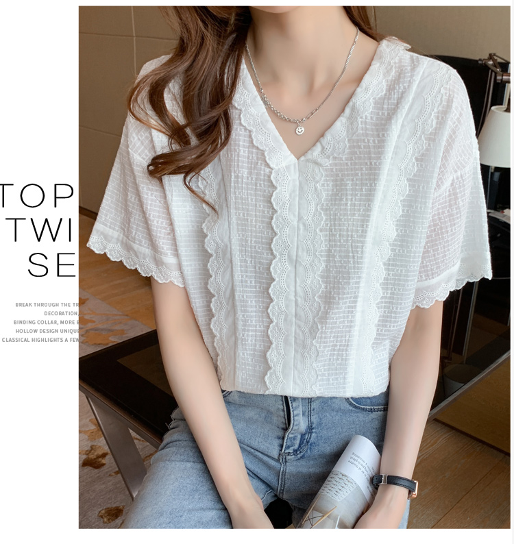 实拍有视频2021夏季新款时尚蕾丝衫小清新小衫上衣短袖女
