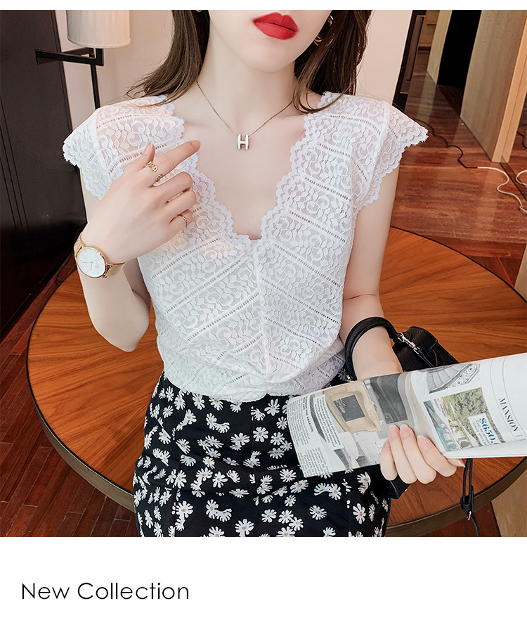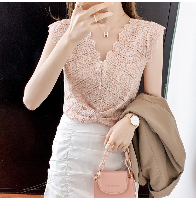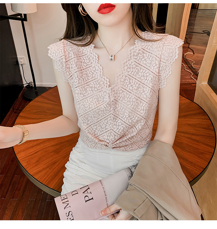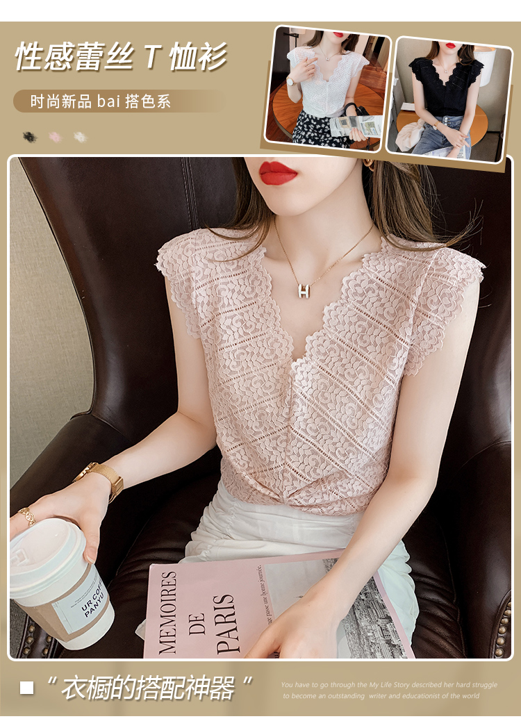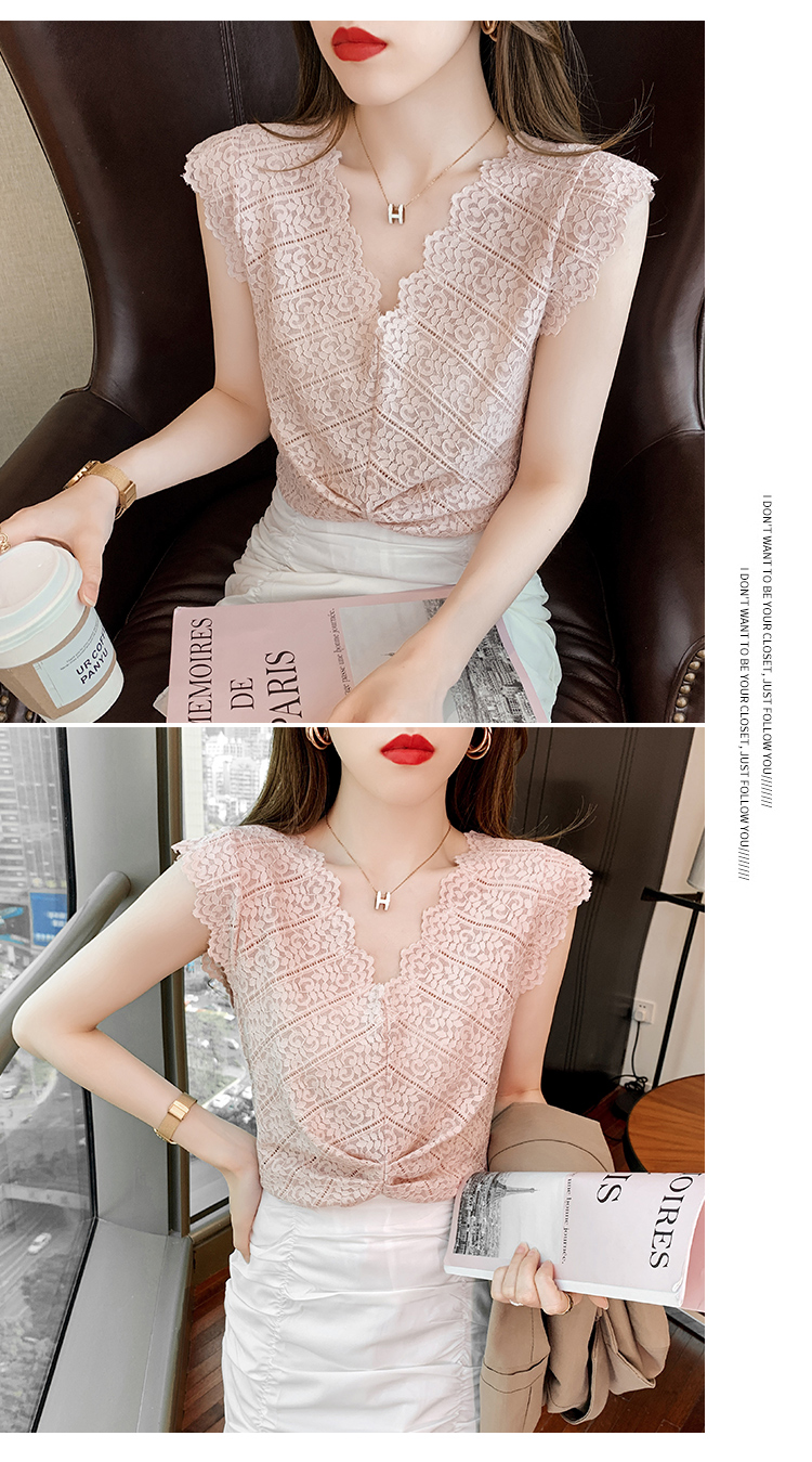 ◆现货◆背心女外穿夏季无袖上衣女设计感洋气v领蕾丝小衫