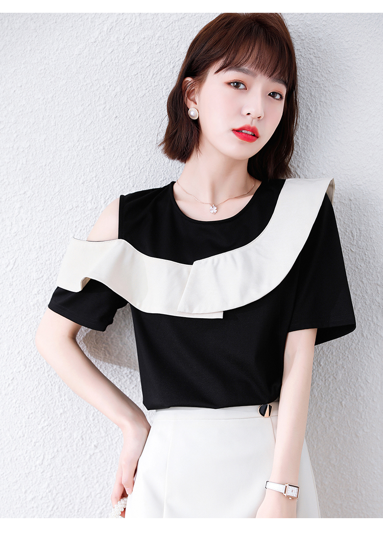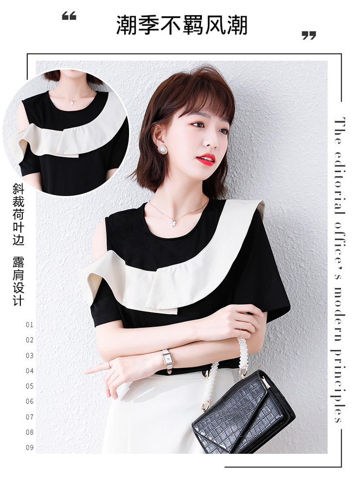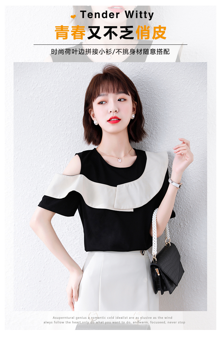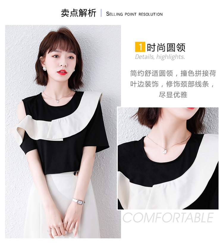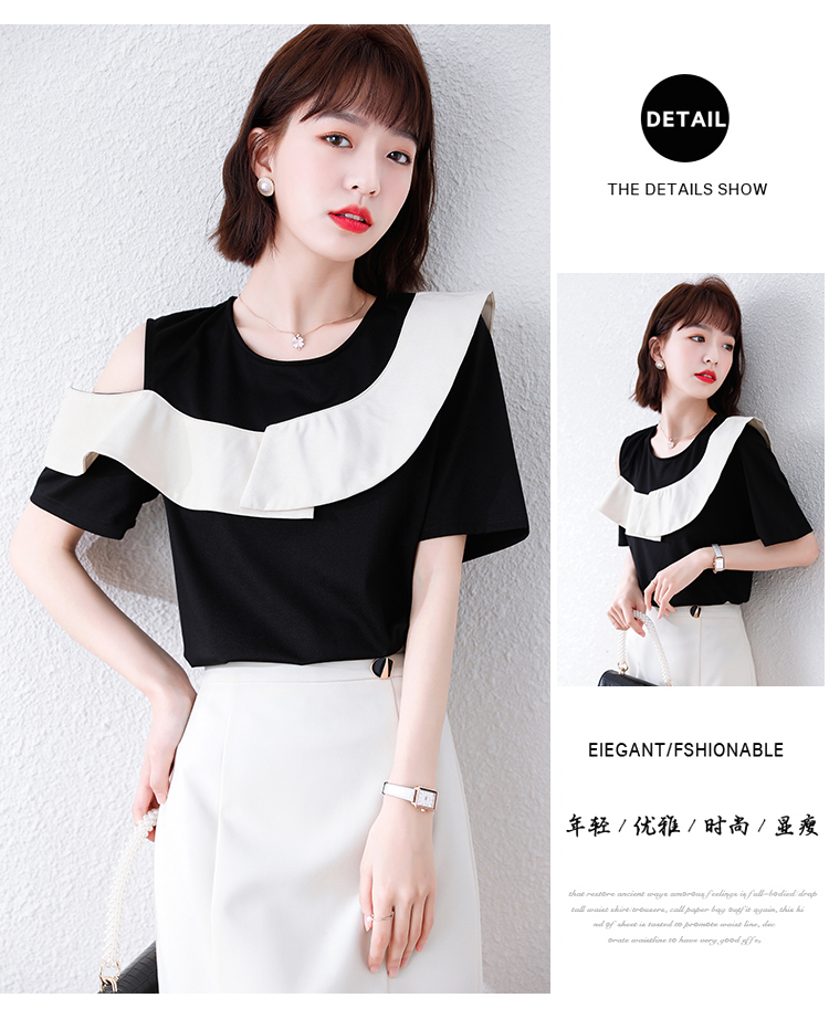 春装2021年新款短款上衣小众心机设计感显瘦不规则短袖t恤女装夏