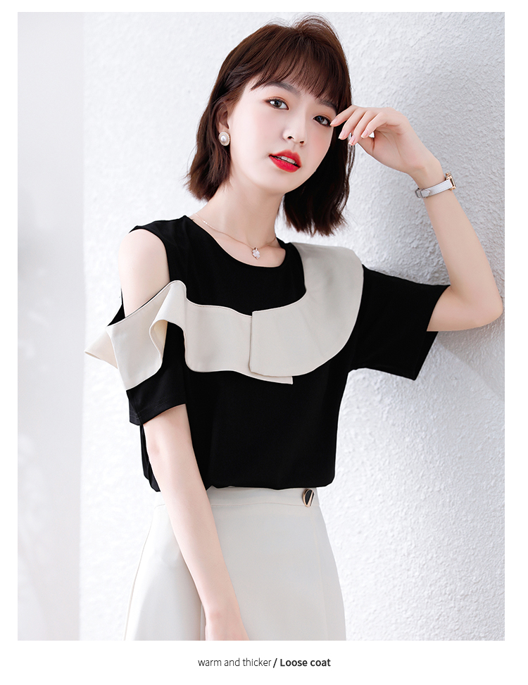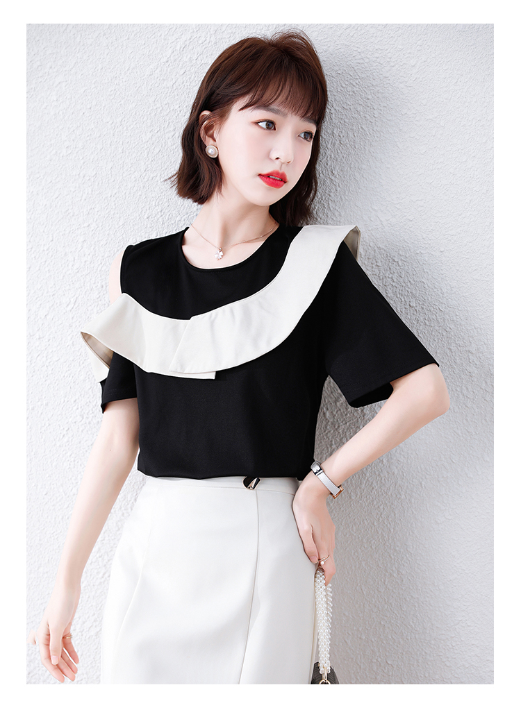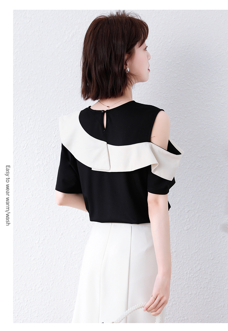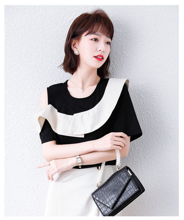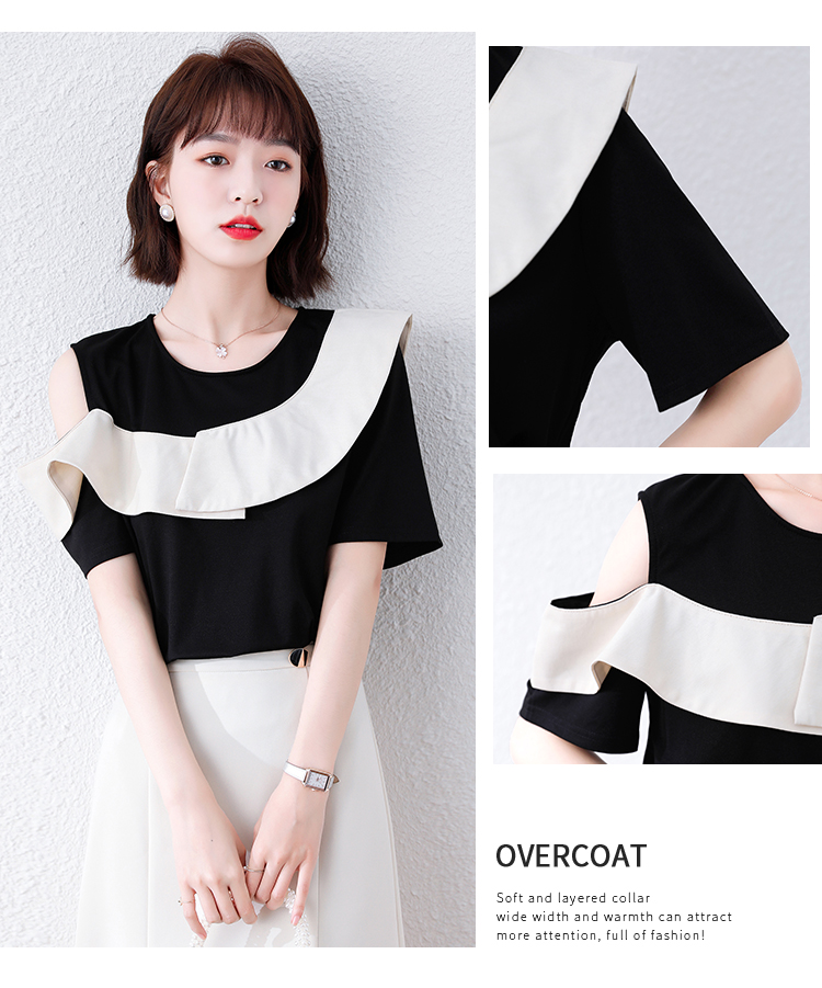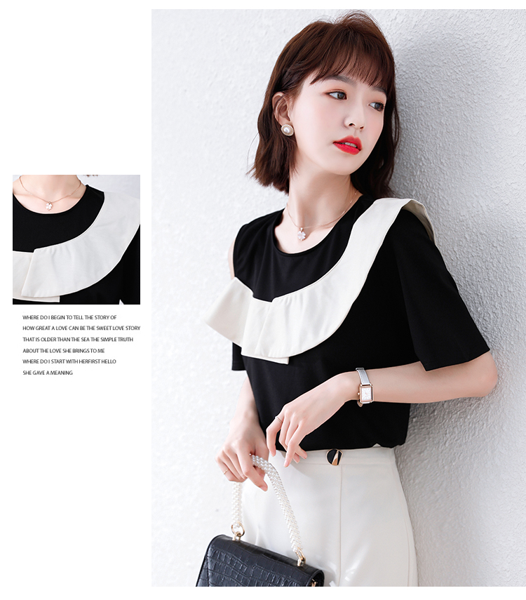 春装2021年新款短款上衣小众心机设计感显瘦不规则短袖t恤女装夏