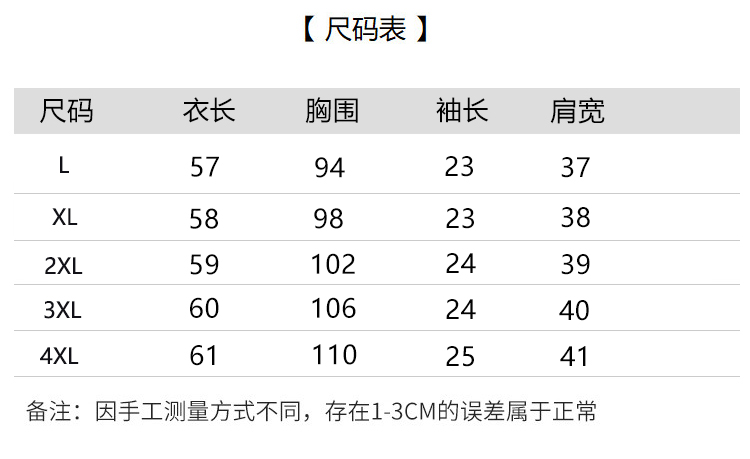 - 尺码:L XL 2XL 3XL 4XL