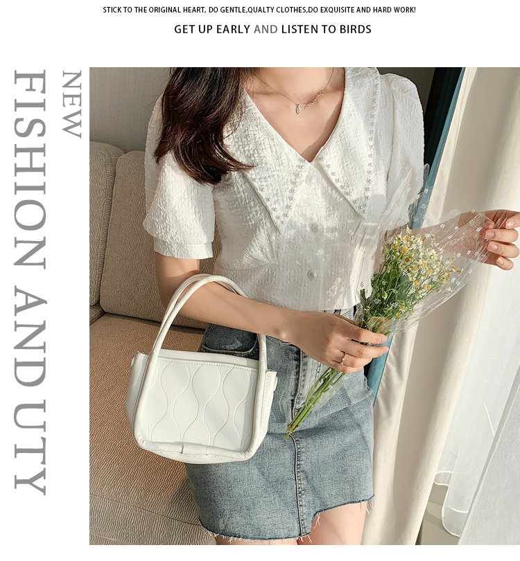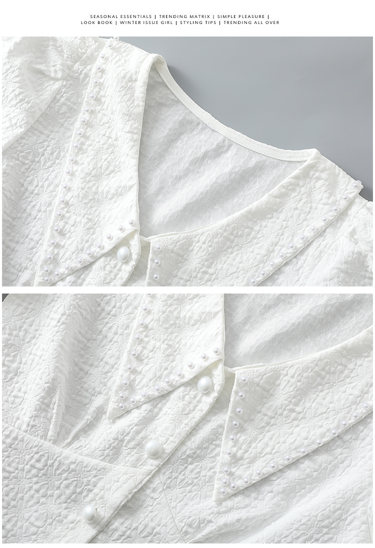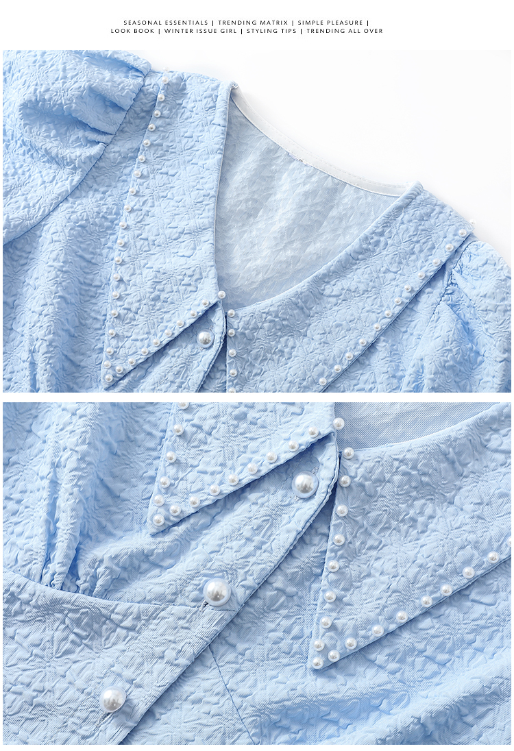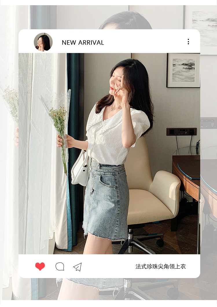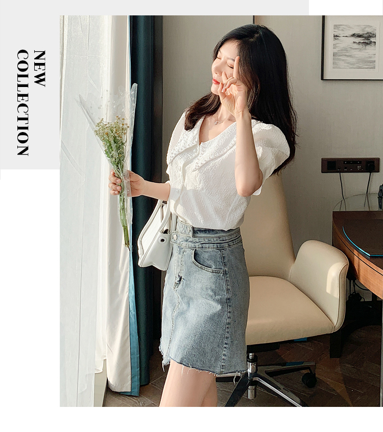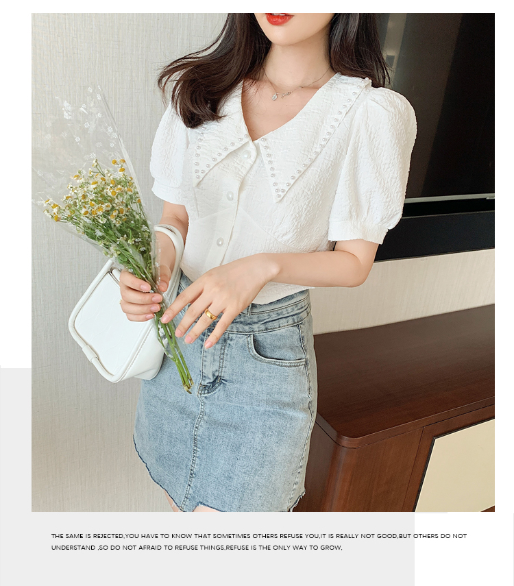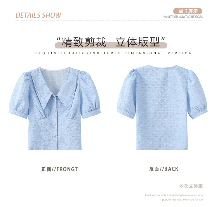 实拍2021夏娃娃领雪纺衫女设计感小众v领甜美减龄泡泡袖上衣