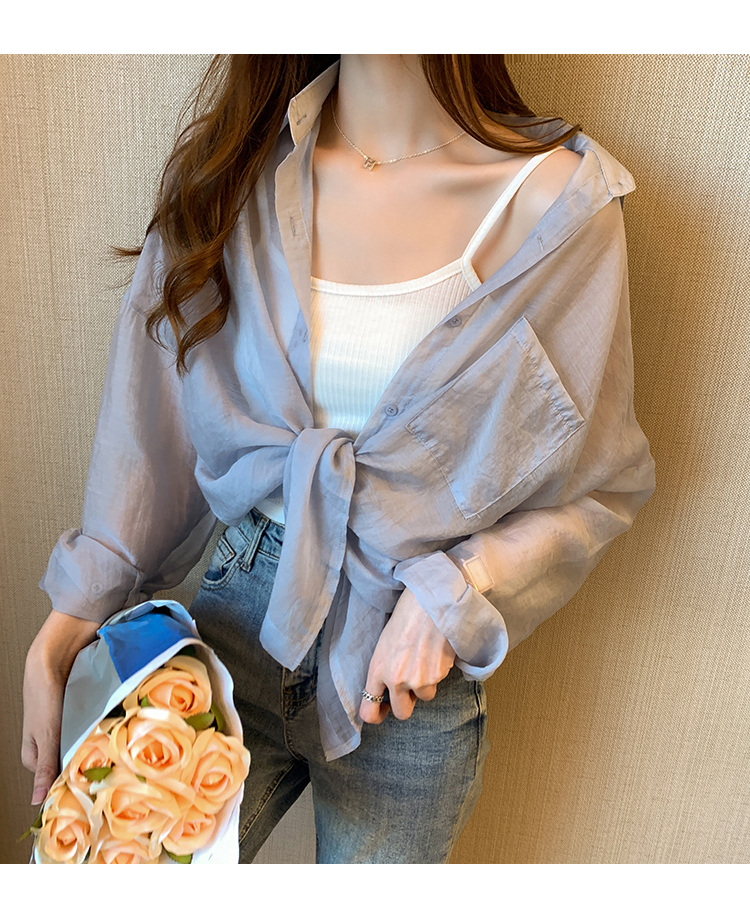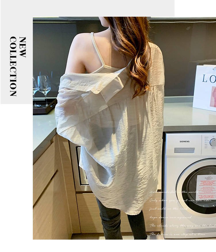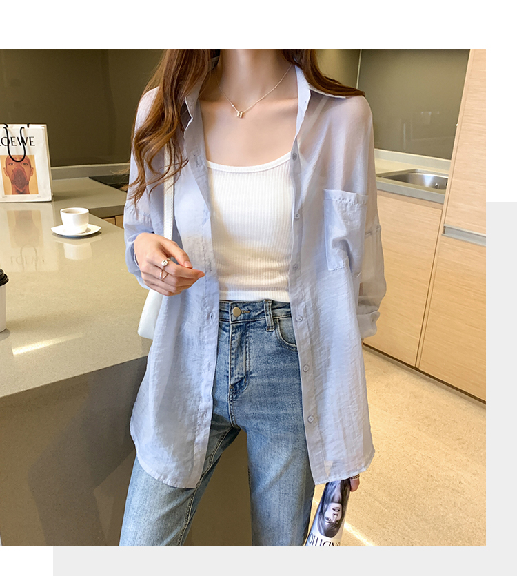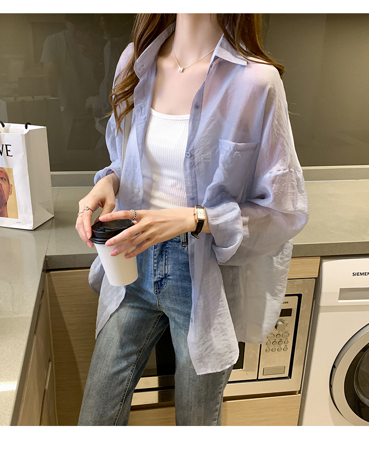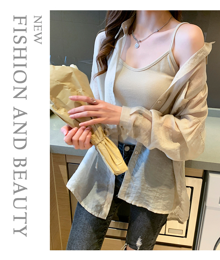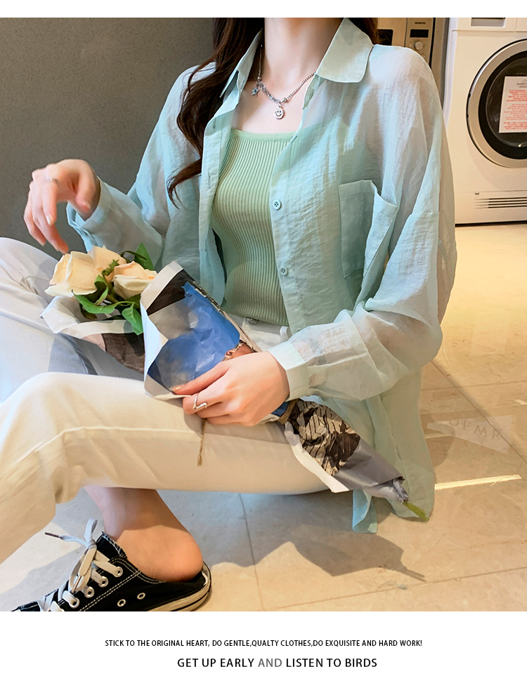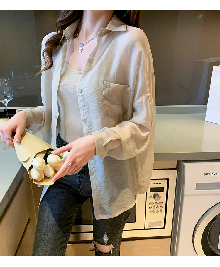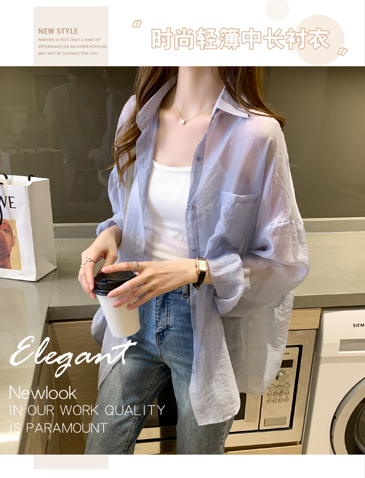实拍夏装新款2021韩版百搭宽松中长款天丝开衫防晒外套女户外外搭