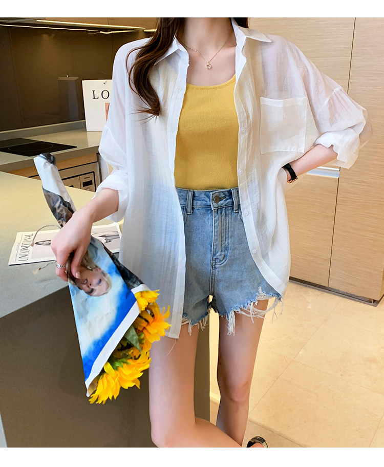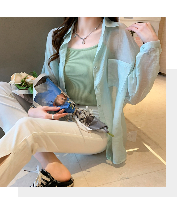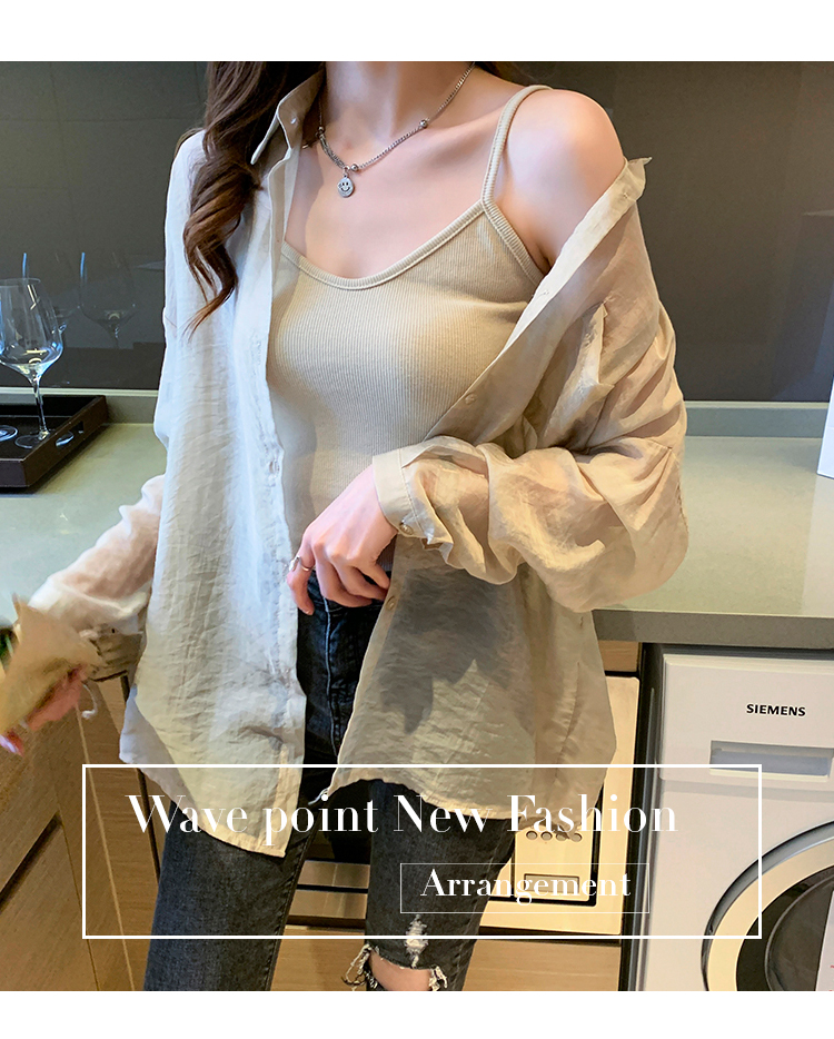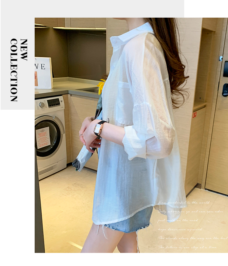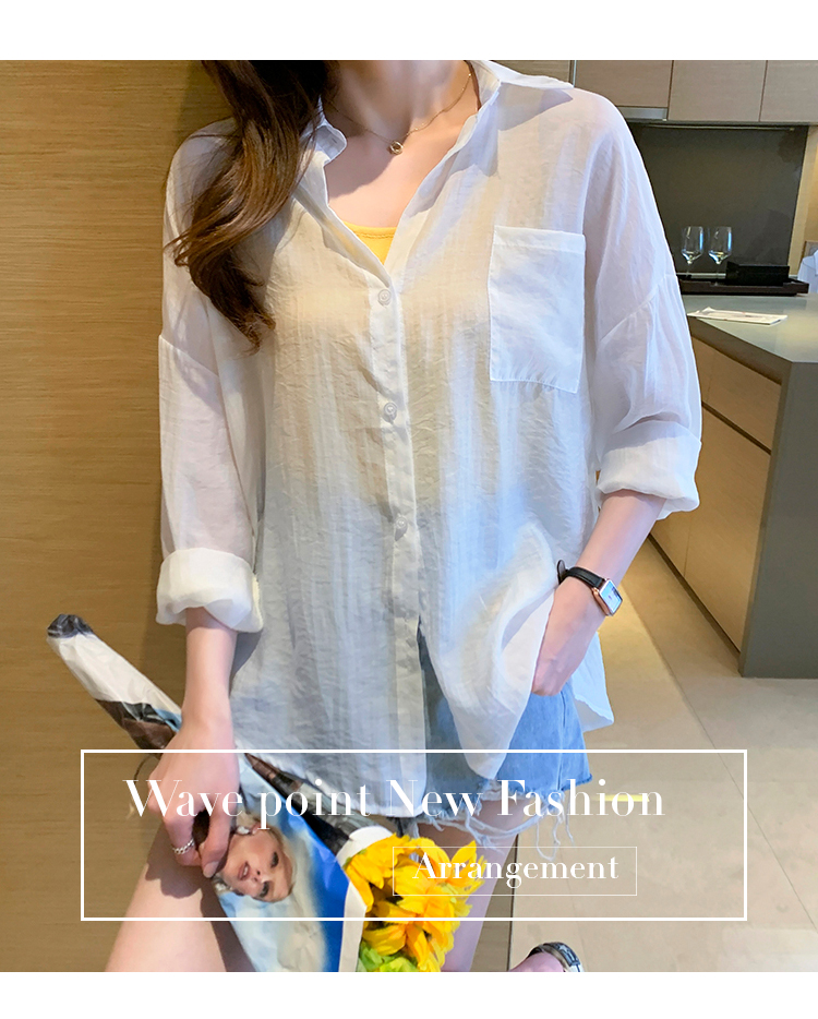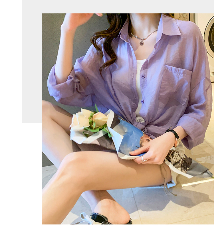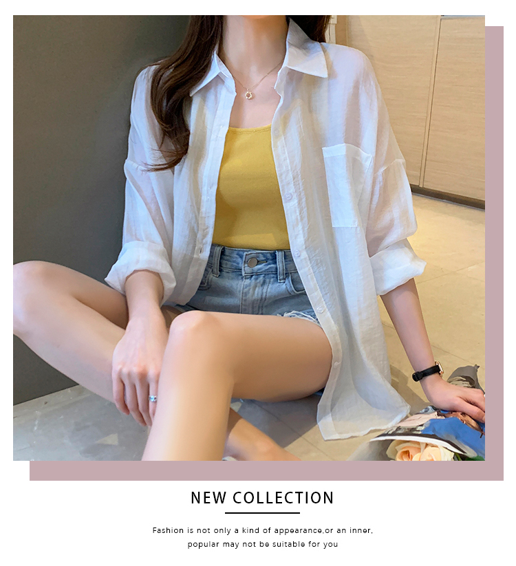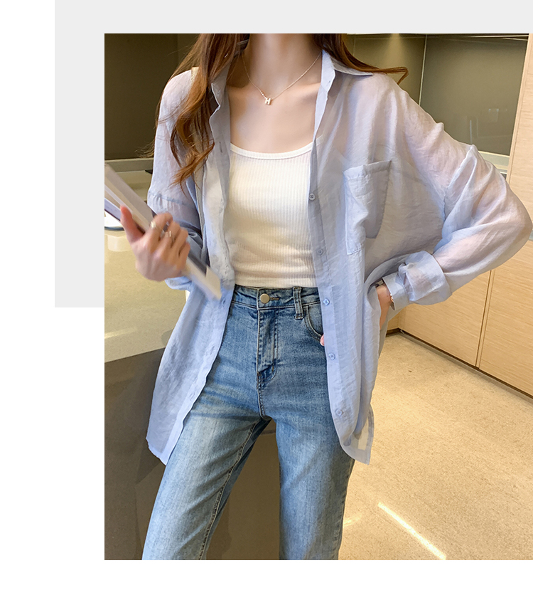 实拍夏装新款2021韩版百搭宽松中长款天丝开衫防晒外套女户外外搭