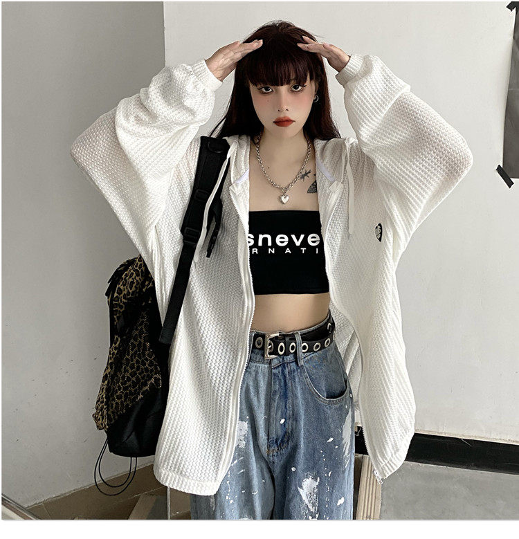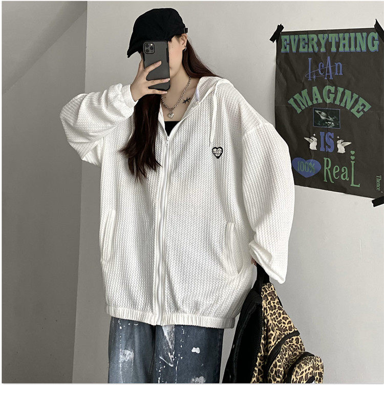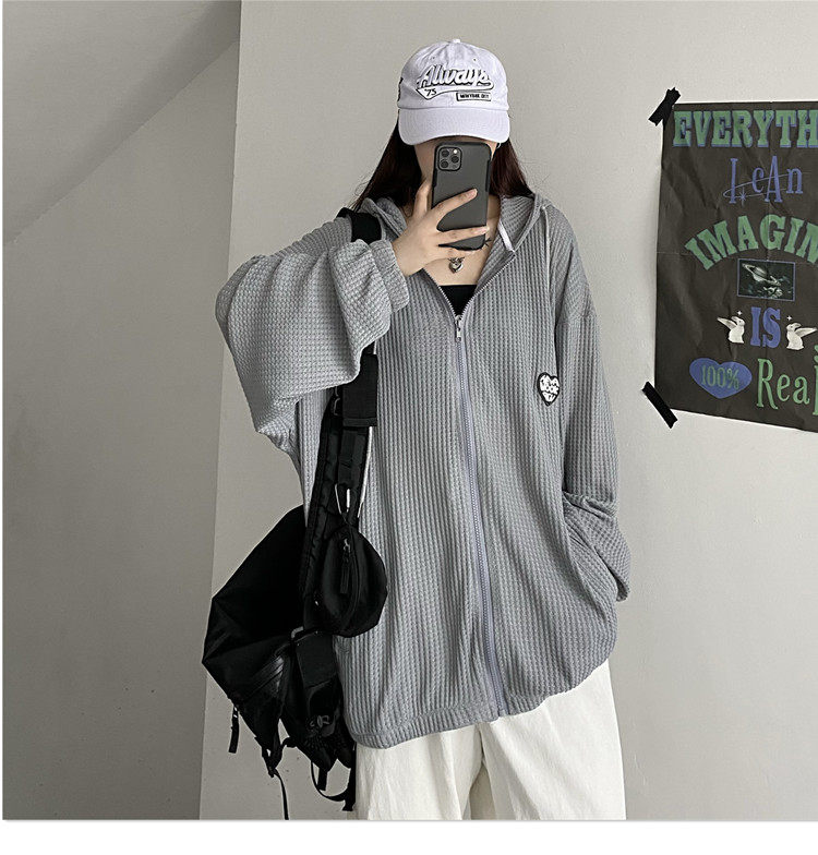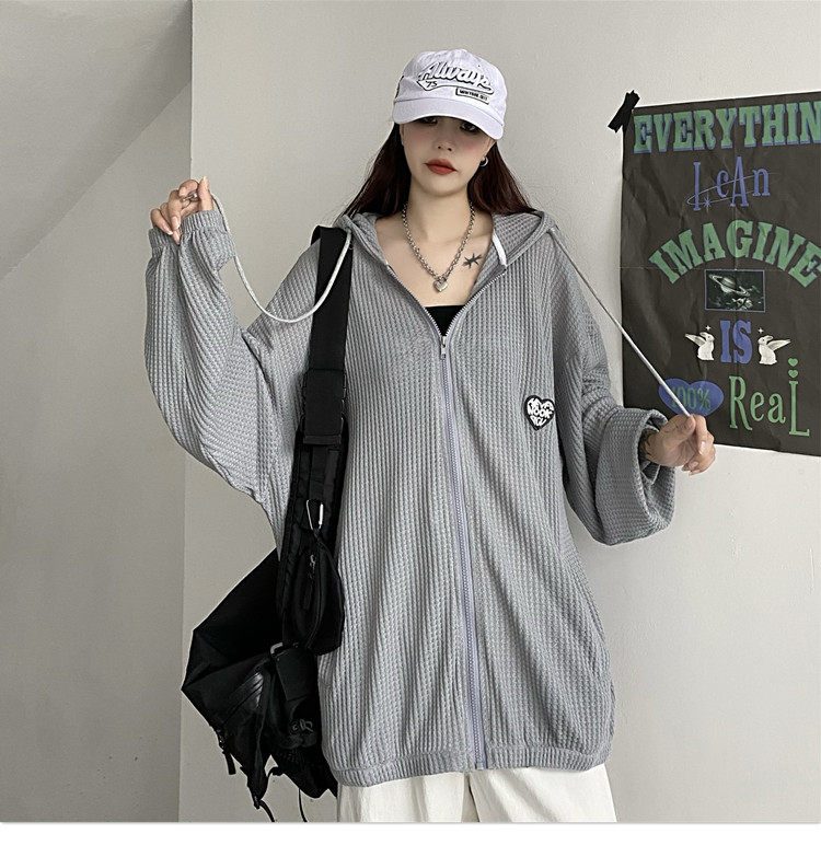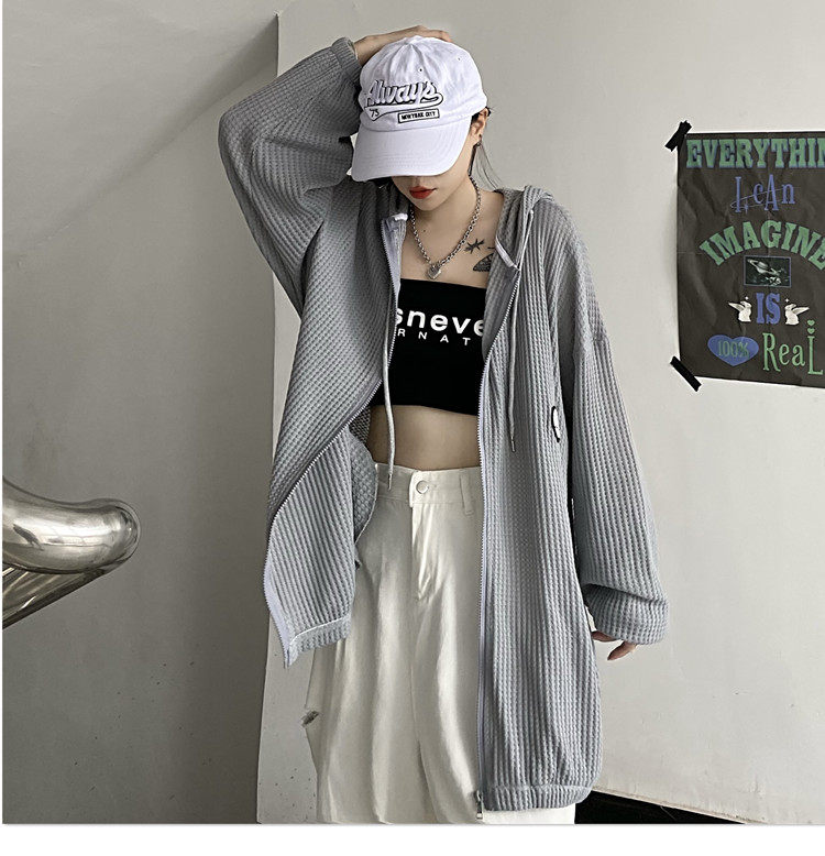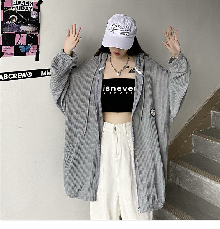 实拍#华夫格防晒衣女2021夏新款宽松长袖外套oversize空调衫ins潮