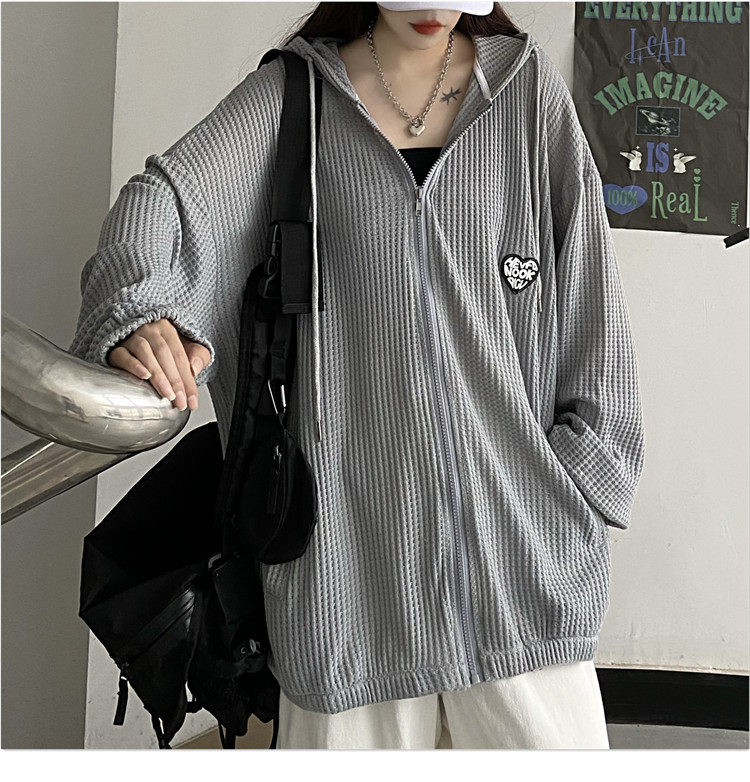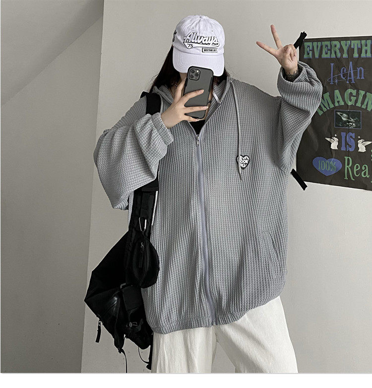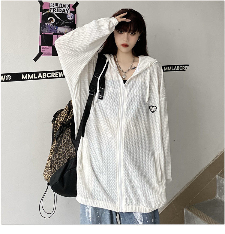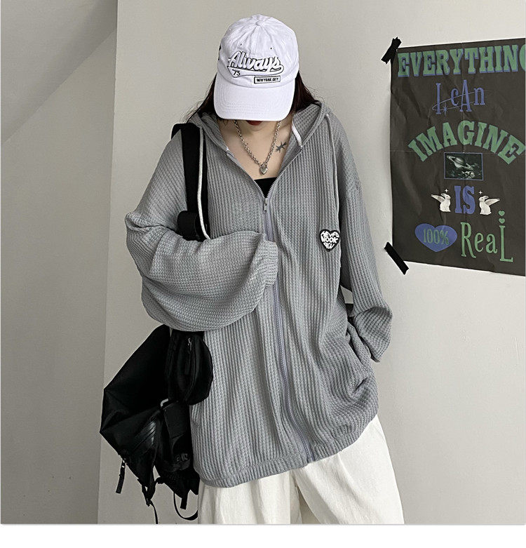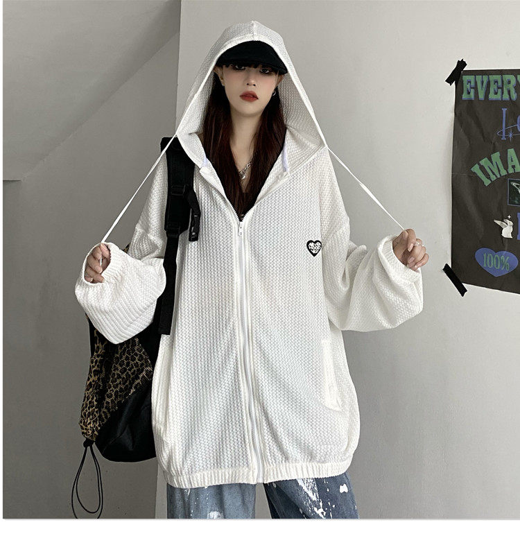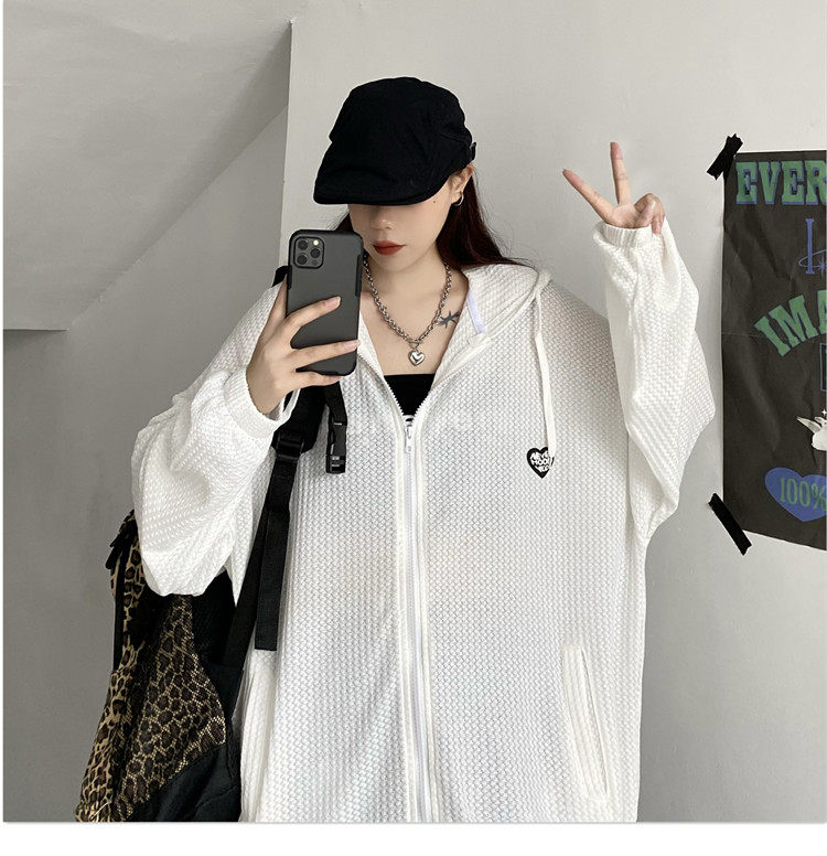 实拍#华夫格防晒衣女2021夏新款宽松长袖外套oversize空调衫ins潮