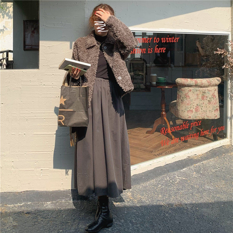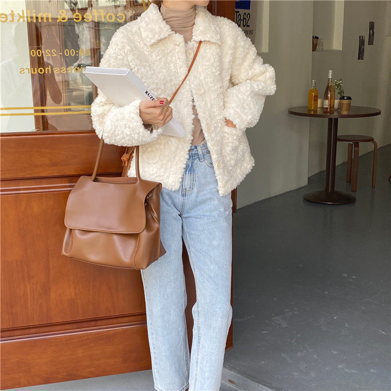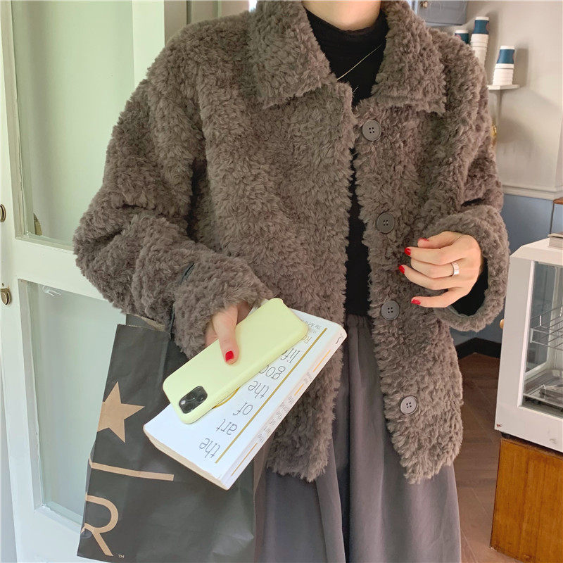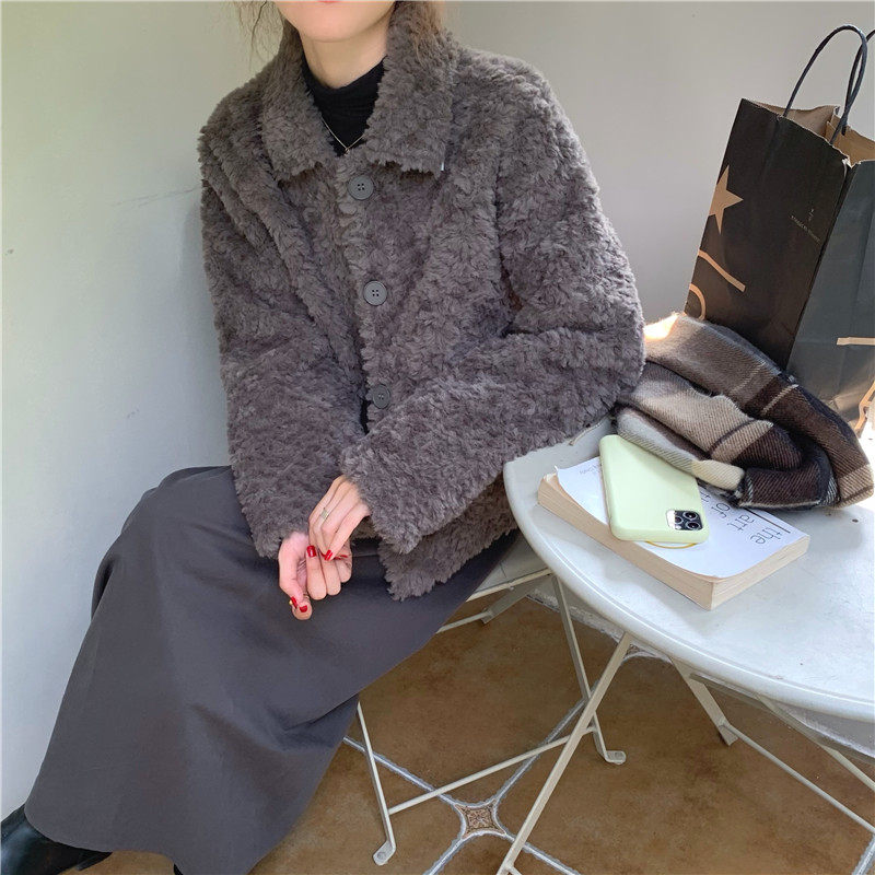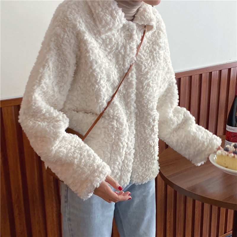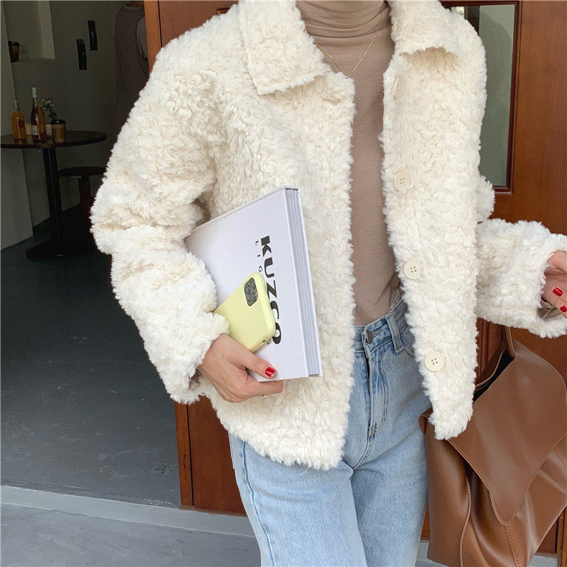 实拍实价 仿皮毛一体超厚实iins风韩版短款外套 2色现货