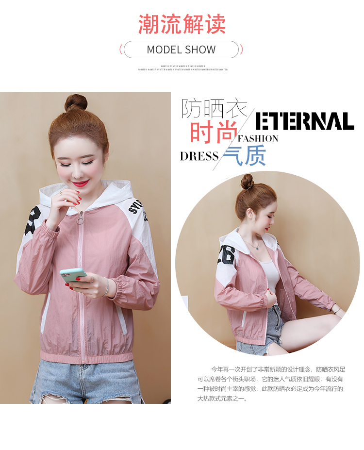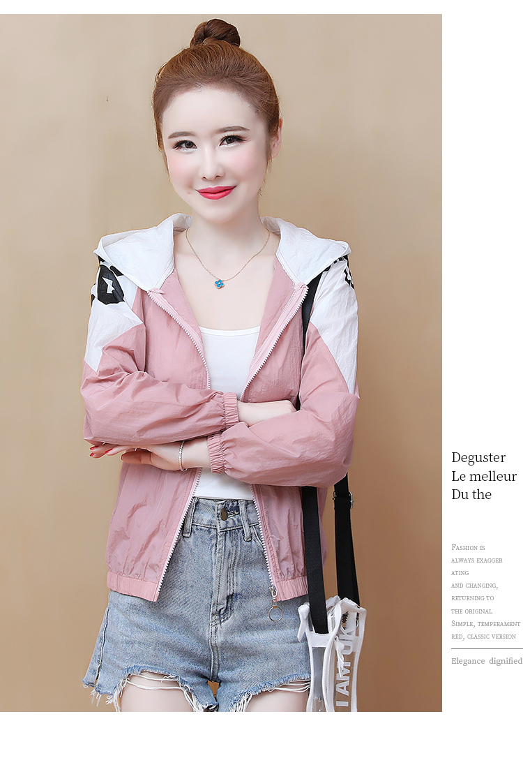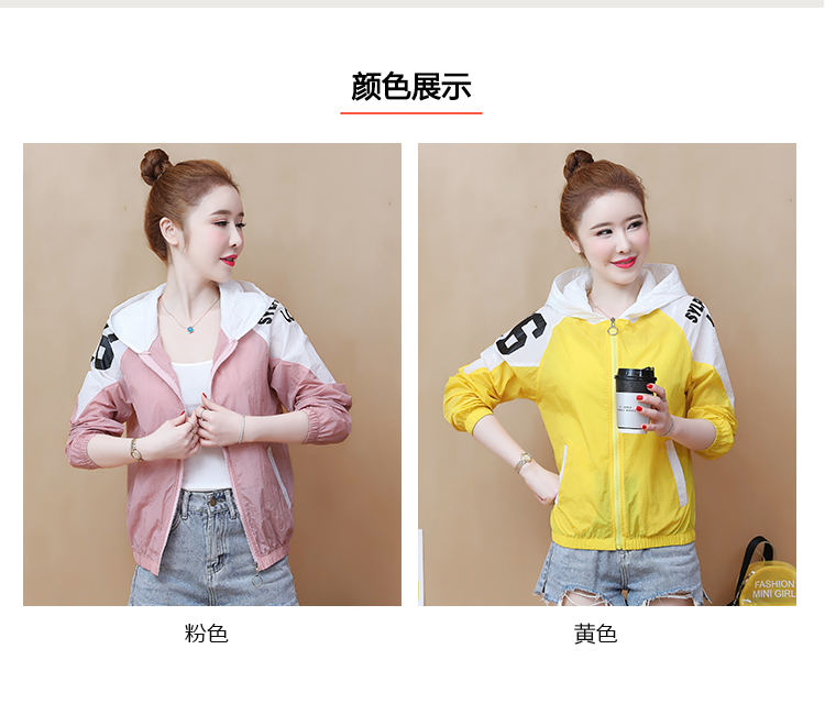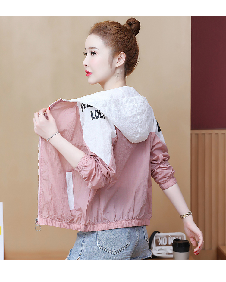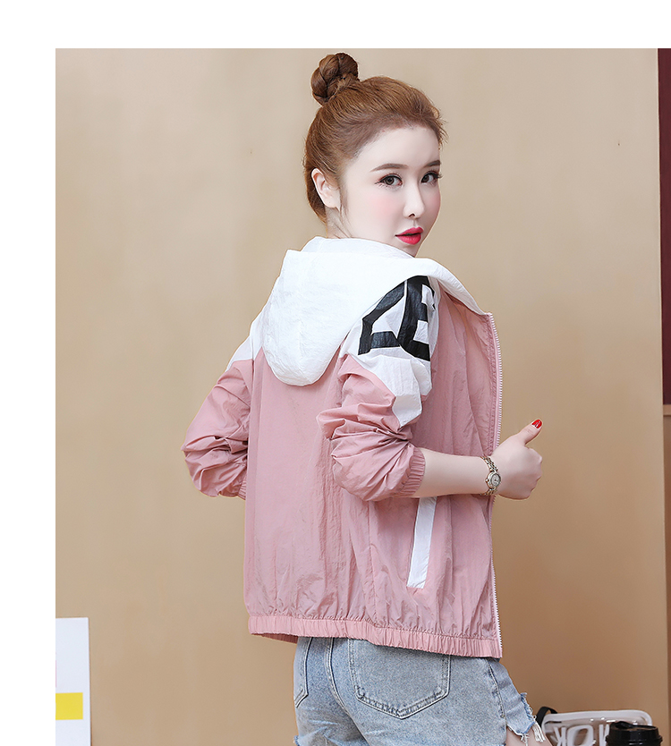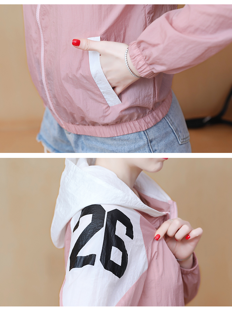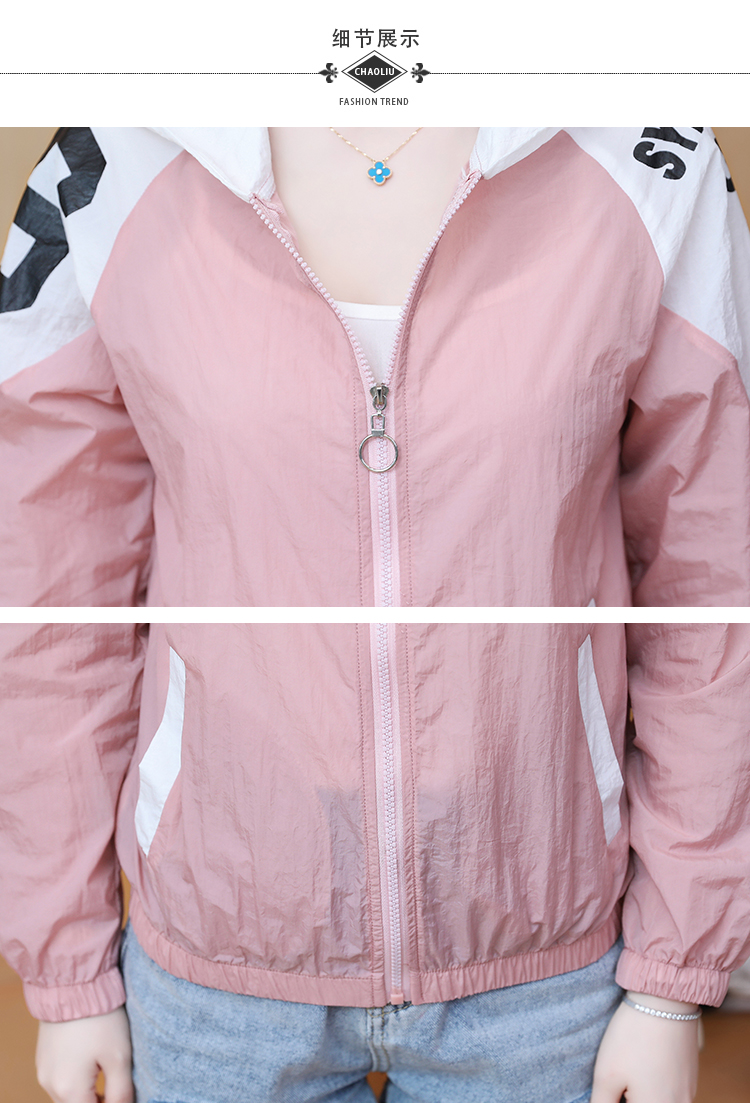 实拍2021带帽防晒衣女拼色新款夏宽松防晒衫百搭防嗮服薄外套