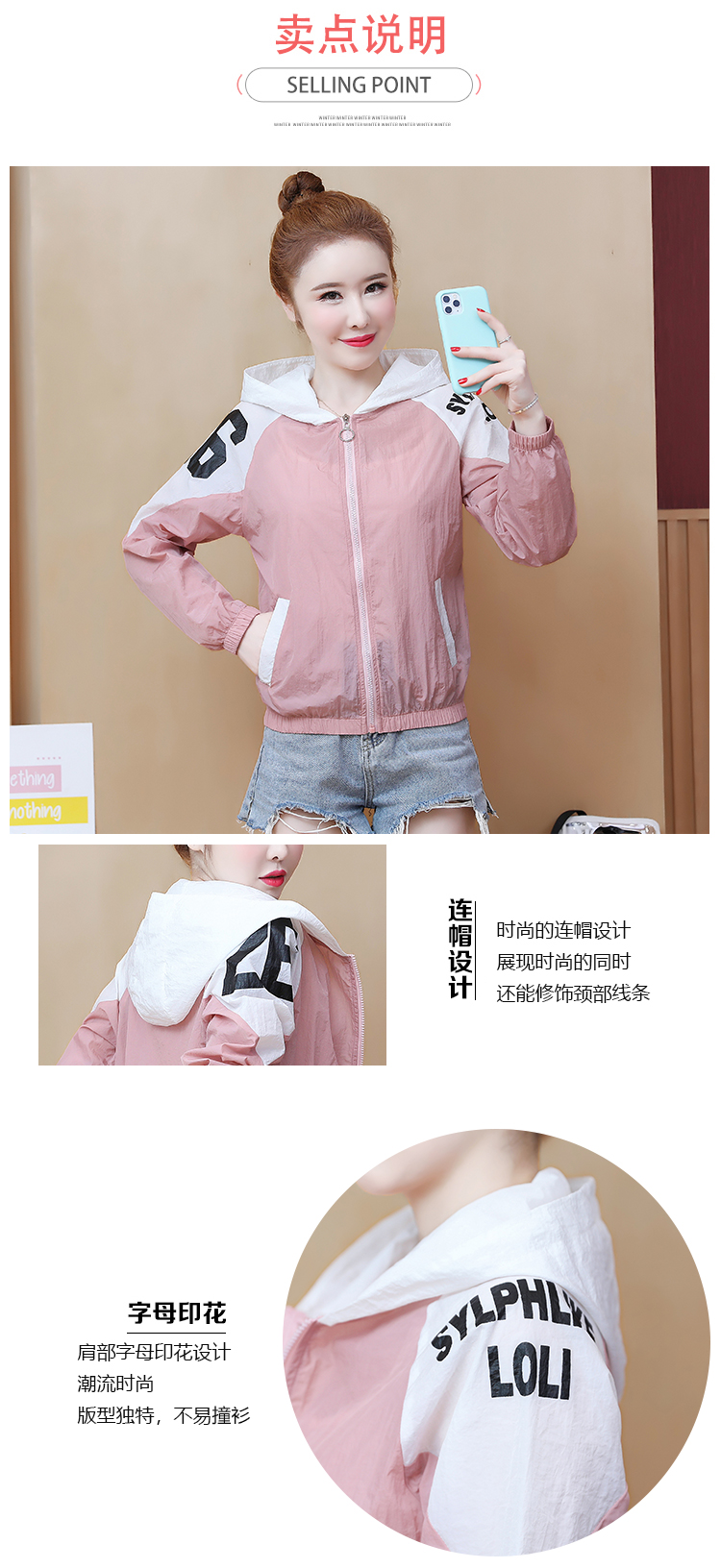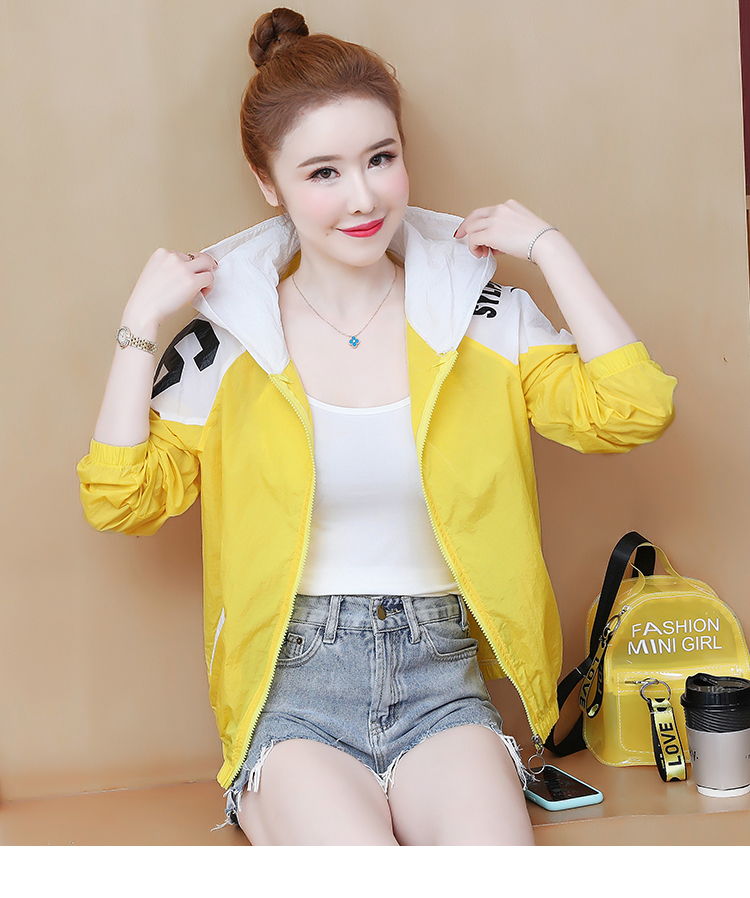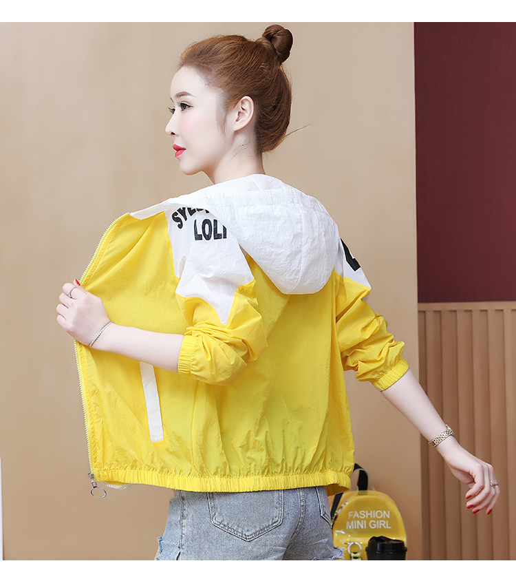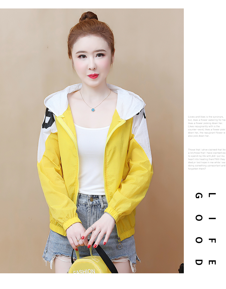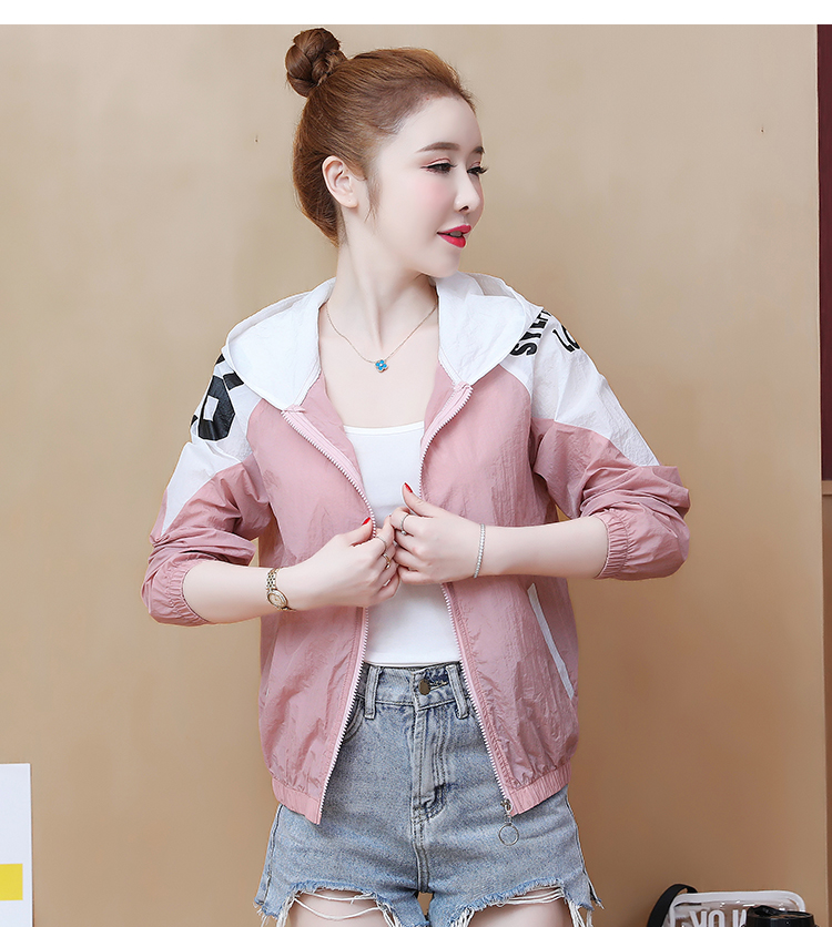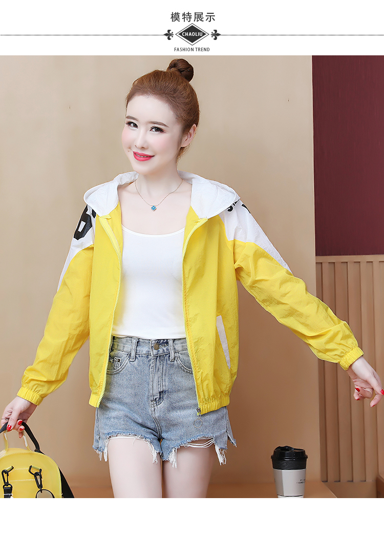 实拍2021带帽防晒衣女拼色新款夏宽松防晒衫百搭防嗮服薄外套
