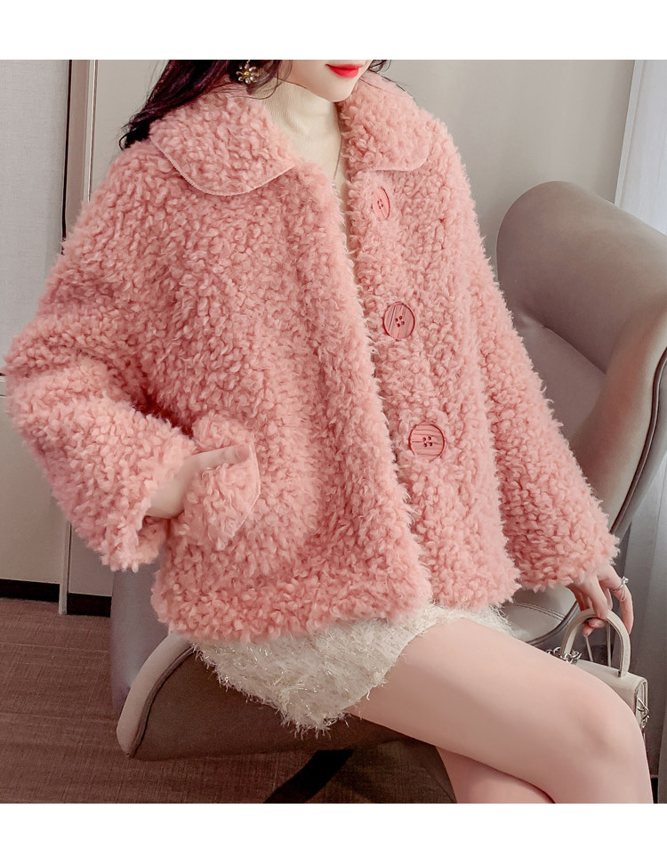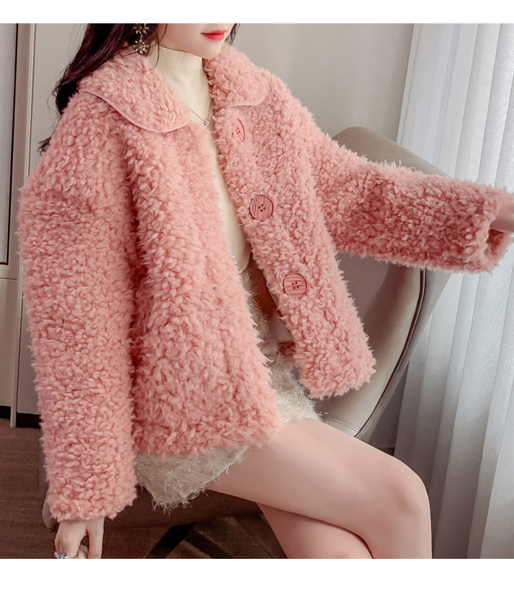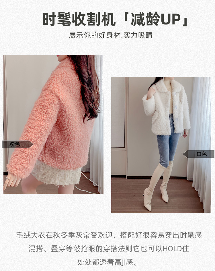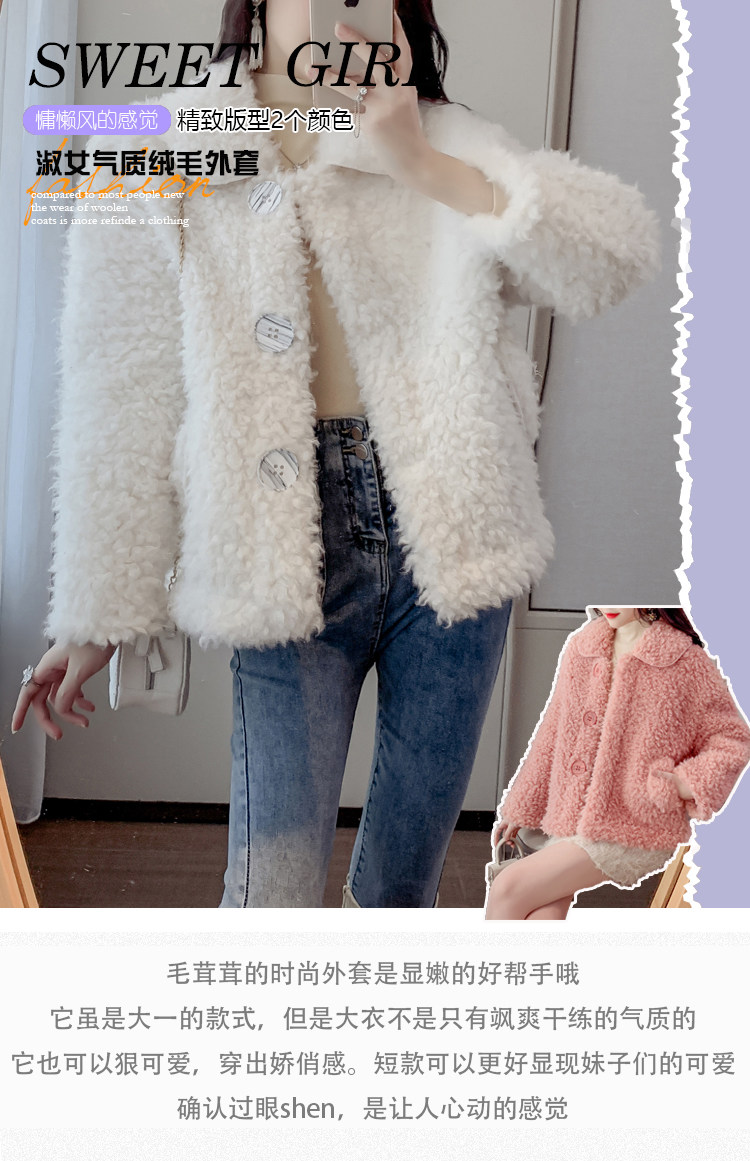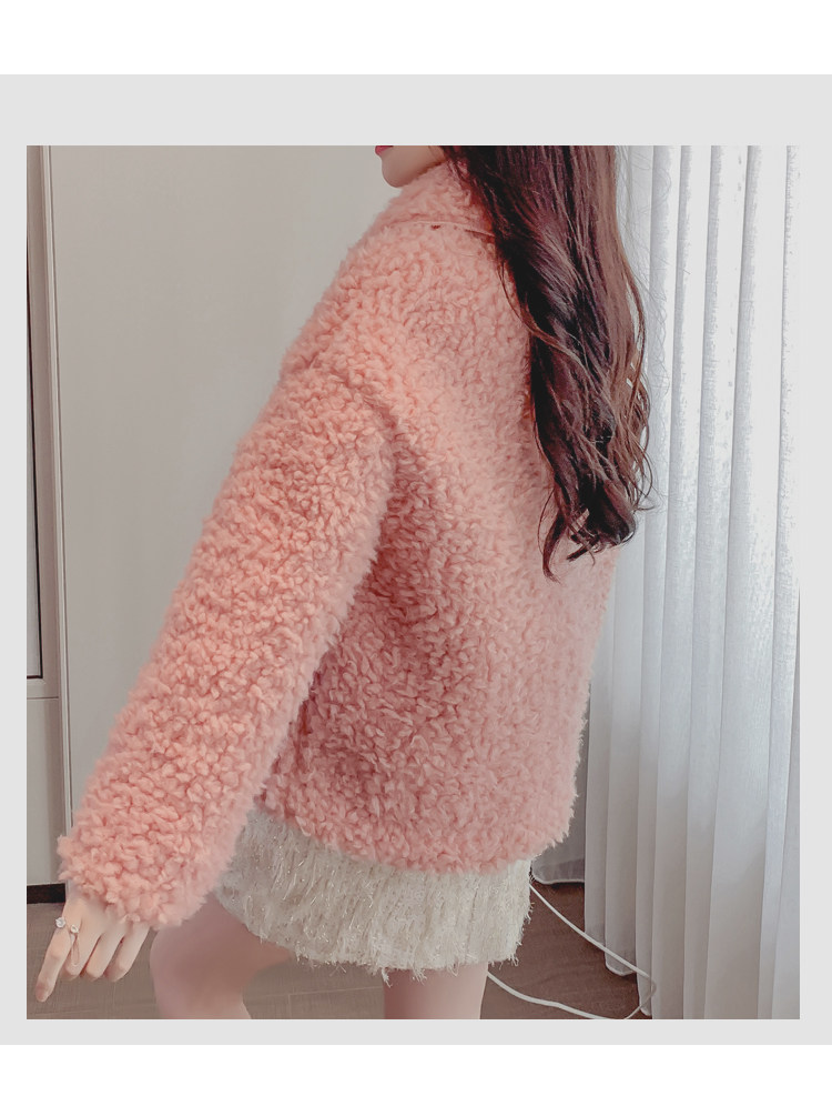 2020秋冬新款羊羔毛加绒外套女短款宽松羊剪绒大衣皮毛一体上衣