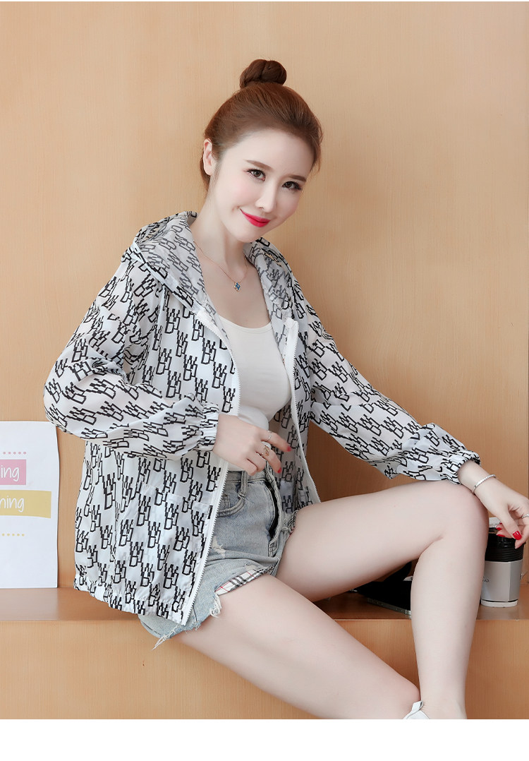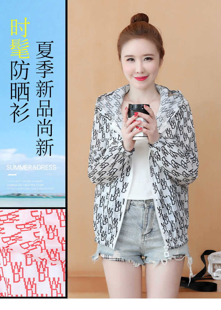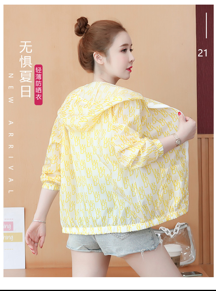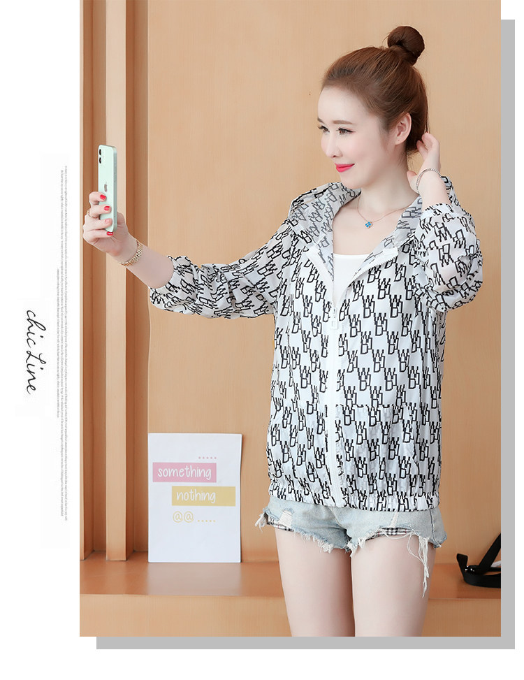 实拍字母防晒衣女2021夏季新款韩版长袖薄款连帽宽松外套女上衣
