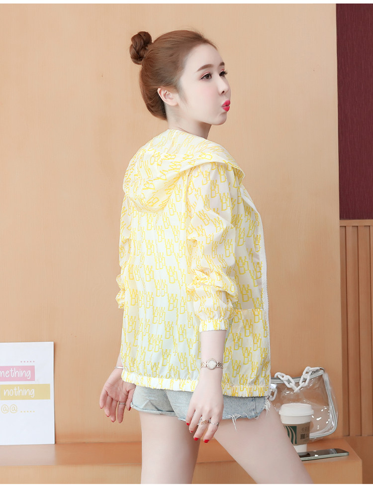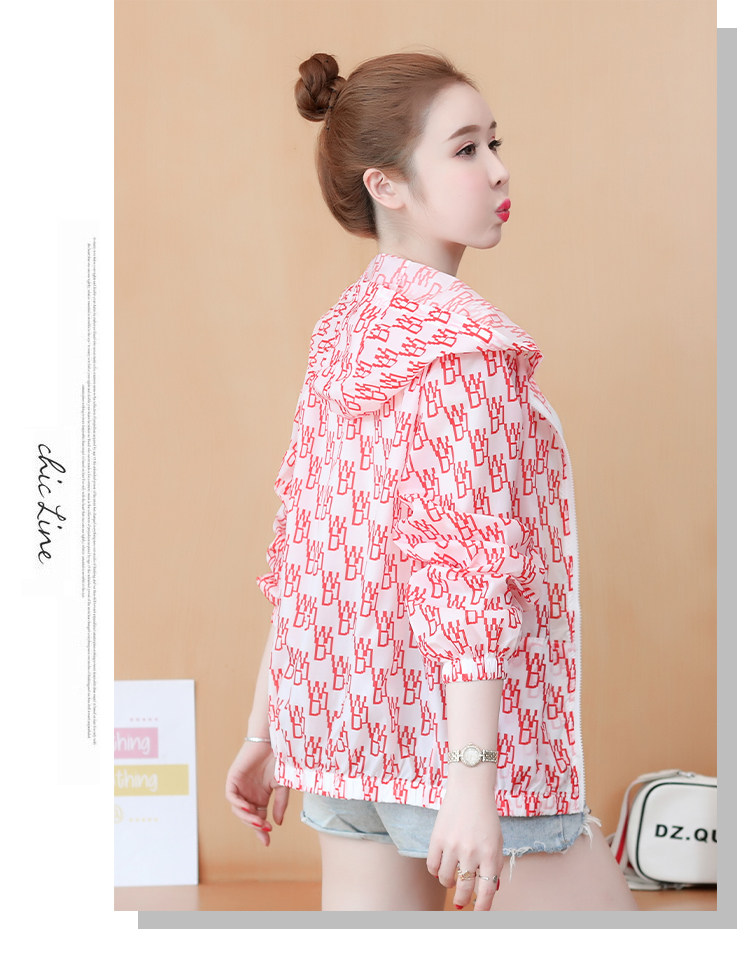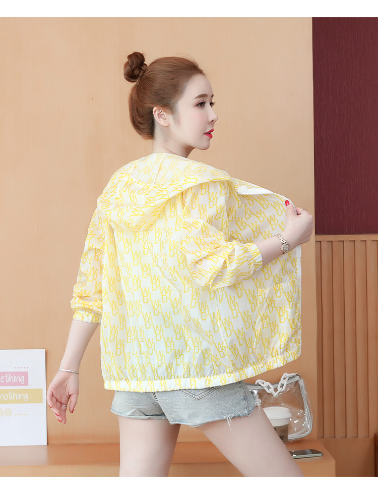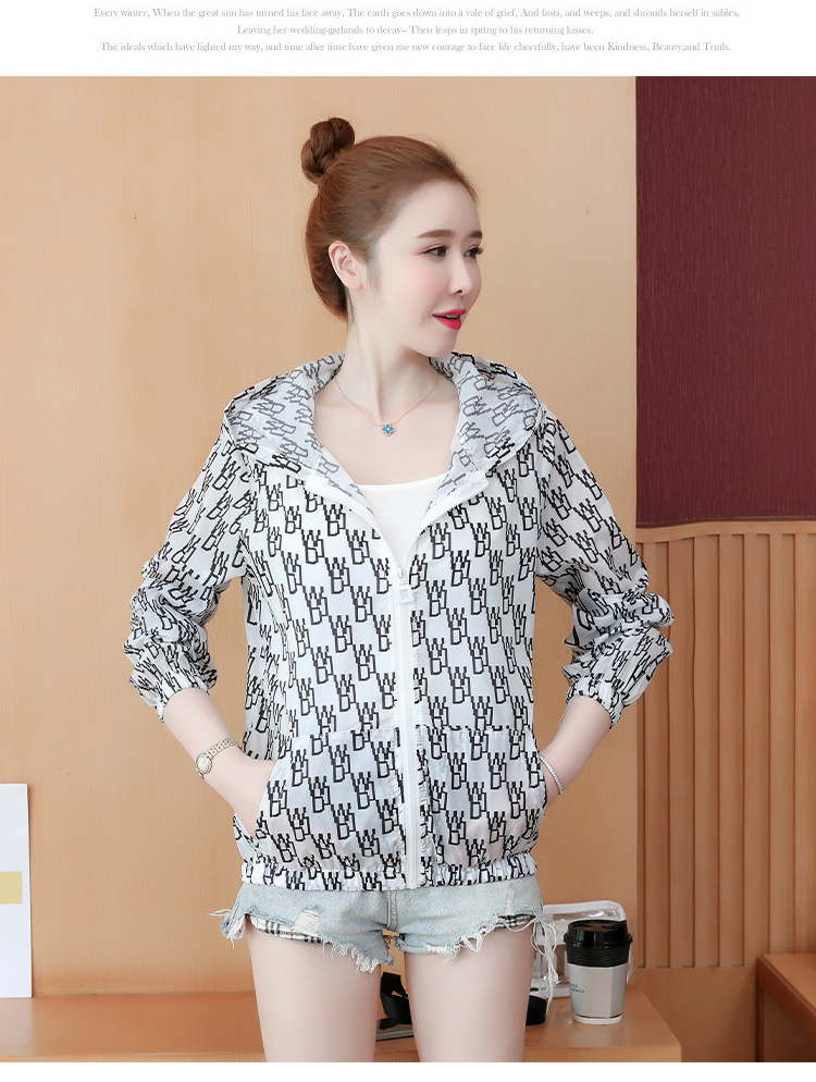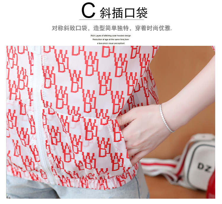 实拍字母防晒衣女2021夏季新款韩版长袖薄款连帽宽松外套女上衣