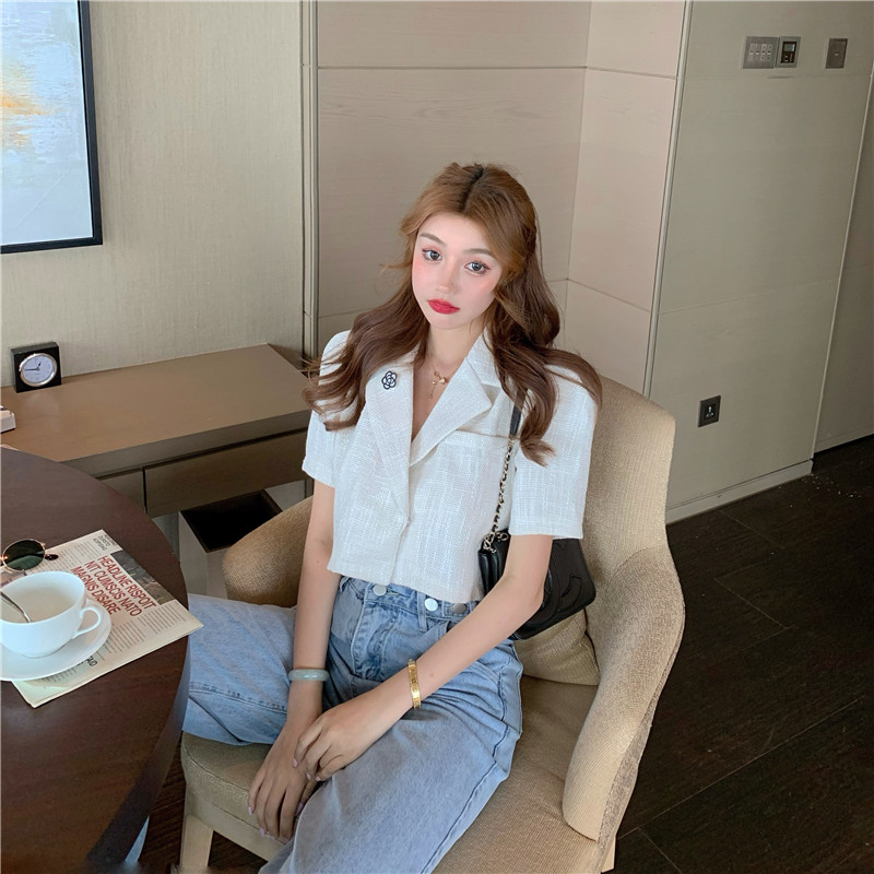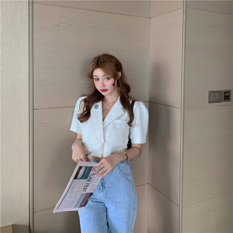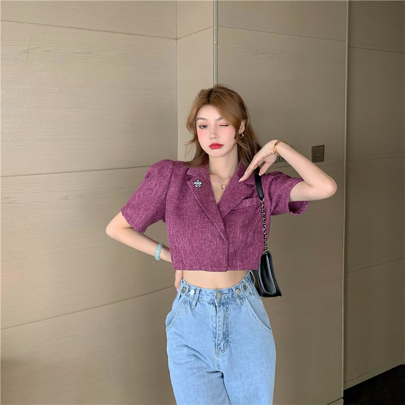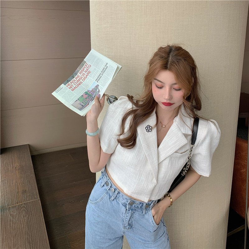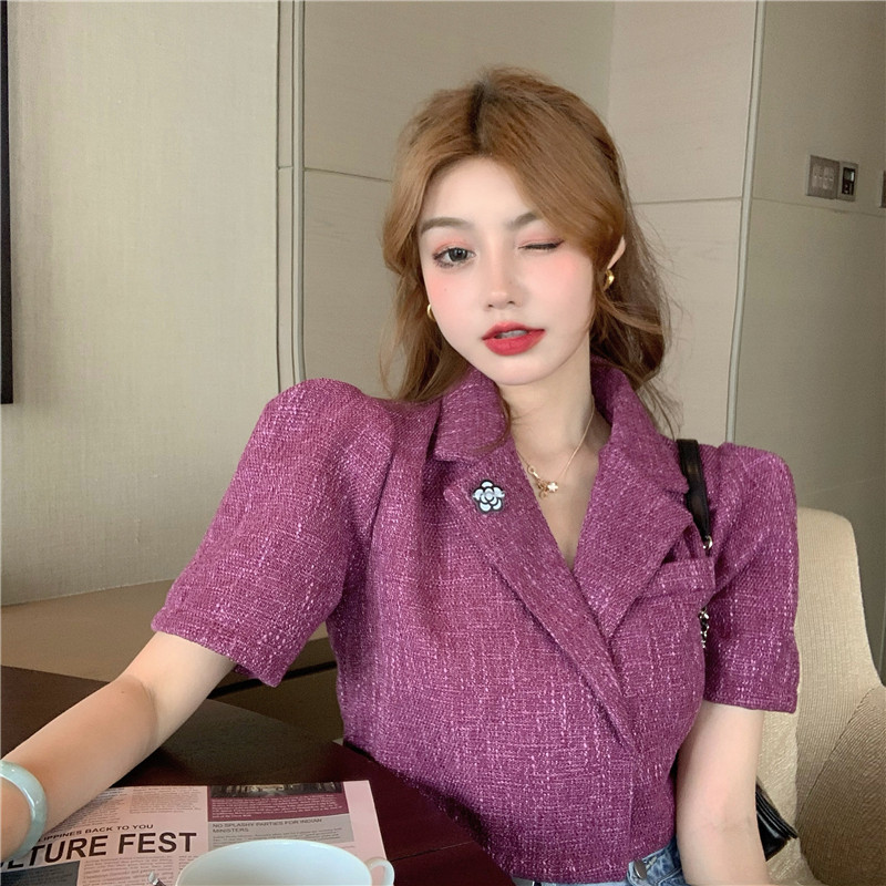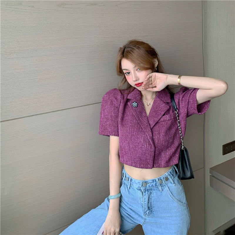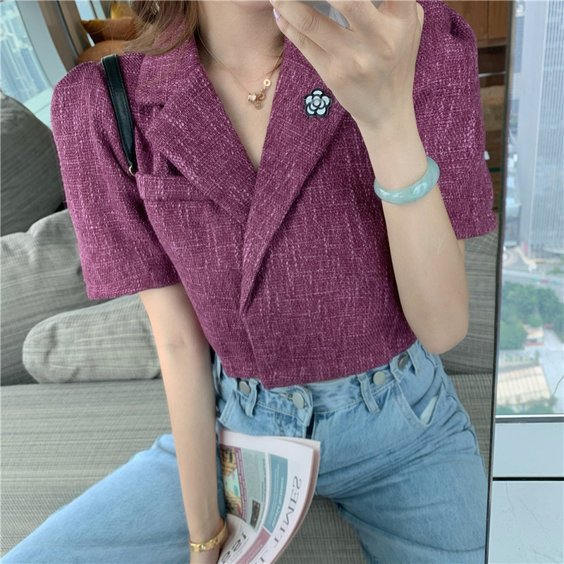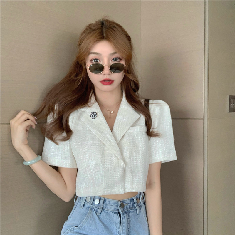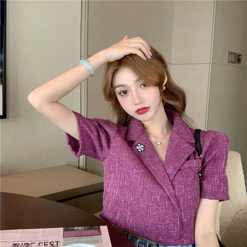 实拍实价 气质小西装女夏季薄款短外套短袖上衣配胸针