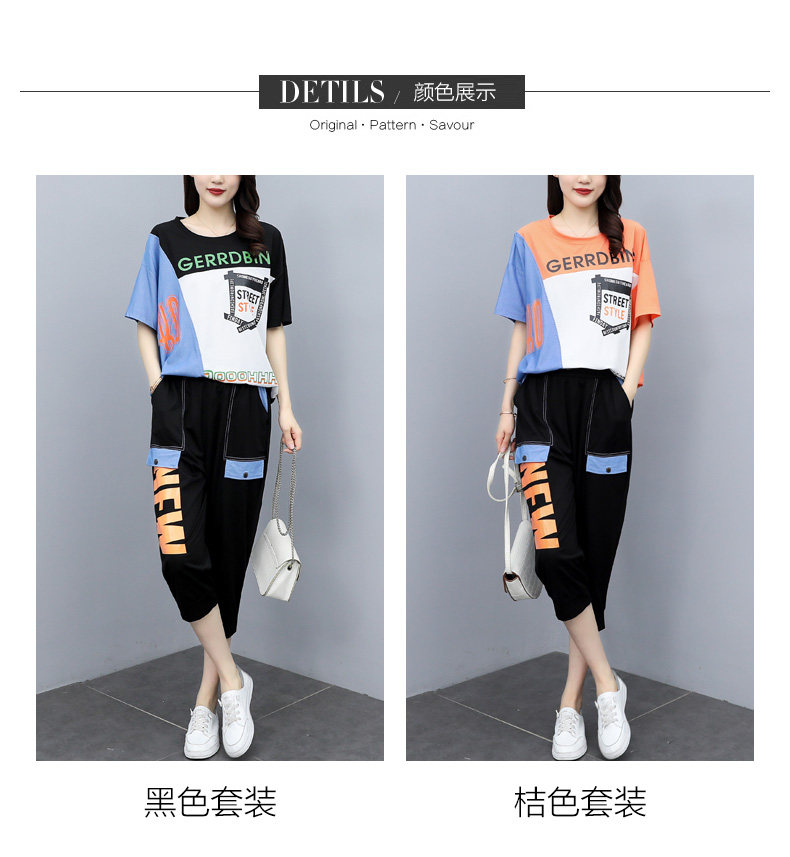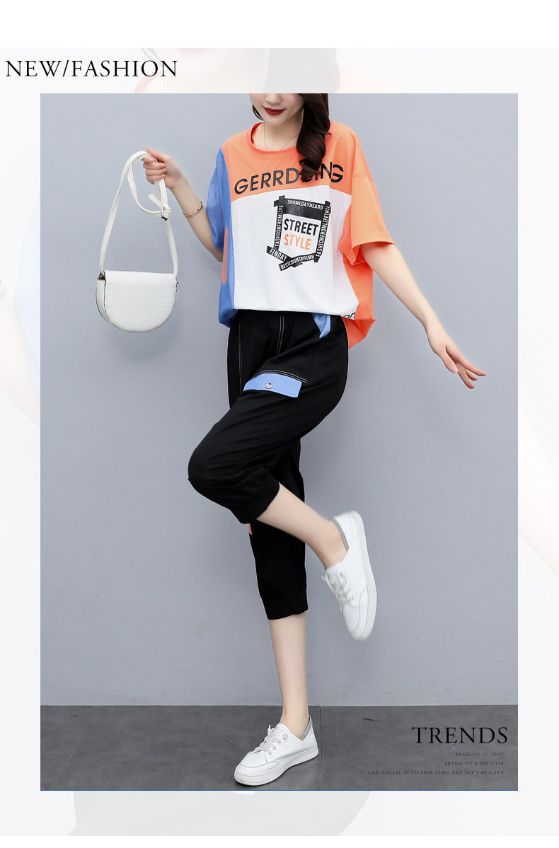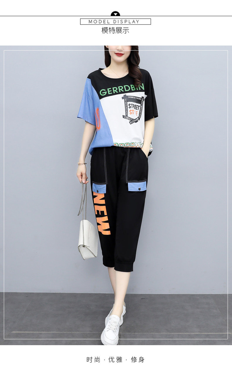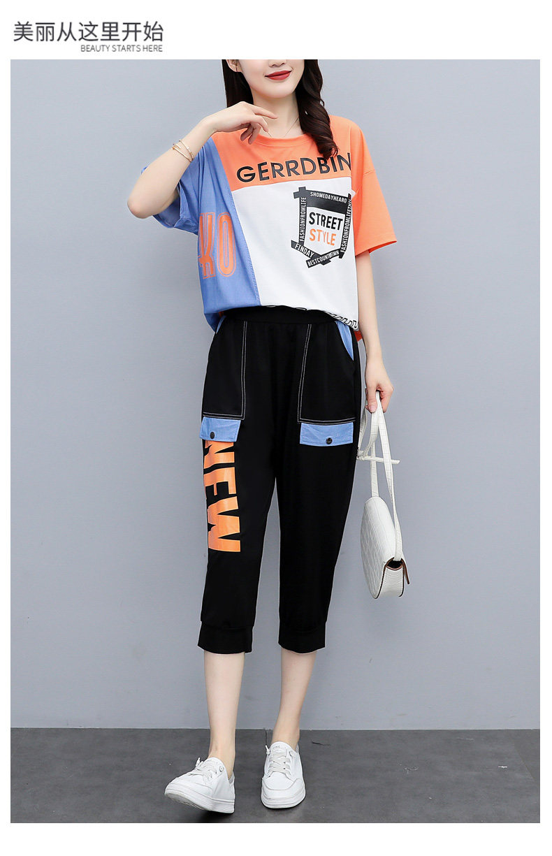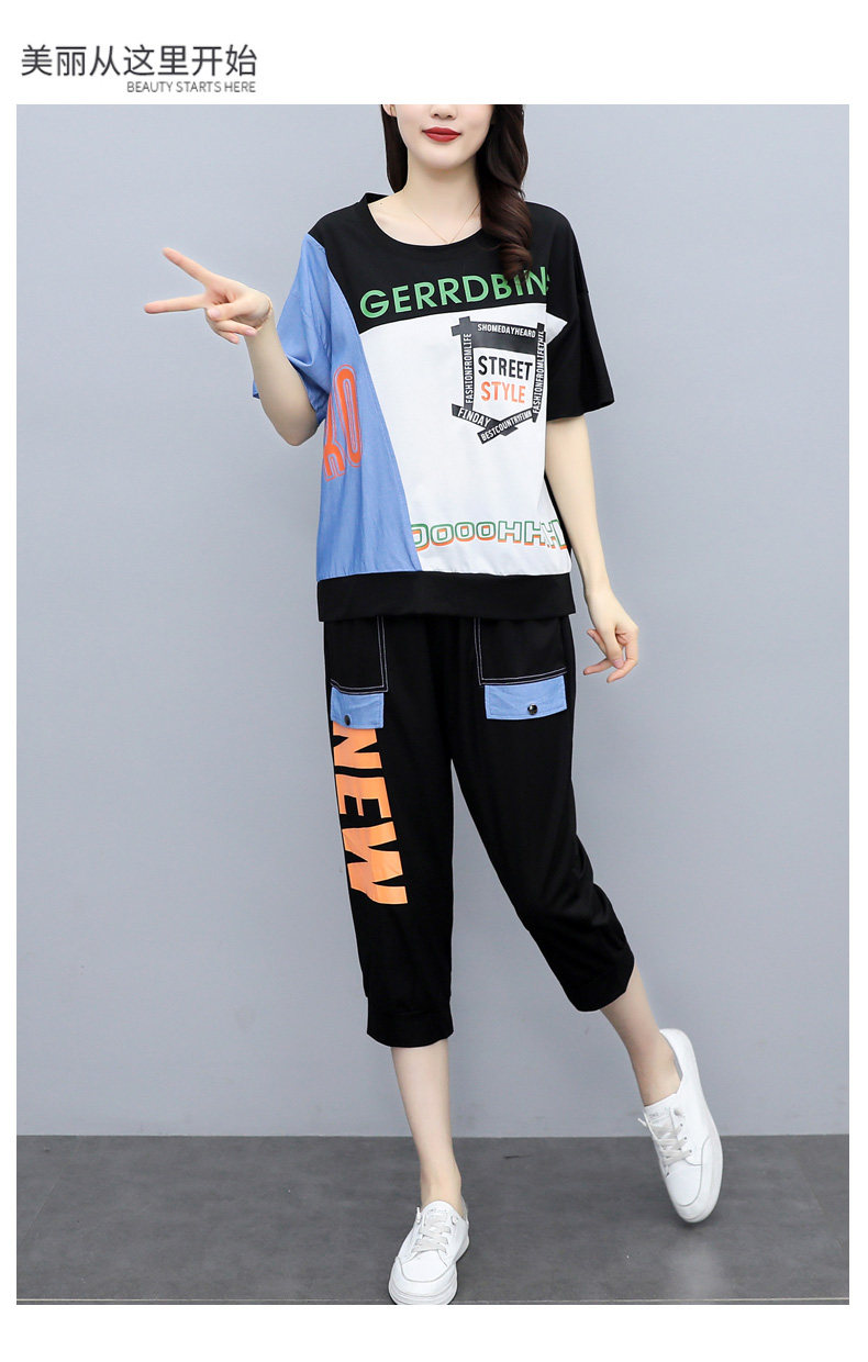 实拍 2021夏季新款大码女装休闲两件套短袖七分裤套装