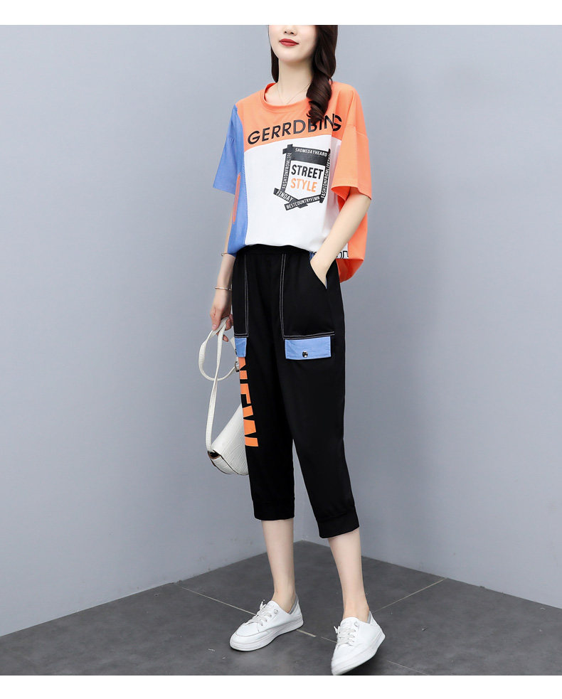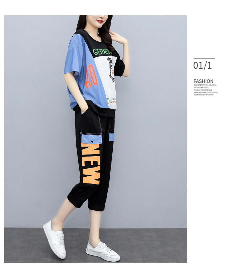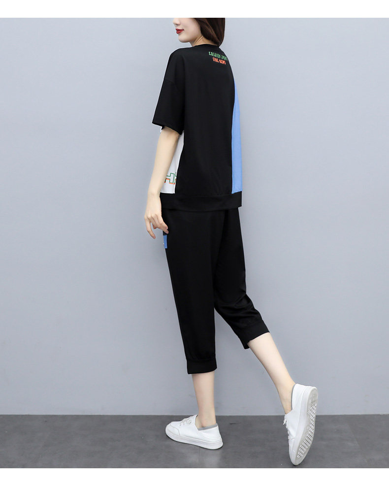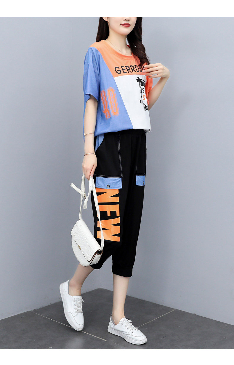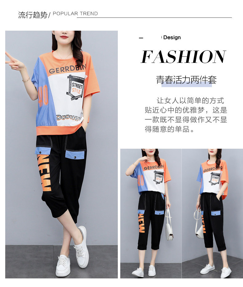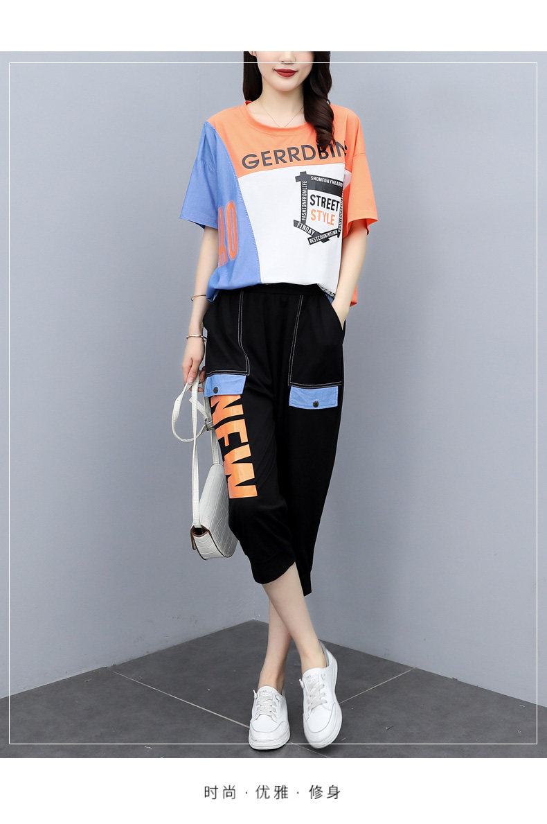 实拍 2021夏季新款大码女装休闲两件套短袖七分裤套装