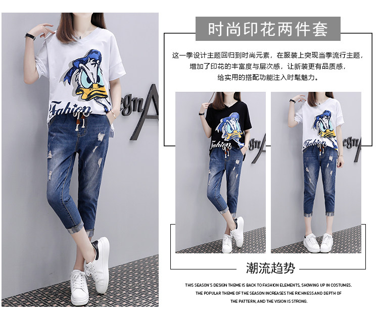 实拍2020夏装大码女胖mm新款显瘦减龄夏宽松时髦港风bf两件套套装