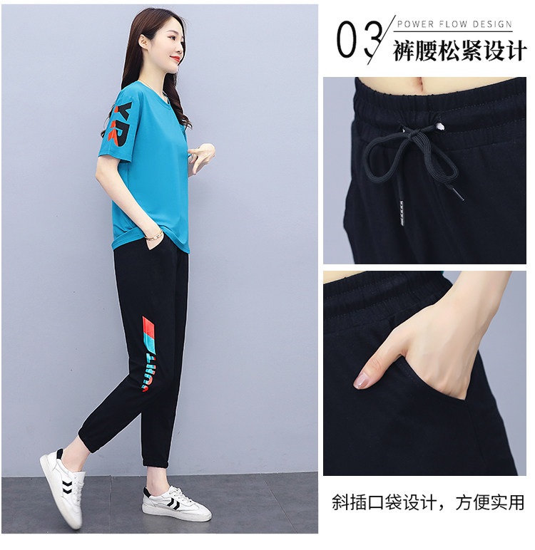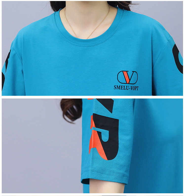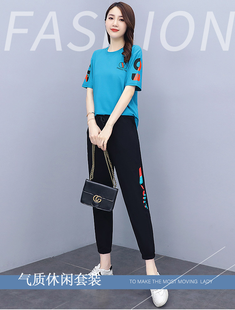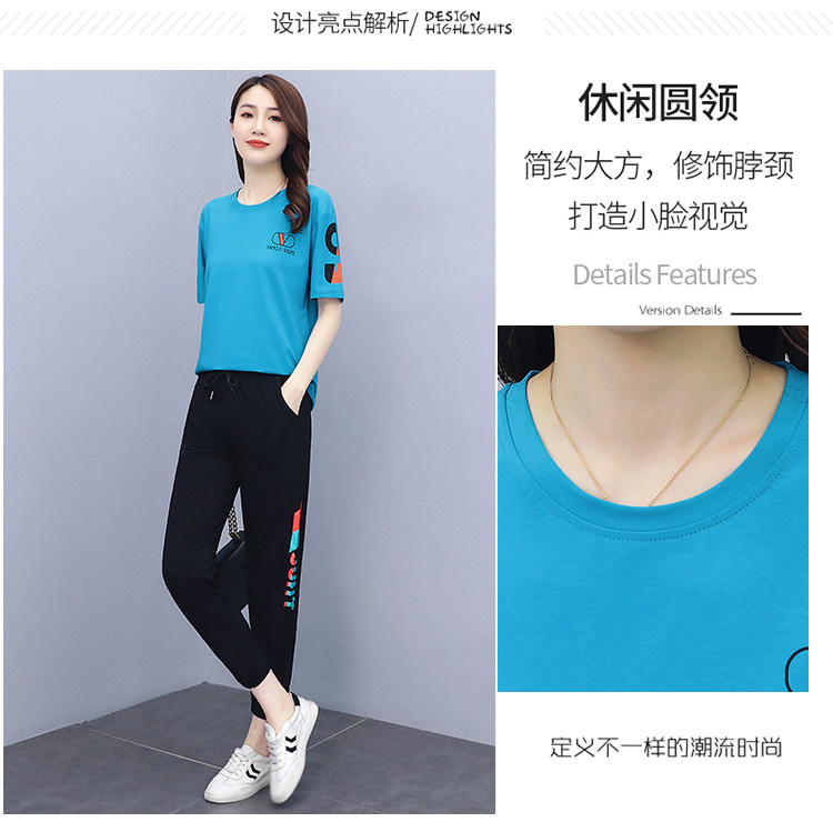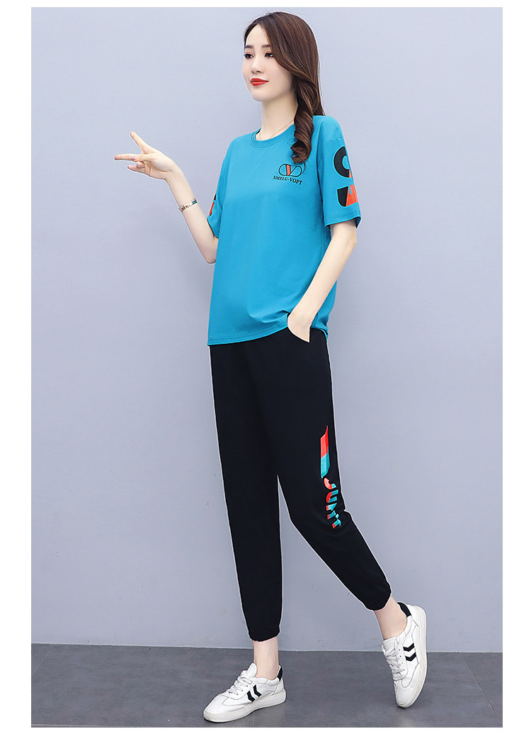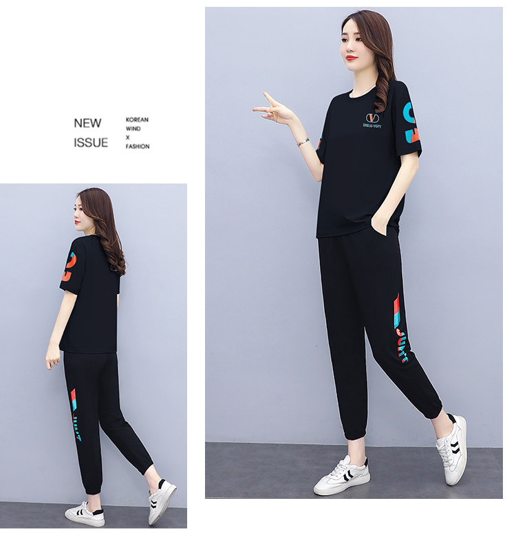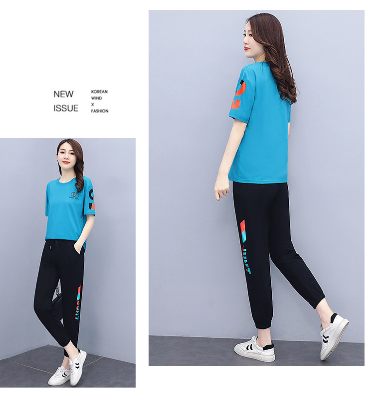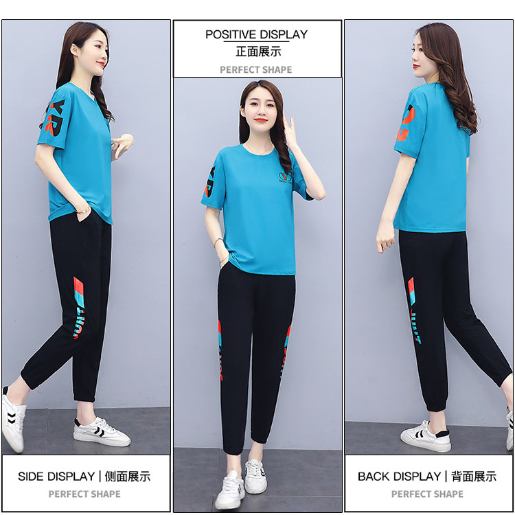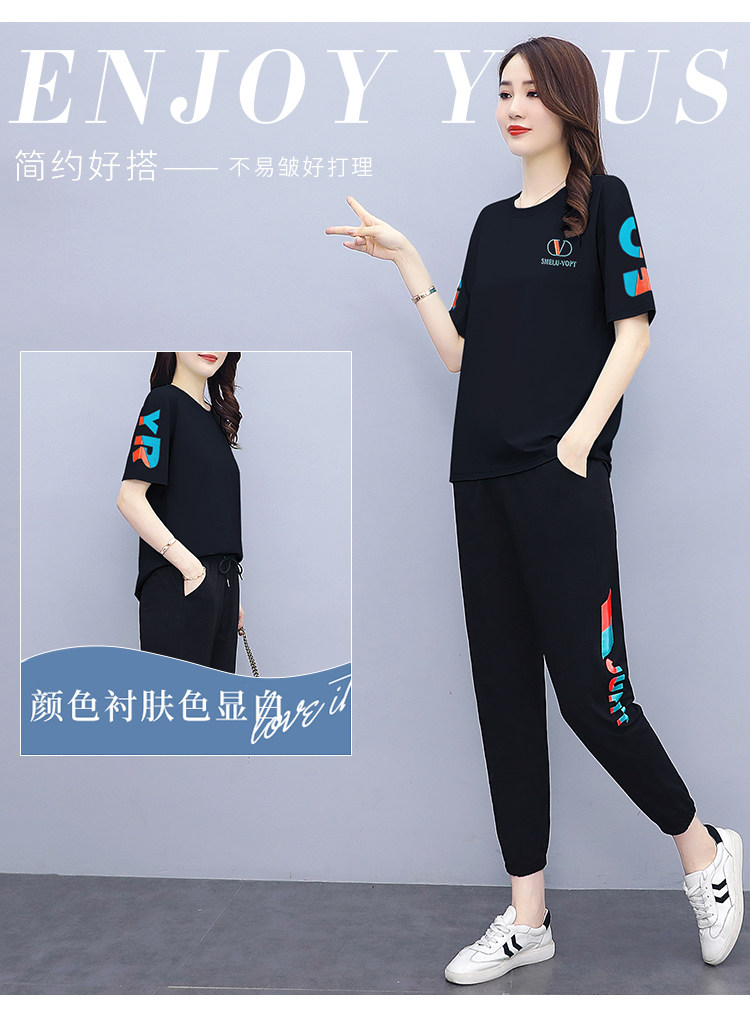 大码运动服女夏季薄款2021网红潮时尚休闲减龄跑步短袖两件套