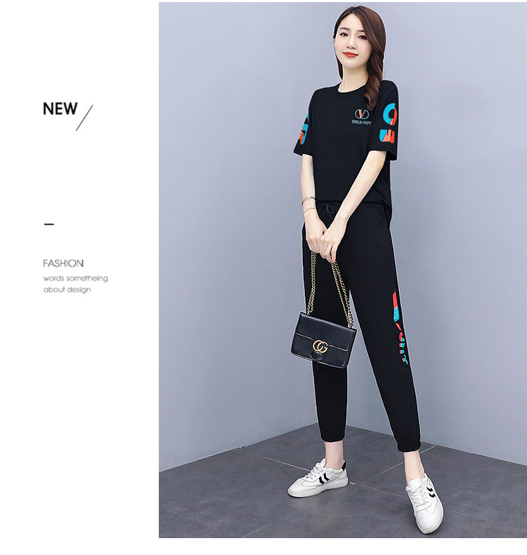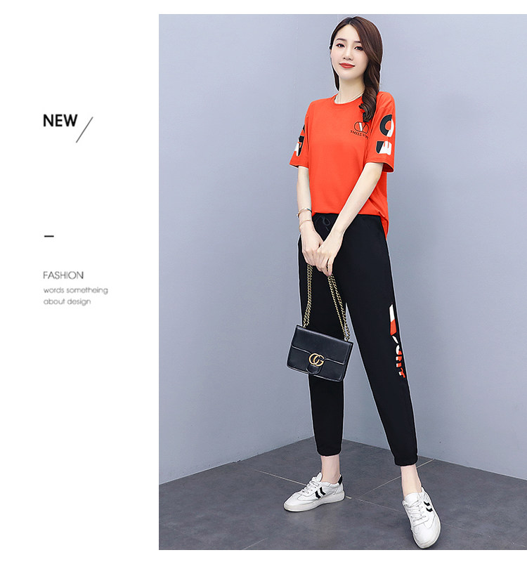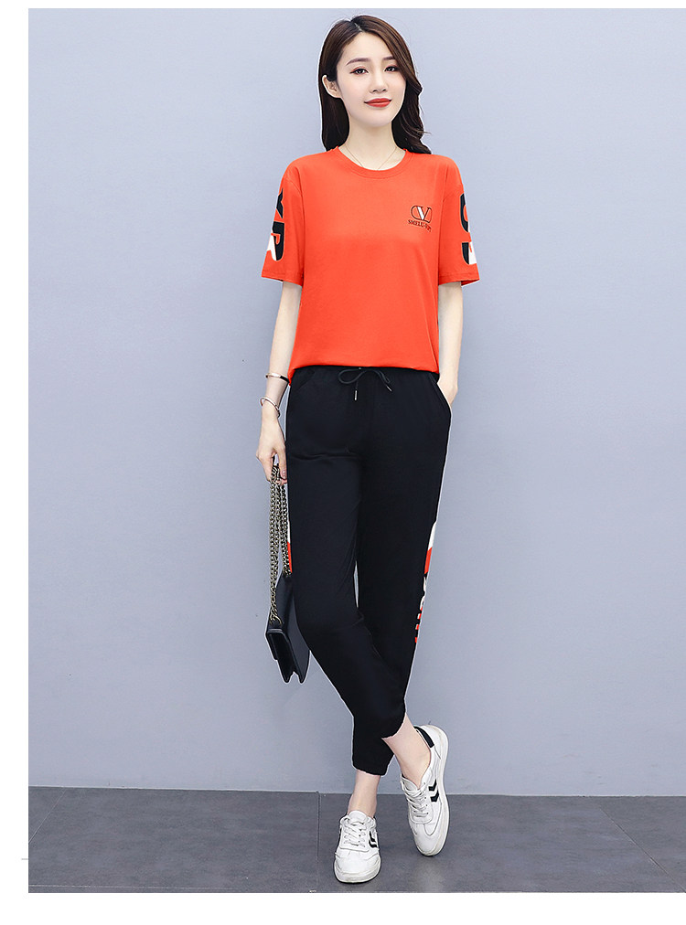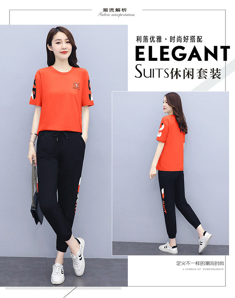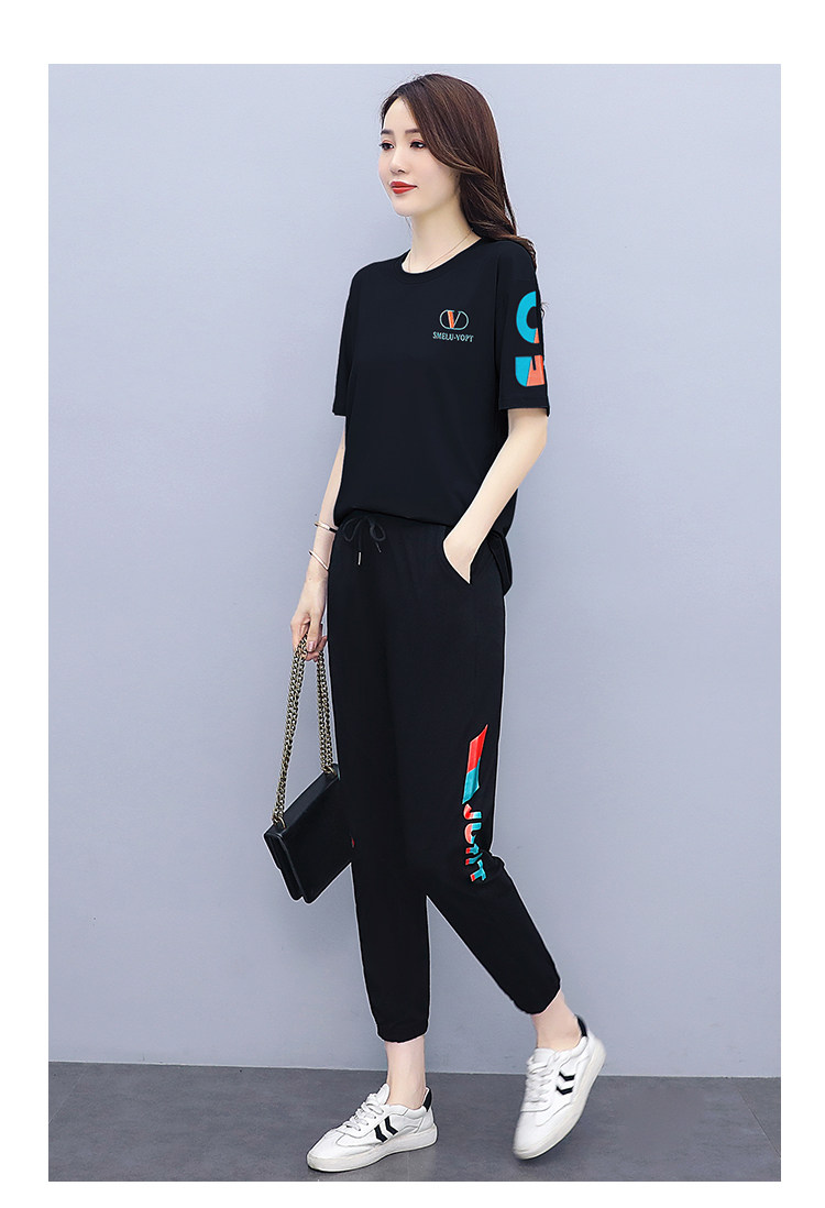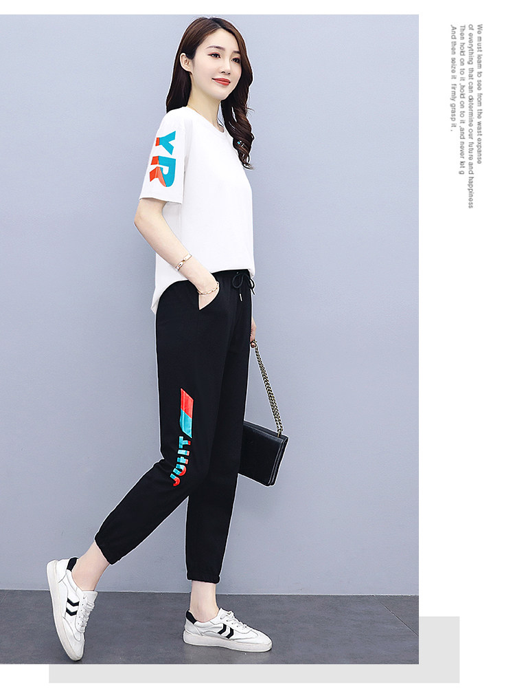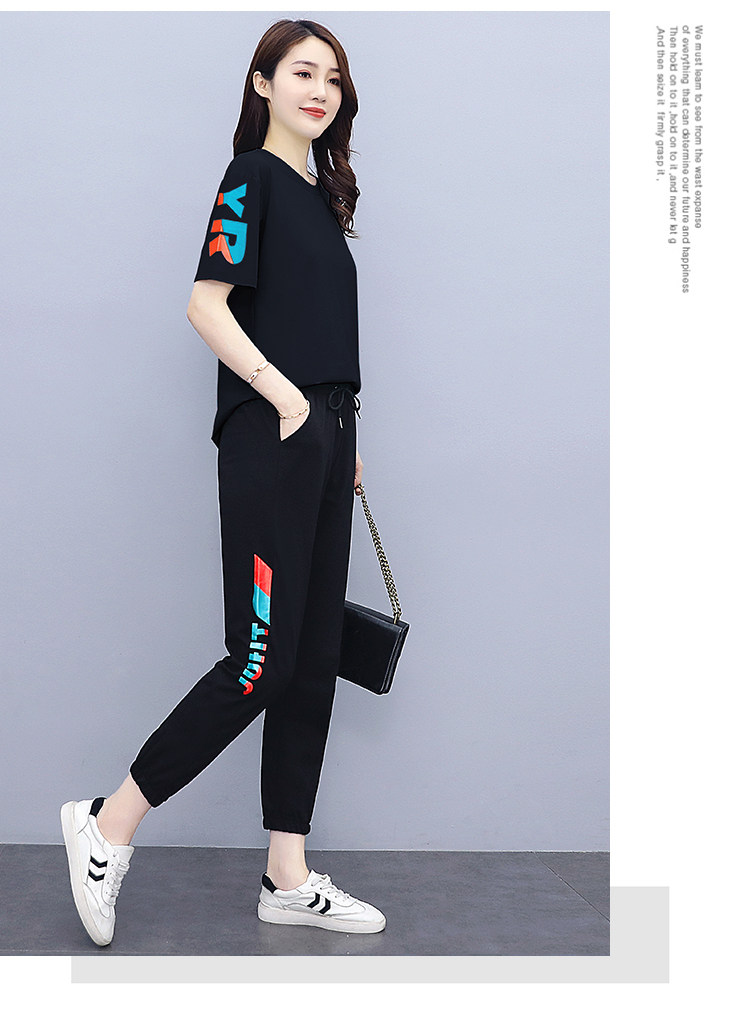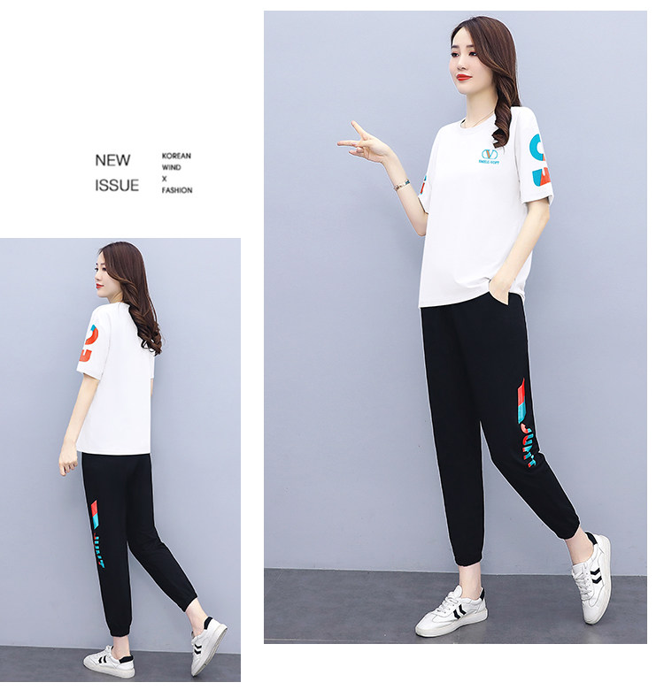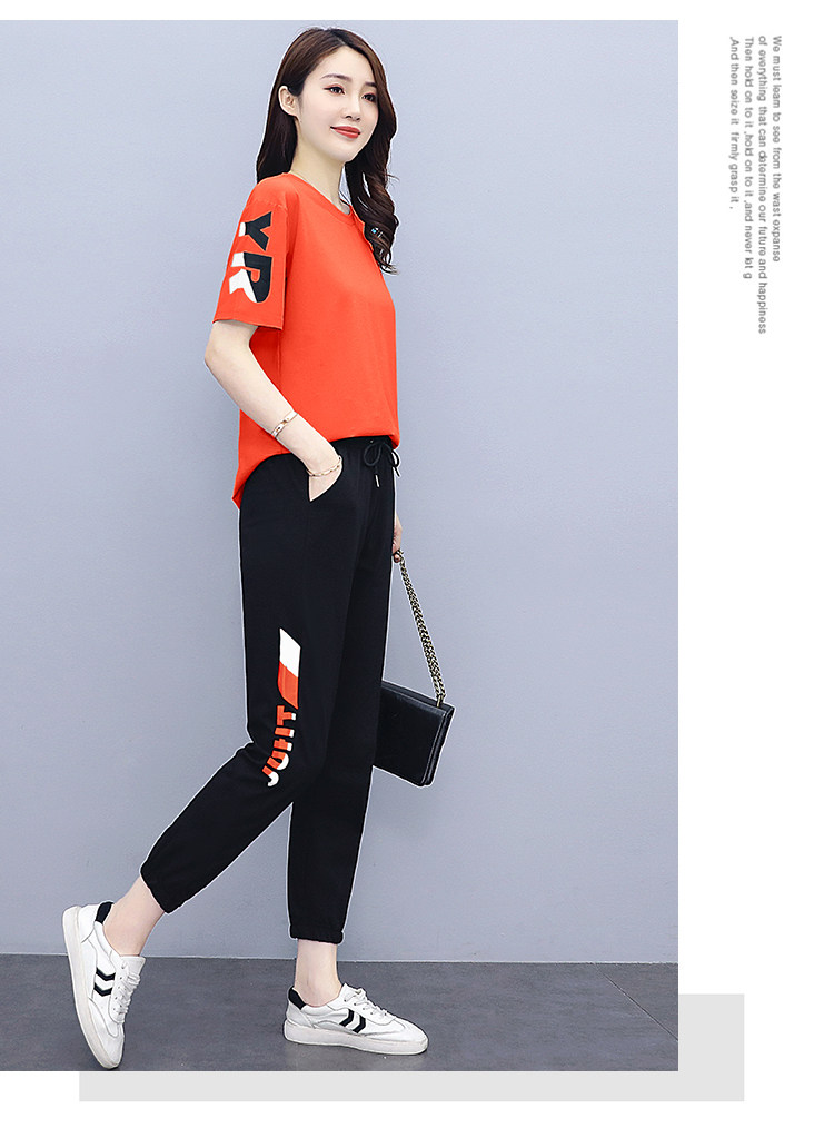 大码运动服女夏季薄款2021网红潮时尚休闲减龄跑步短袖两件套