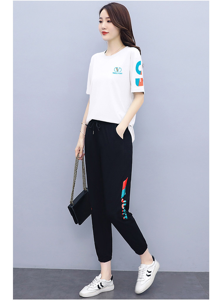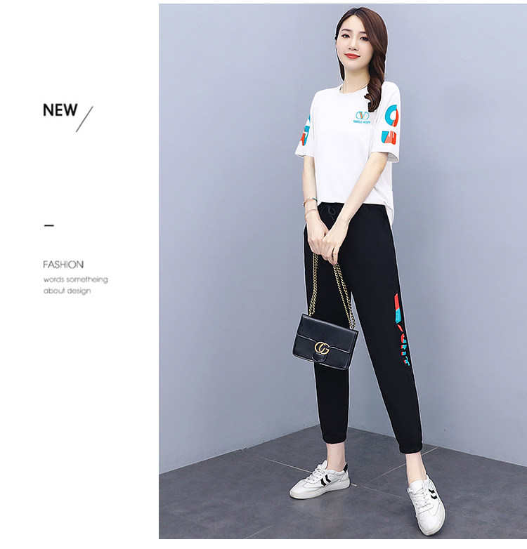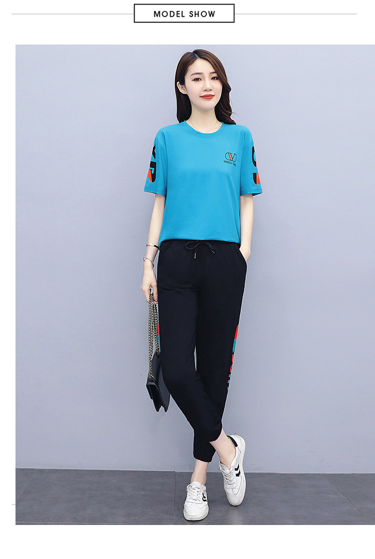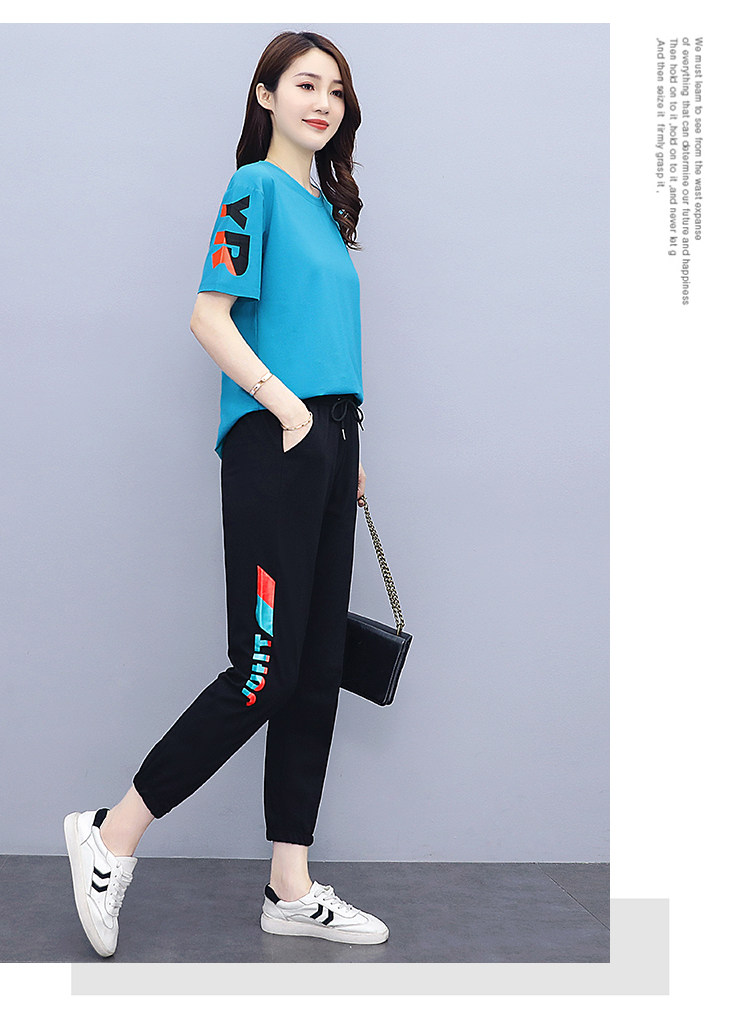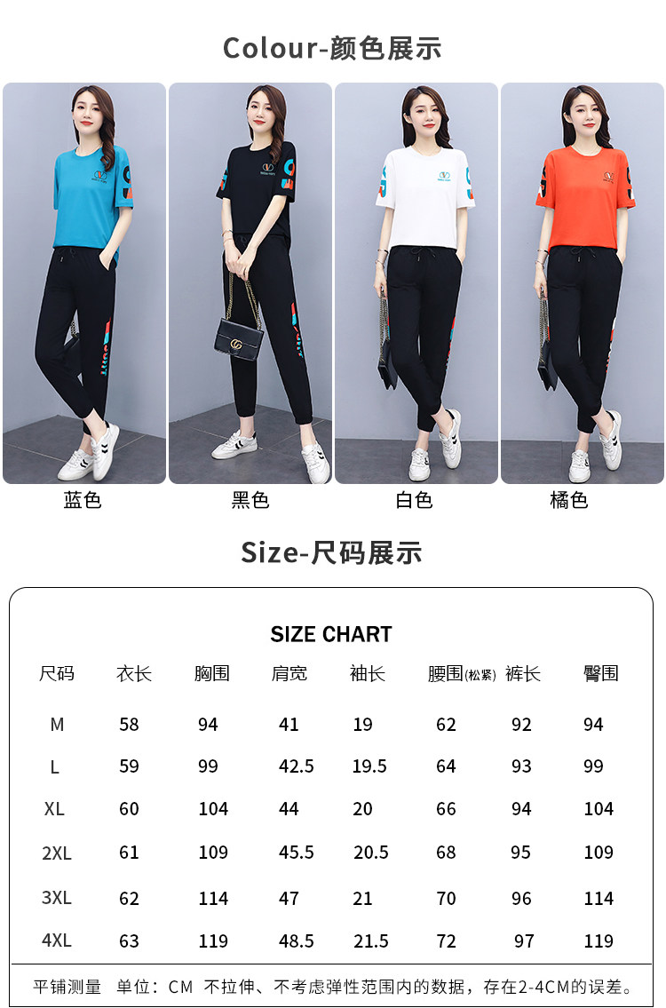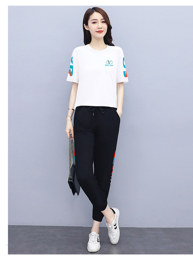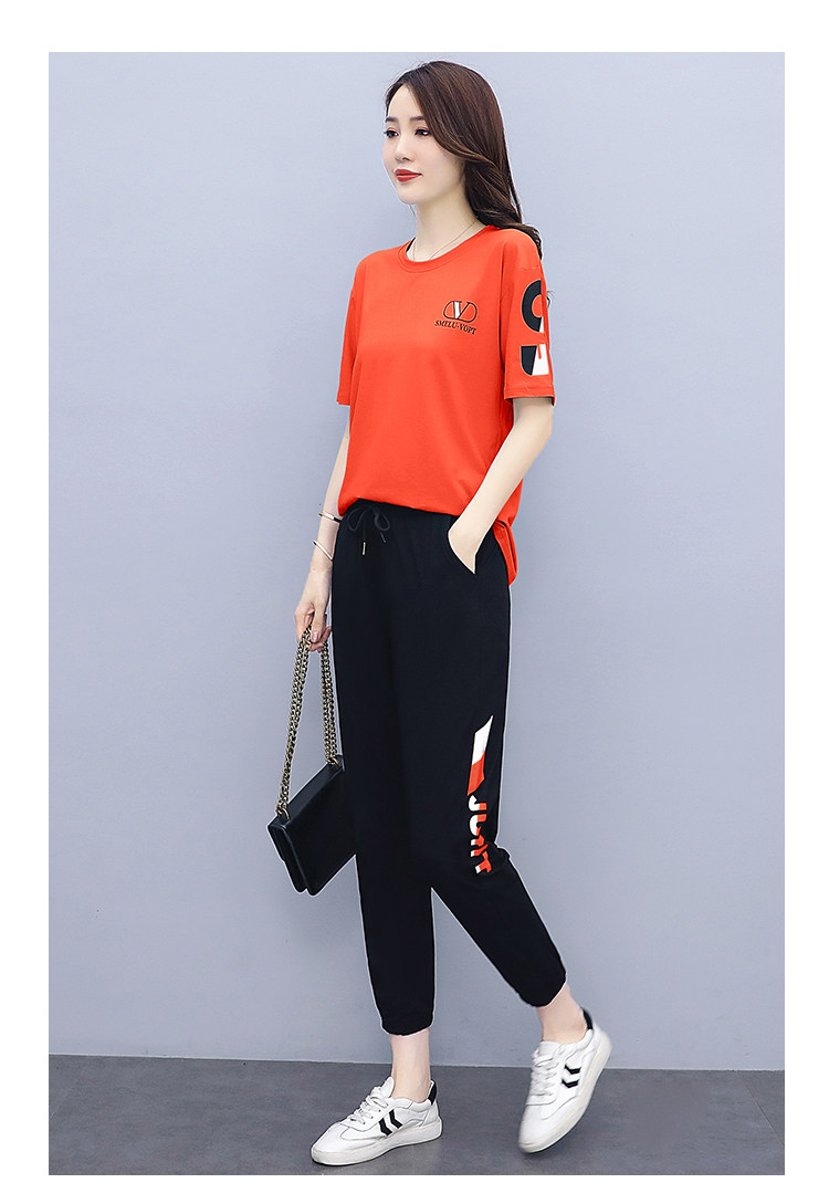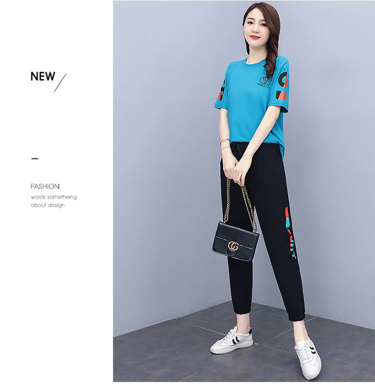 大码运动服女夏季薄款2021网红潮时尚休闲减龄跑步短袖两件套