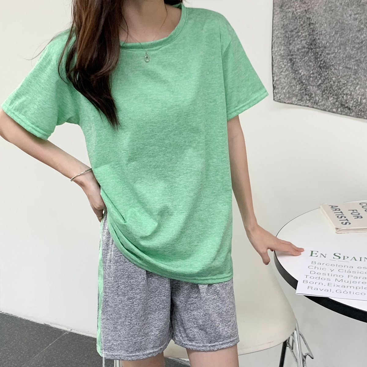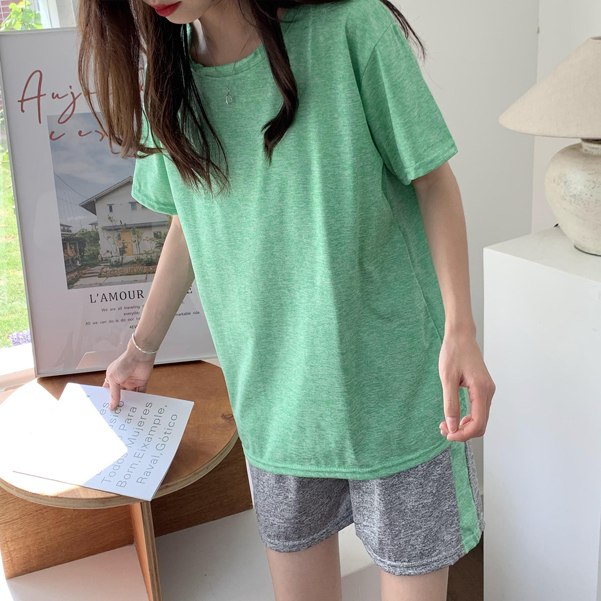 尺寸/均码衣长60 胸围48+弹力 裤长43 松紧腰适合75-140斤左右穿速干全弹面料 手感顺滑又柔软 很舒服的非常舒服透气舒适速干面料 透气 速干 清爽 吸湿排汗 不粘身~更时尚宽松有致的版型不挑身材,运动不被束缚,整体彰显青春活力.